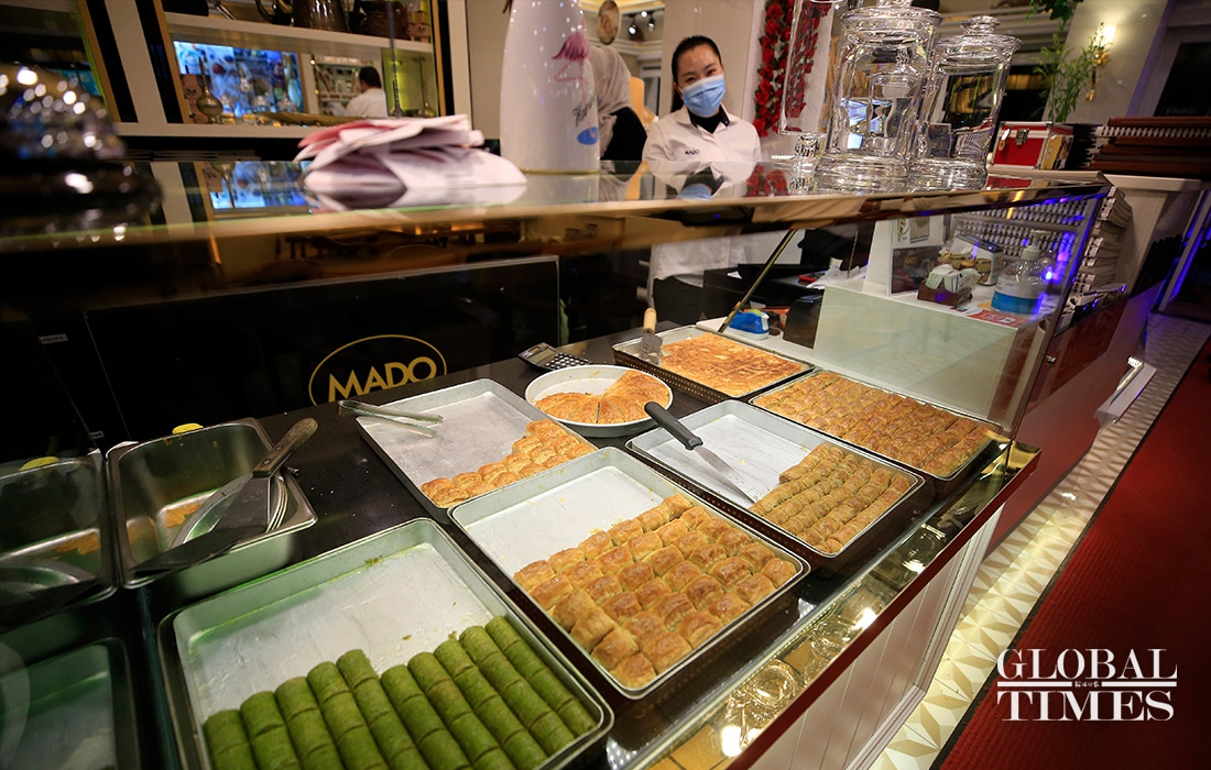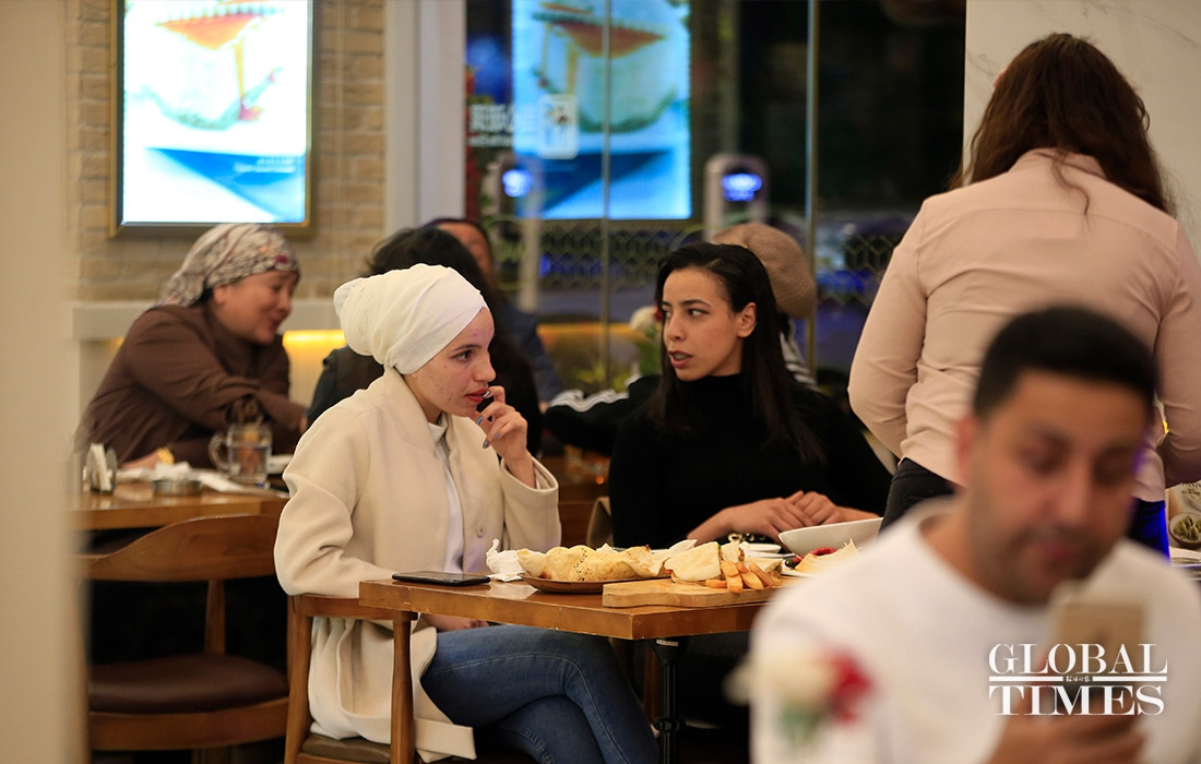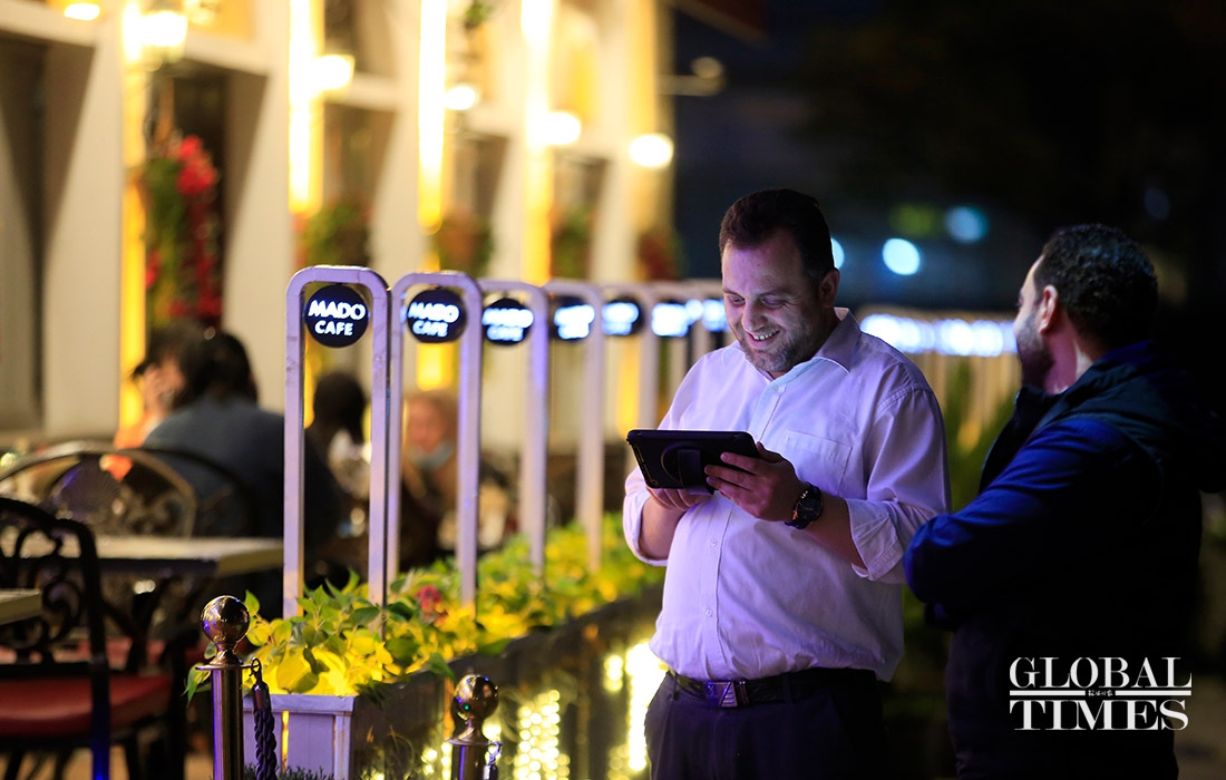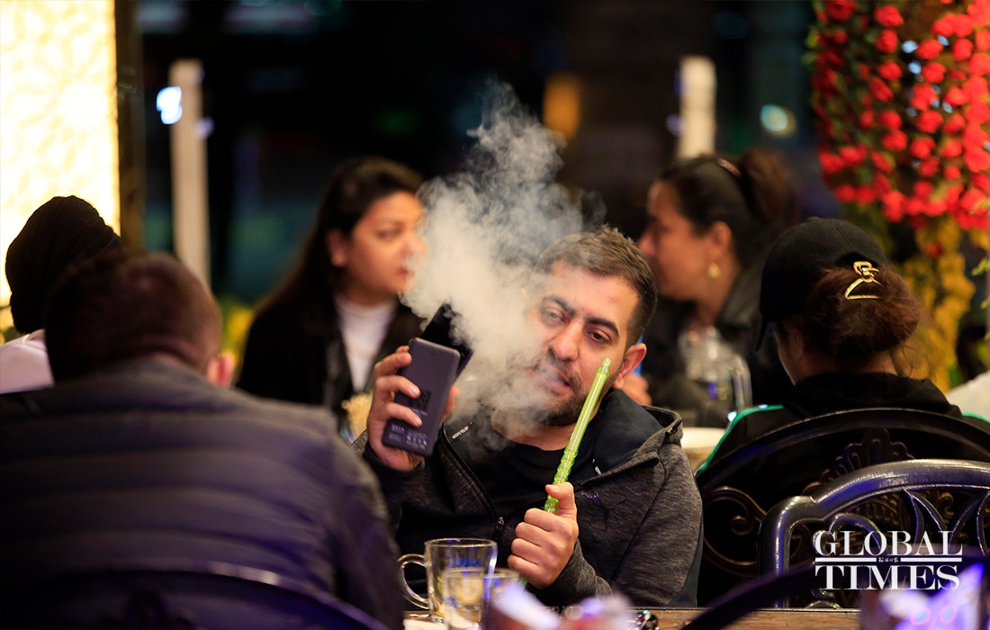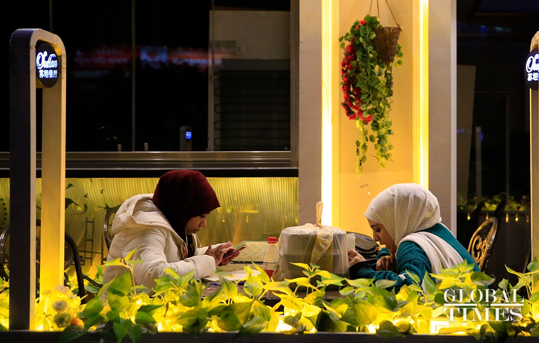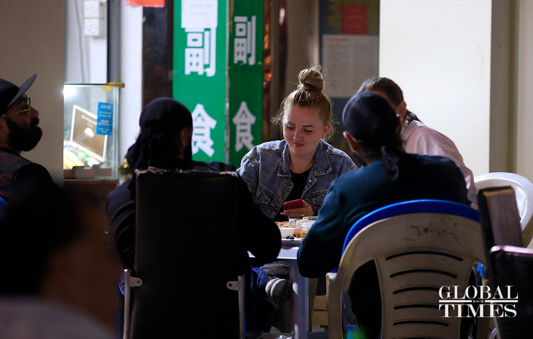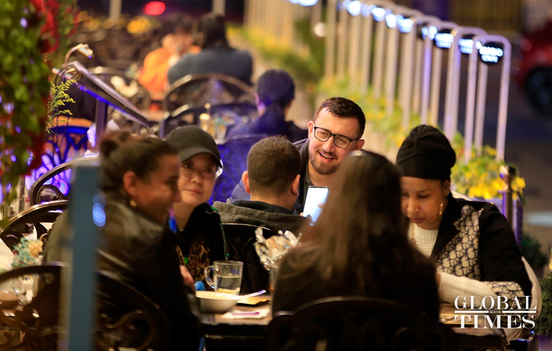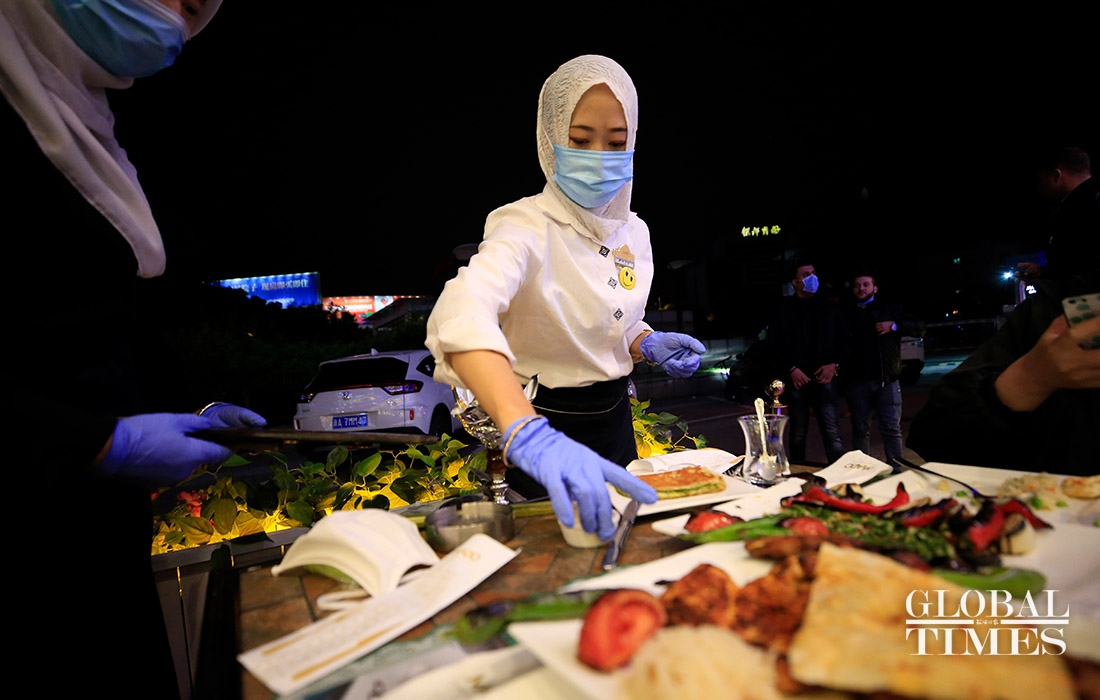 Yiwu's Santing Road night market, an exotic spot and gathering hub of foreigners, is slowly revitalizing as businesses gradually resume and shops reopen in the world's largest trading market for daily consumer goods after the coronavirus outbreak. On Wednesday night, some foreigners were seen relishing delicacies and smoking 'hookah' (waterpipes) at the exotic restaurants in the night market.(Photos: Yang Hui/GT)