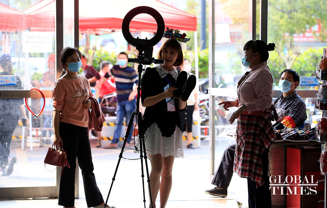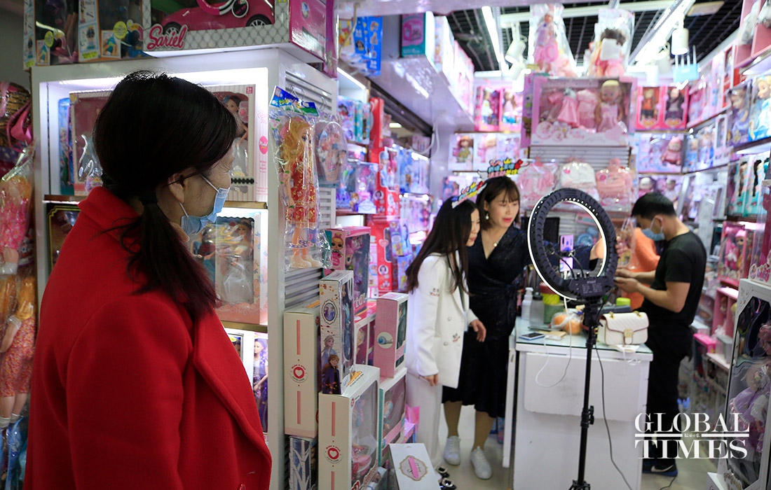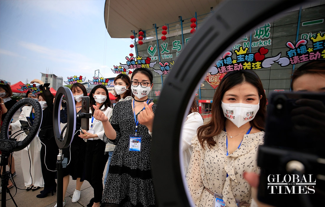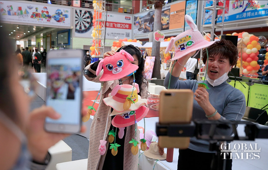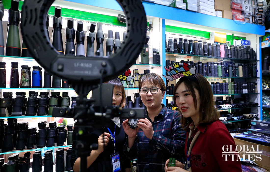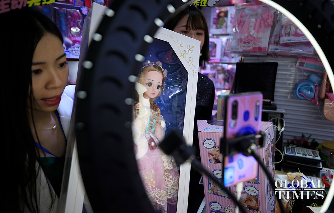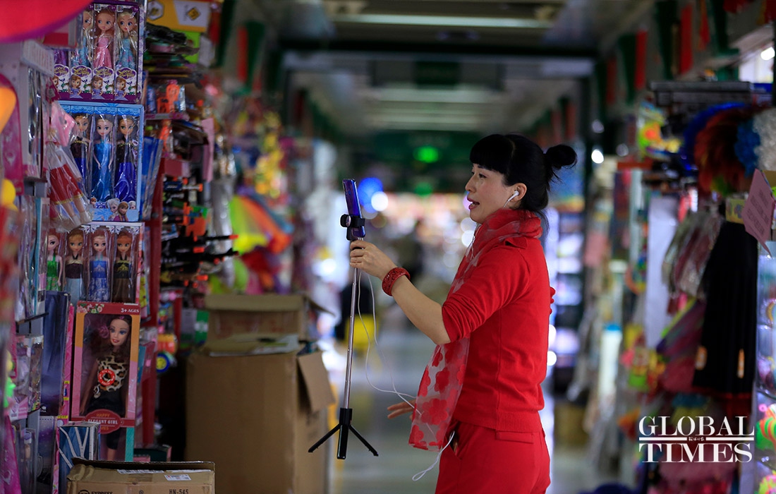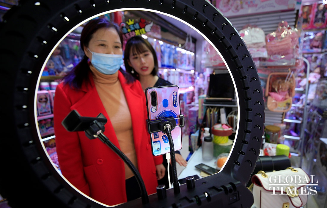 The COVID-19 outbreak has dealt a severe blow to the Yiwu small commodities market. To improve business prospects, many owners are inviting social media influencers to help sell products through online live streaming. Besides, the merchants believe this will be a learning opportunity for them to acquire the skills of online trade that will help them endure this dampen period. (Photos: Yang Hui/GT)