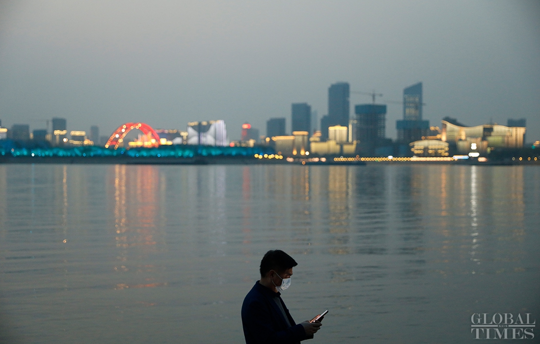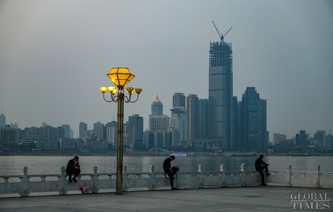 Downtown Wuhan is seen crowded with people on April 7, one day before the city lifts its 76-day lockdown. People are also seen strolling along the banks of the Yangtze River. (Photo: Li Hao/GT) figcaption >