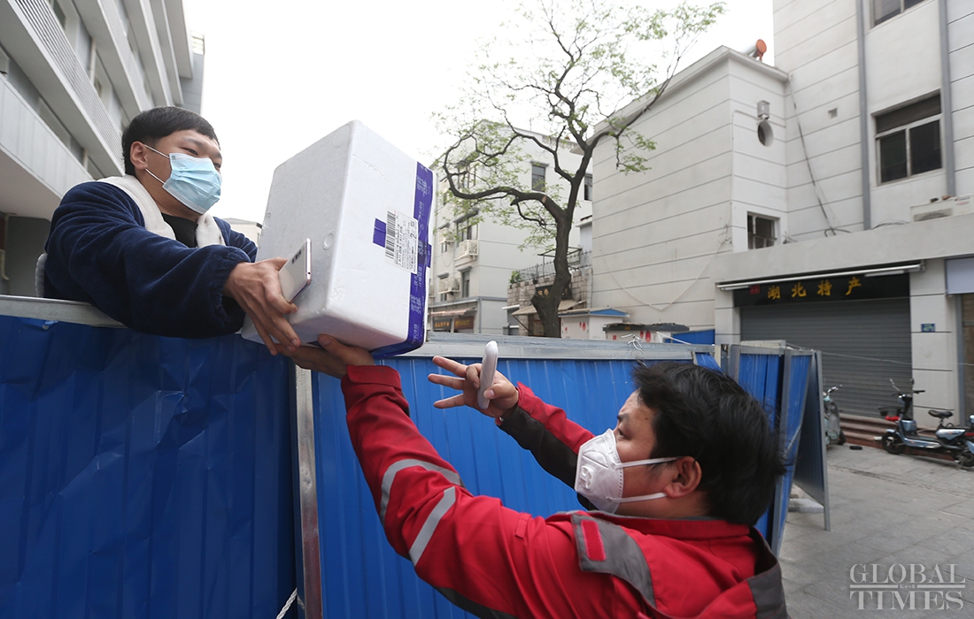 3-day countdown to the lifting of Wuhan's lockdown. Some people go out into the streets while others stay in quarantine. Delivery remains the most commonly used method for Wuhan residents to stay connected with the outside. (Photo: Cui Meng/GT) figcaption >