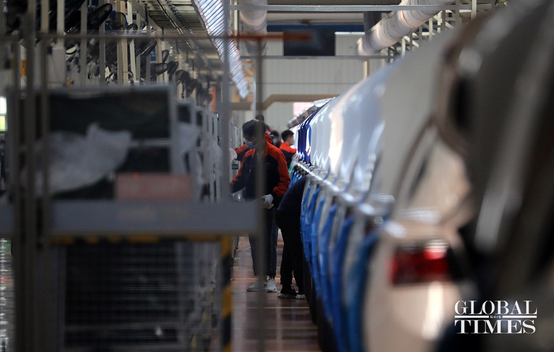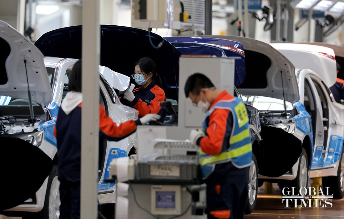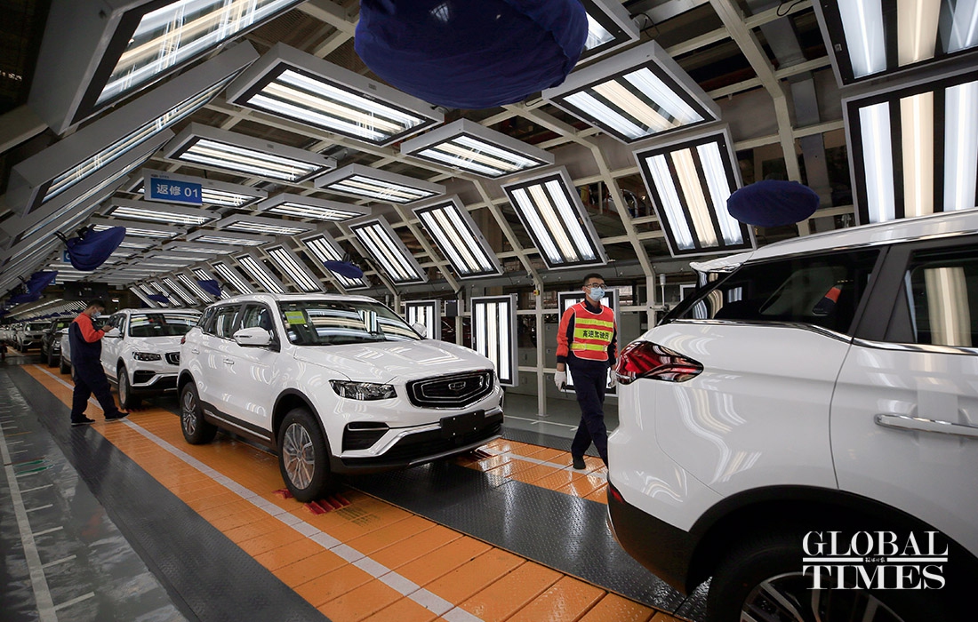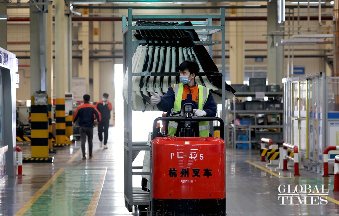 Workers are busy with their tasks at the #Geely Chunxiao Manufacturing Plant in Ningbo of East China’s Zhejiang Province. The plant resumed operations in mid-February, with the resumption rate currently at 90 percent. This has driven the production resumption of 156 suppliers along the upstream and downstream industrial chain in Ningbo.(Photos: Yang Hui/GT)