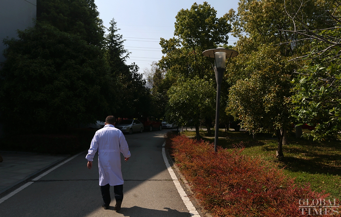 Although Zhang has difficulties walking due to ALS, he has devoted himself to the hospital’s patients in Wuhan. Photo: Cui Meng/GT figcaption >