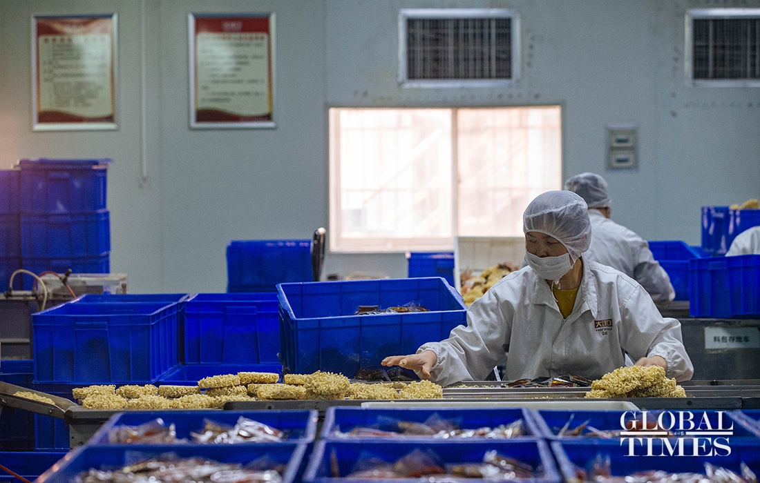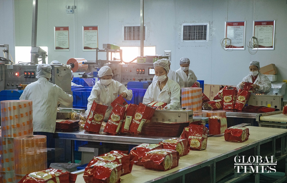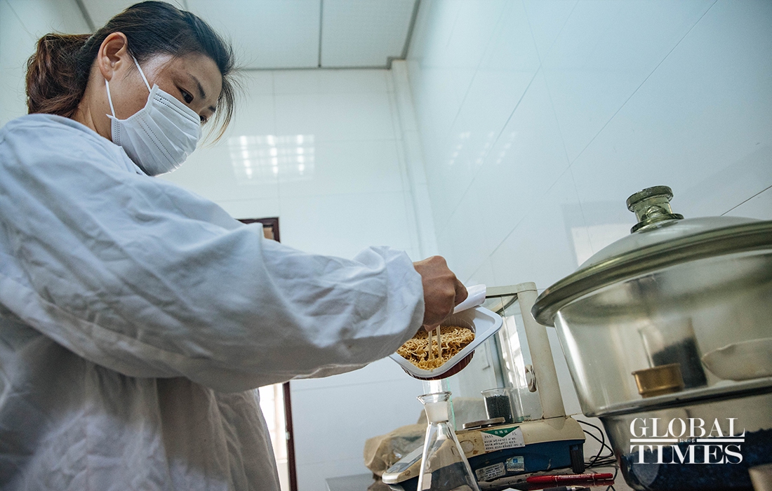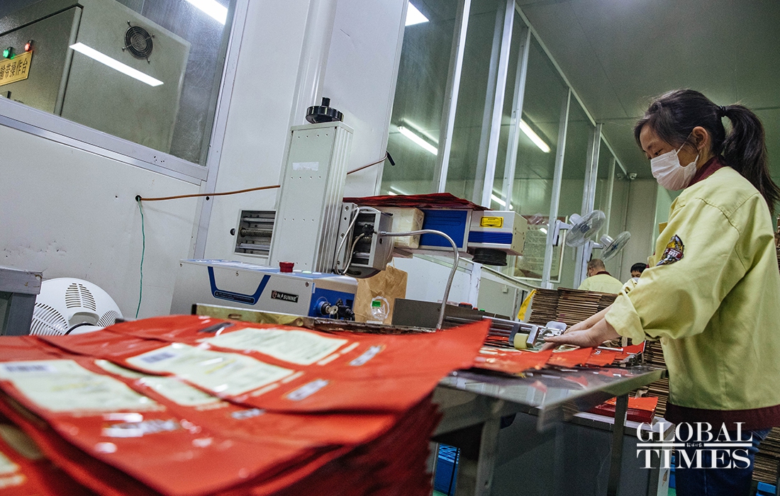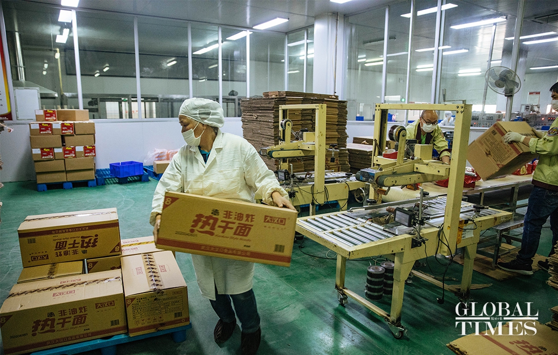 Wuhan Dahankou food, a local hot dry noodle delicacy, has seen orders skyrocketing after the city lifted its coronavirus lockdown. Orders from North American and European markets grew by two-three times. After using the live streaming platform to promote the product, orders in the Chinese mainland surged three times from last year's level. According to the food maker, due to growing orders, the inventories have run out and clients need to wait for eight days before replenishments are shipped. To cut communication barriers, the company has built a vending machine for the hot dry noodles, which will be launched soon. (Photos: Li Hao/GT)