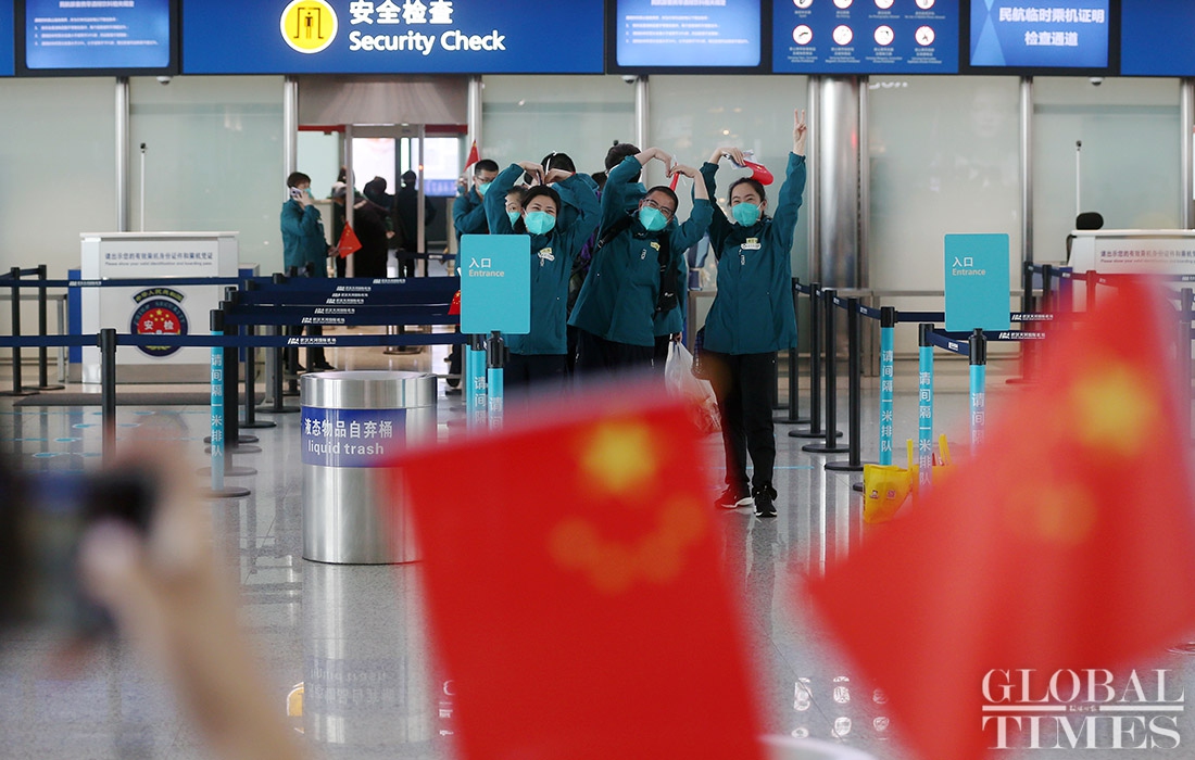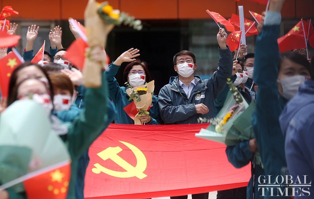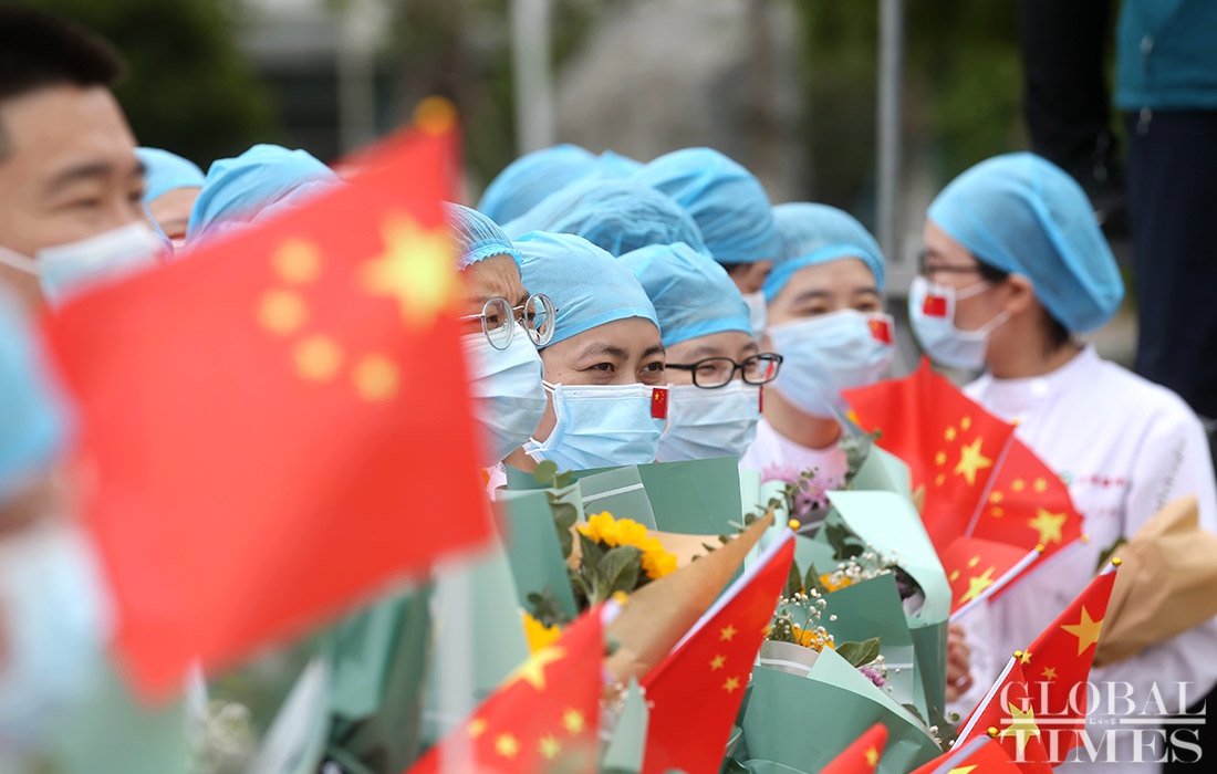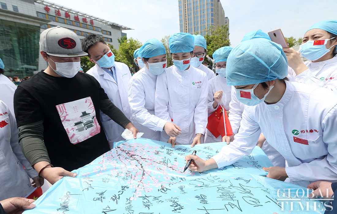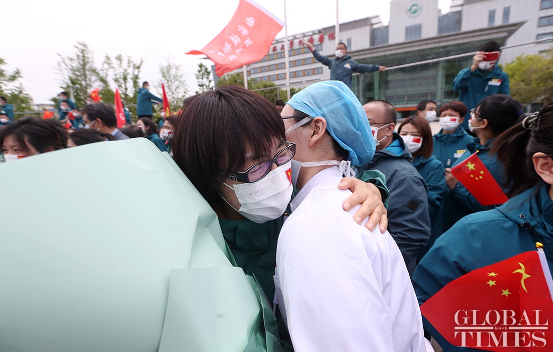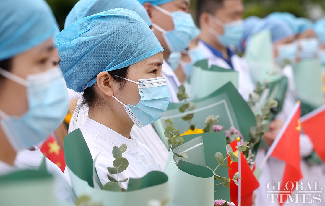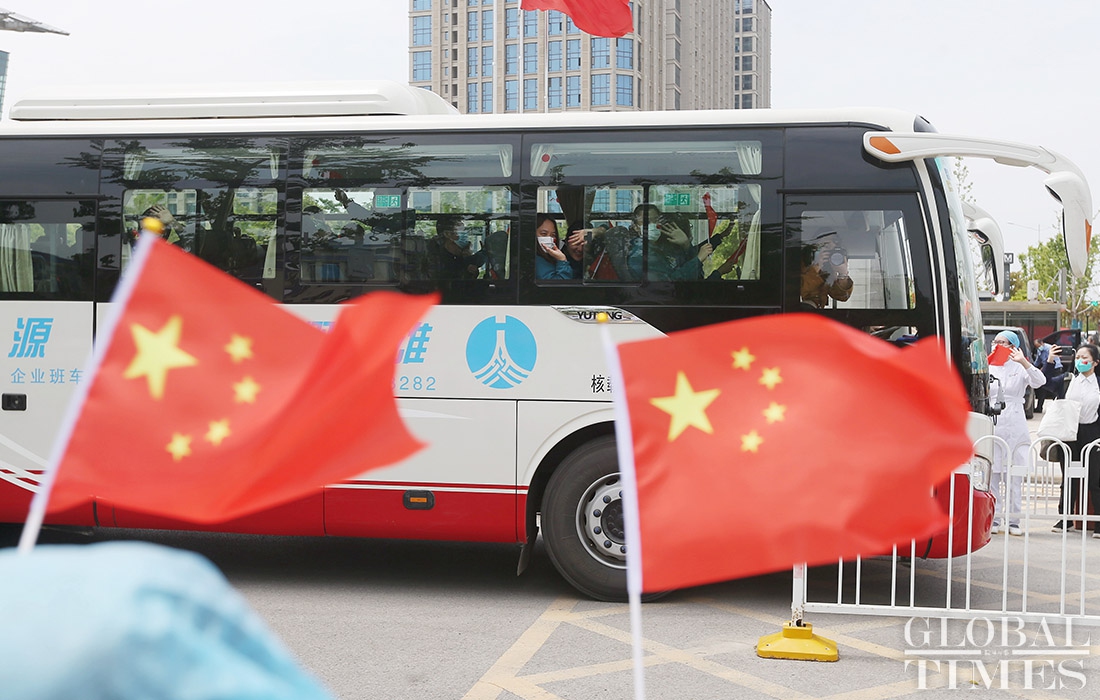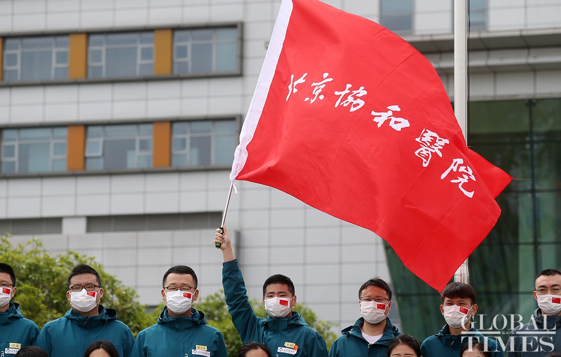 The last remaining medical team to aid Wuhan, a team from the Peking Union Medical College Hospital, left Wuhan on Wednesday as the COVID-19 epidemic visibly subsides in the city.