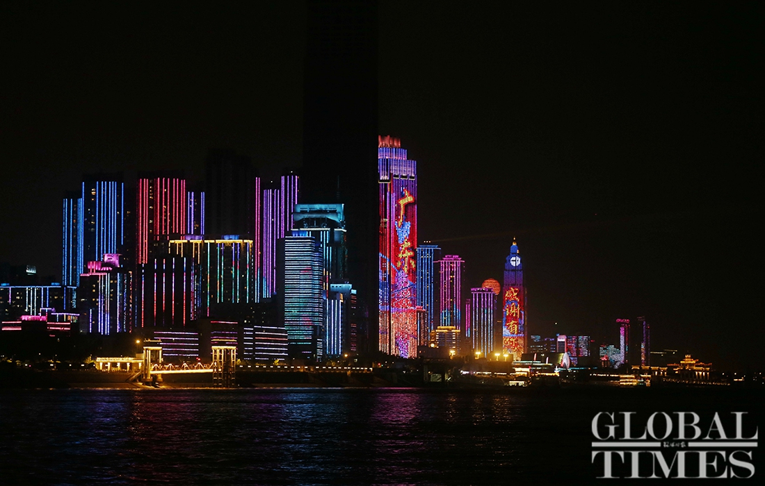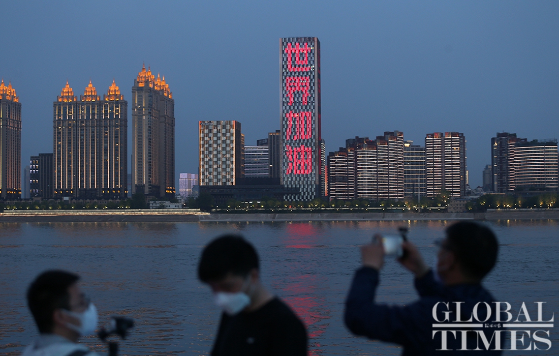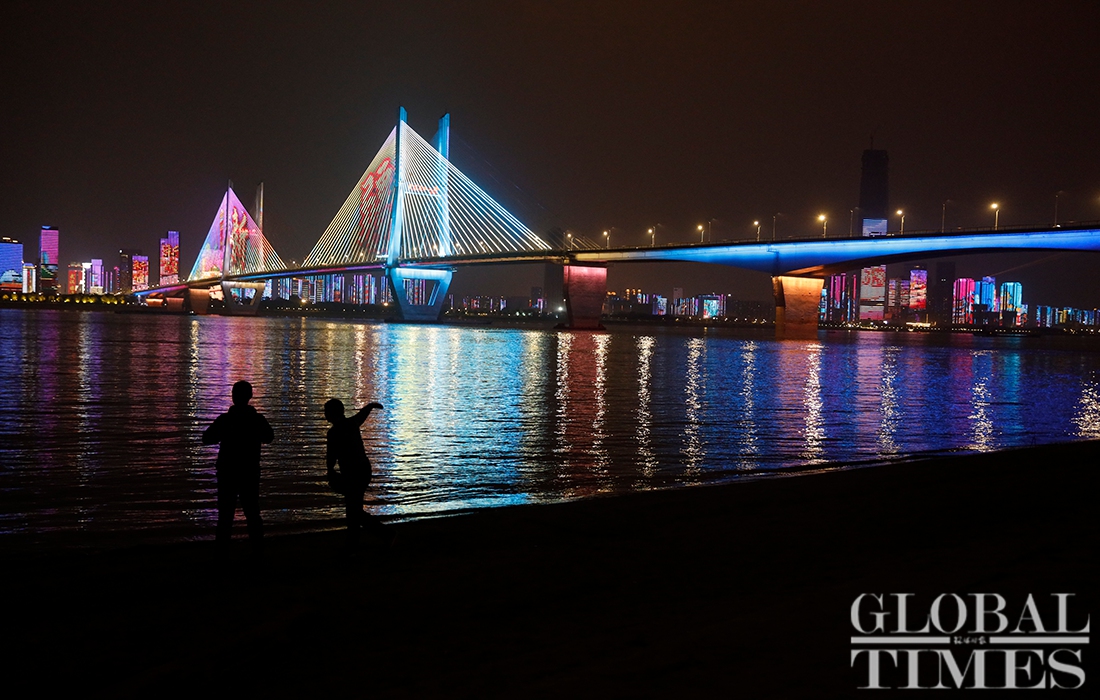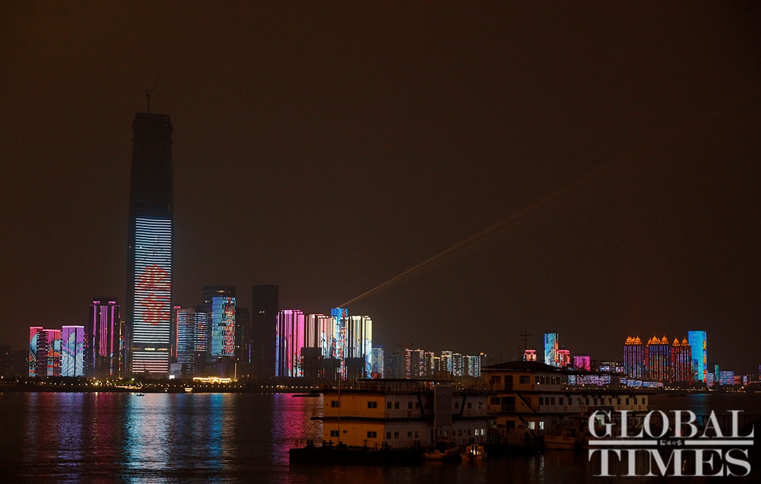 Wuhan gratitude messages to all helping hands in defeating COVID-19 light up along rivers