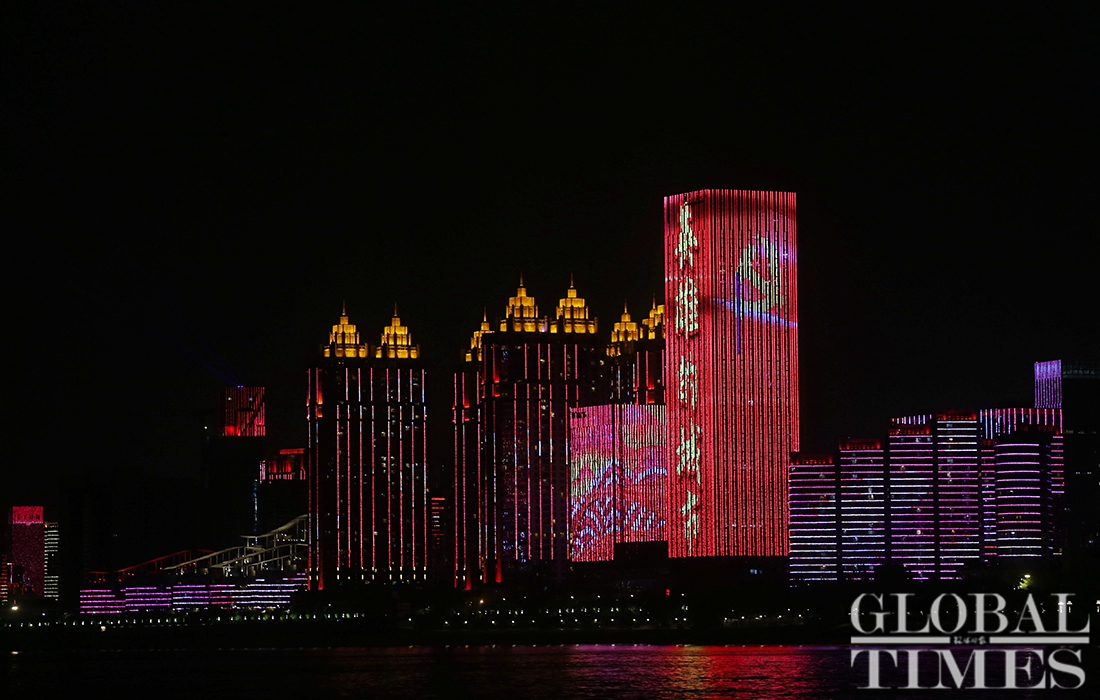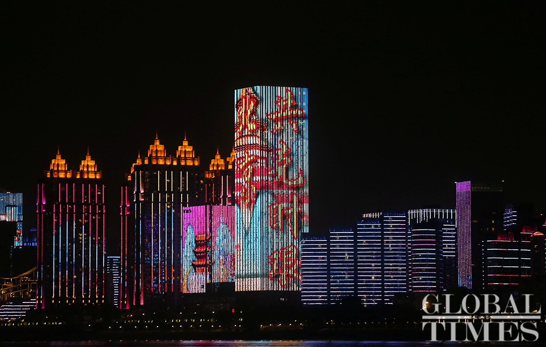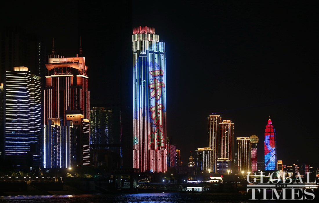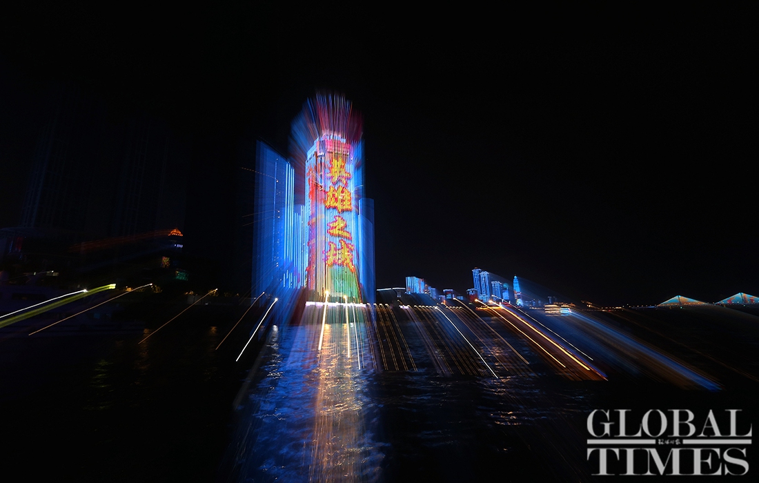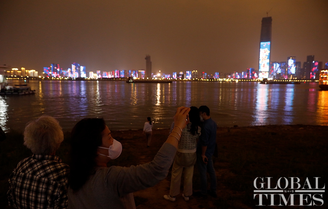 Wuhan gratitude messages to all helping hands in defeating COVID-19 light up along rivers