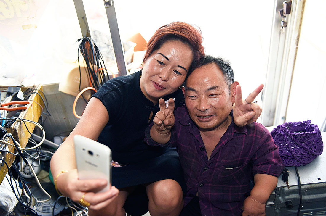 In Rizhao, Shandong Province, one special couple stands out from the rest. 44-year-old wife Chen Guiyun stands 1.7 meters tall, while her husband Lin Yanhua, 50, stands no more than 1 meter tall due to a form of pituitary dysplasia. The couple has been happily married for over a decade, proving that physical disability is no obstacle to a life of happiness. Photos: Chen Weifeng/IC