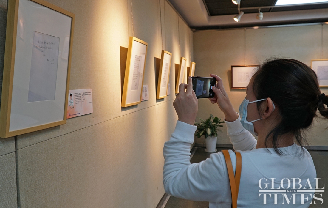 Manuscripts of celebrities, from all walks of life, are on display at the Shanghai Library to commemorate the combat against COVID-19