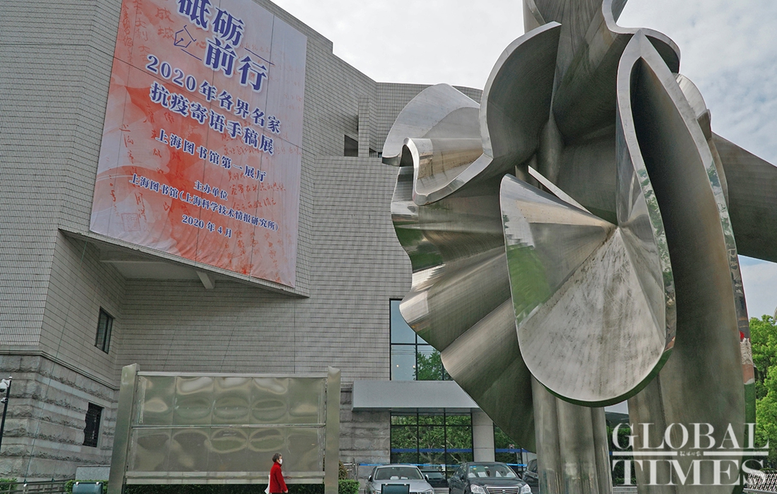 Shanghai Library reopened Thursday after a three-month hiatus. A unique exhibition showcasing 96 manuscripts from eminent scientists, doctors, scholars, writers, translators, calligraphers, and painters along with 30 items, related to COVID-19 battle, donated by frontline medical workers and hospitals, kicked off at the library on Thursday.