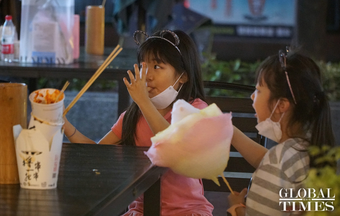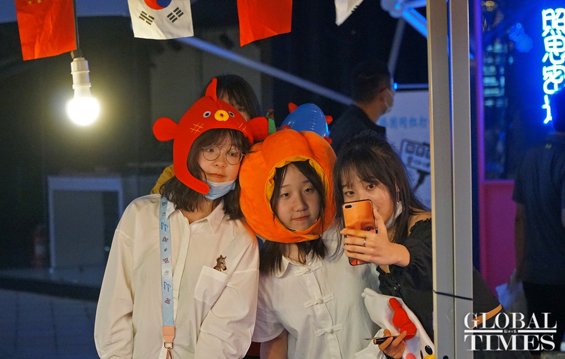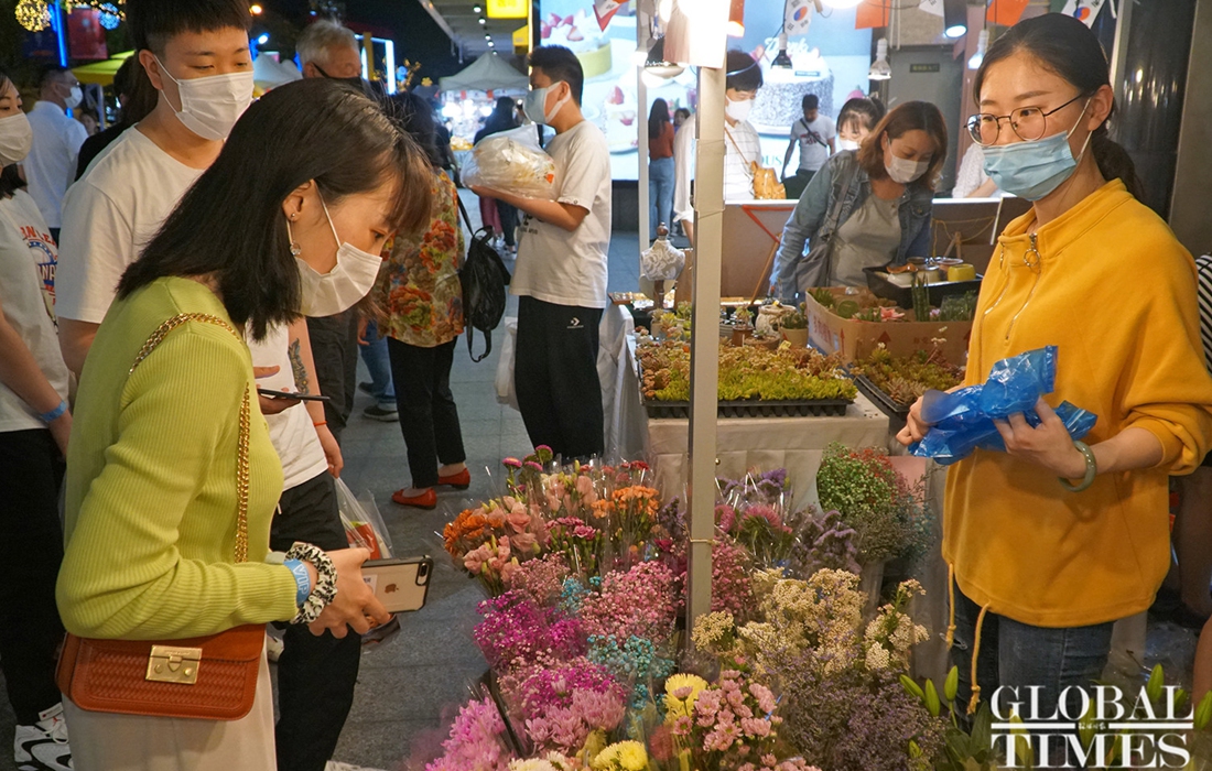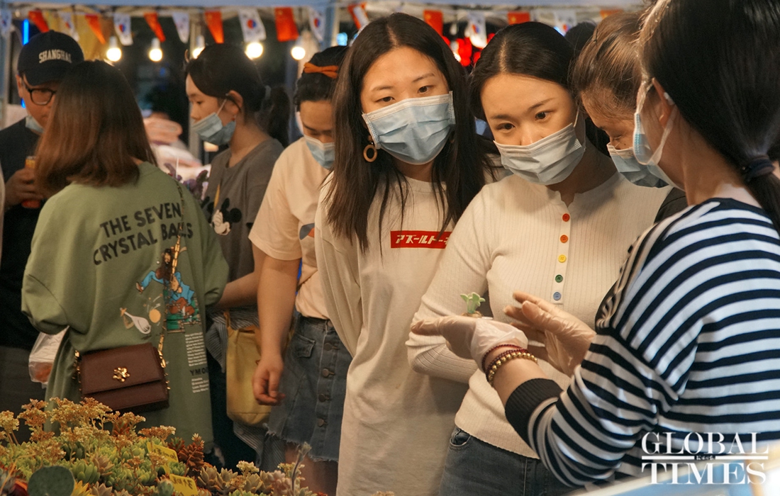 Crowds returned to the Korean street food market in the Minhang district of Shanghai where local residents were seen out shopping and enjoying their favorite foods.