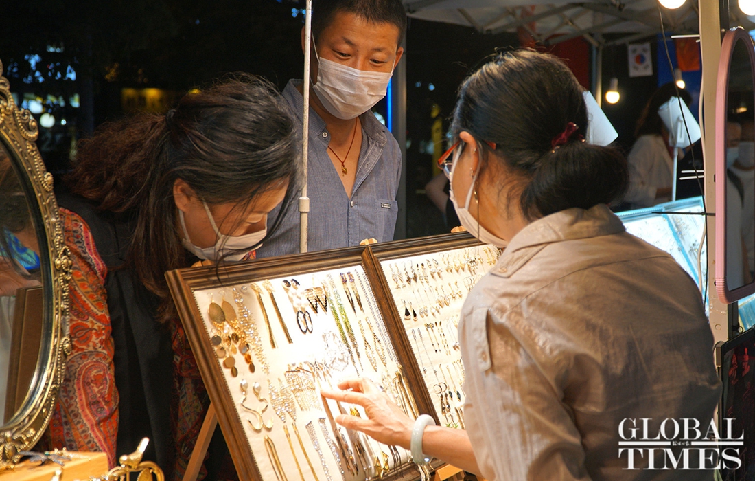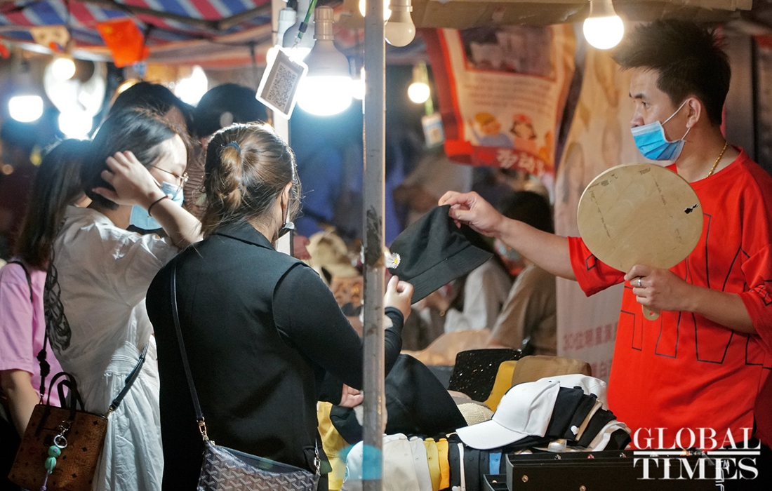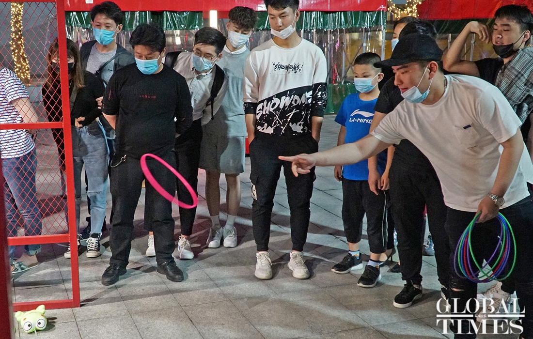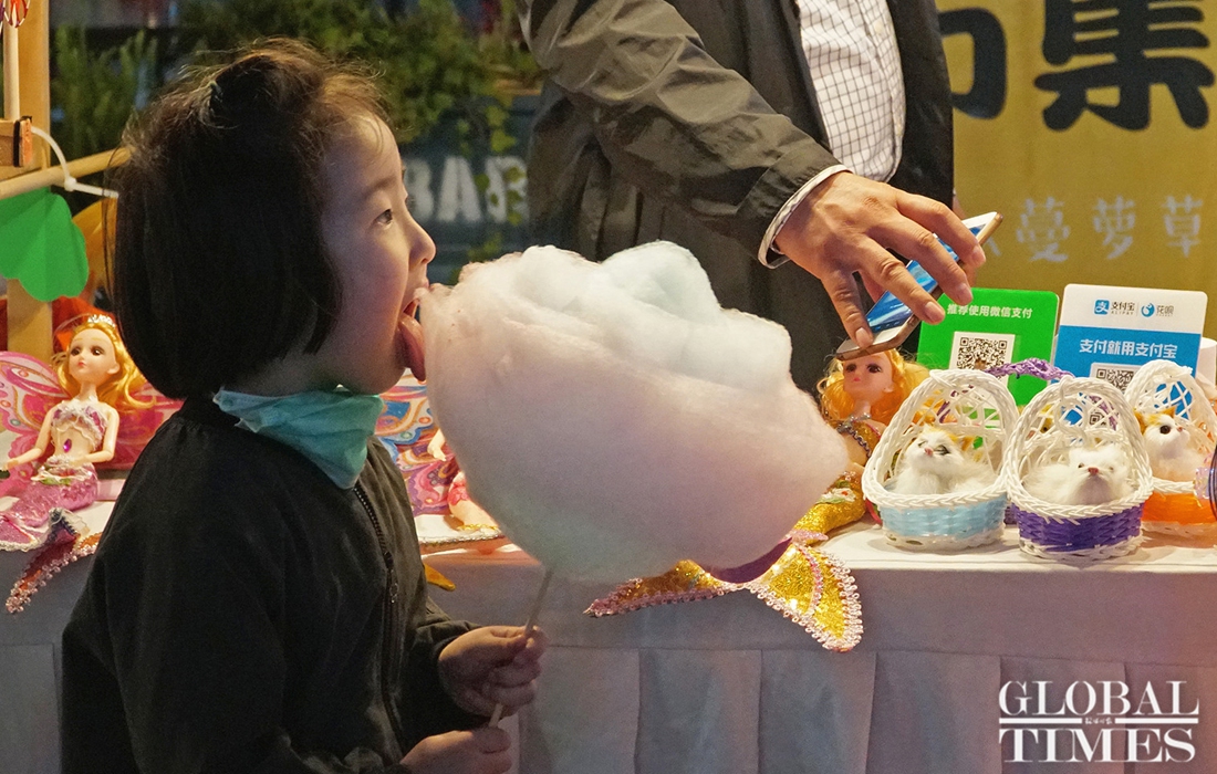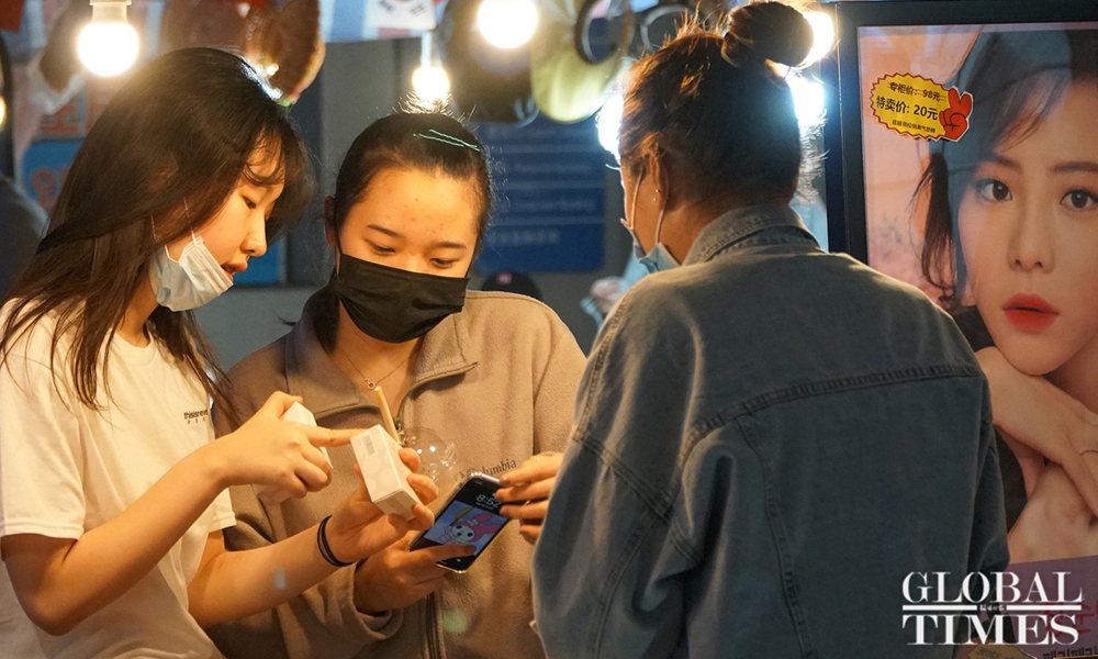 Crowds returned to the Korean street food market in the Minhang district of Shanghai where local residents were seen out shopping and enjoying their favorite foods.