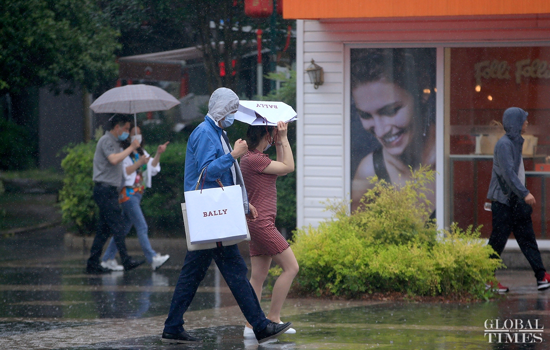 Heavy rain doesn't drown out the spirit of consumers in Shanghai