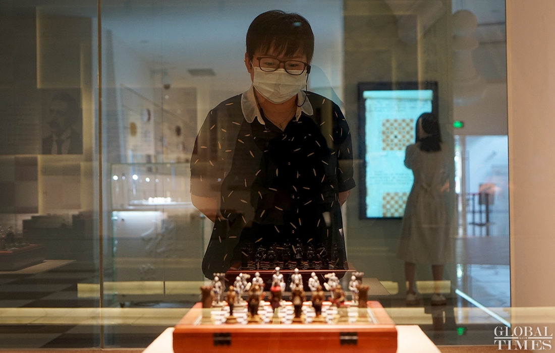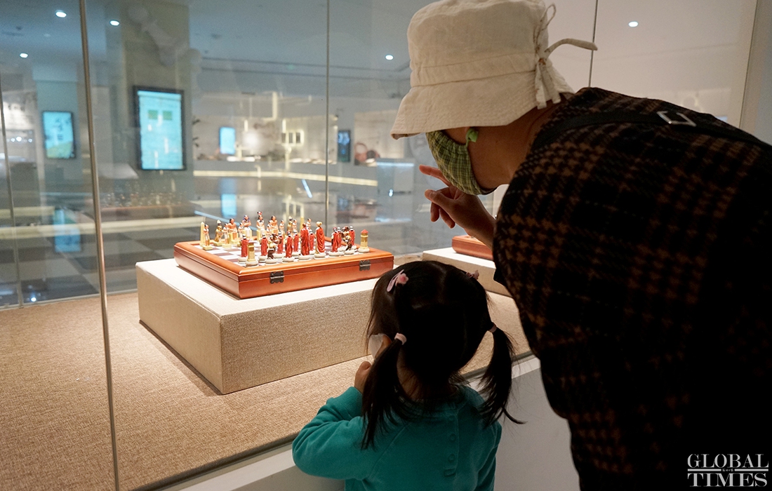Visitors relish the exhibitions at Shanghai Boards and Cards Games Culture Museum located in downtown Shanghai on Wednesday. Several cultural and tourism sites in Shanghai, including museums, Disneyland, and Shanghai Ocean Park, have resumed operation in May as the COVID-19 wanes in the city.