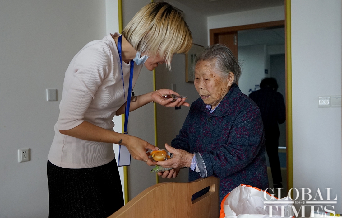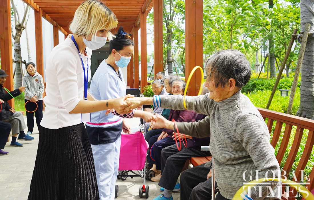 Anastasija Puzankova, a 35-year-old Latvian, described herself as a mother of over 200 senior residents with an average age of over 85, at the Jiufeng Senior Home in Qingpu district’s Liantang town, Shanghai. As a director at the home, she cheers up seniors with a brilliant smile every day, as they can’t have nursing home visits due to the epidemic. The local government provided them with some medical supplies such as masks and disinfectant for free to help them prevent and control the COVID-19 epidemic. She said they are grateful.