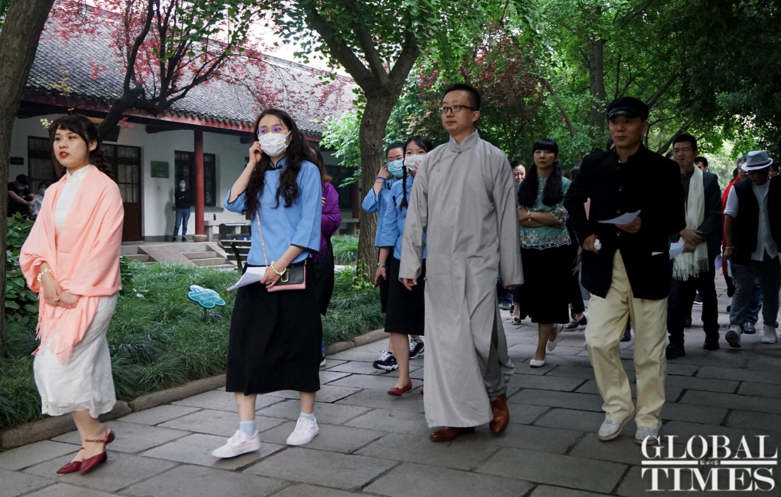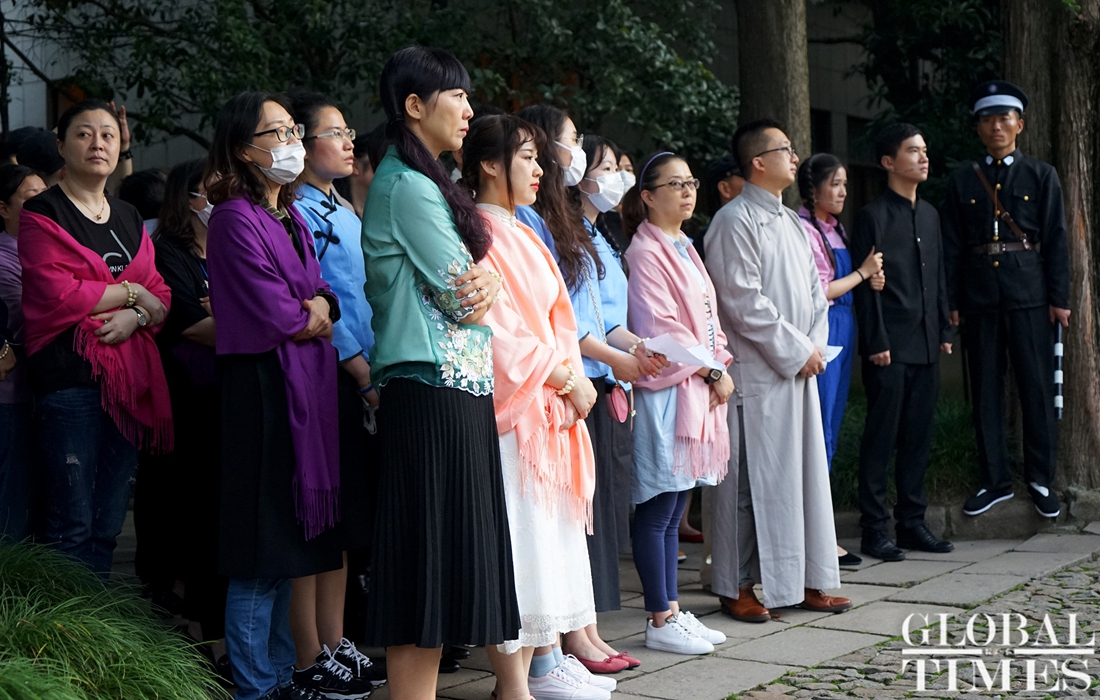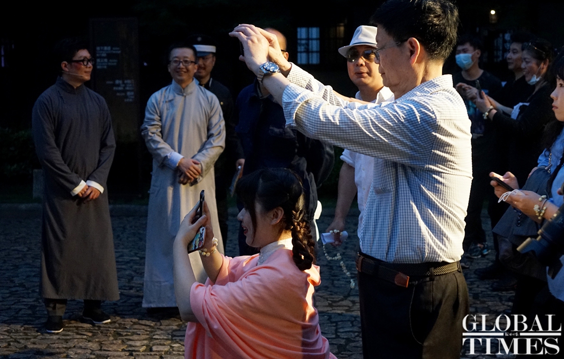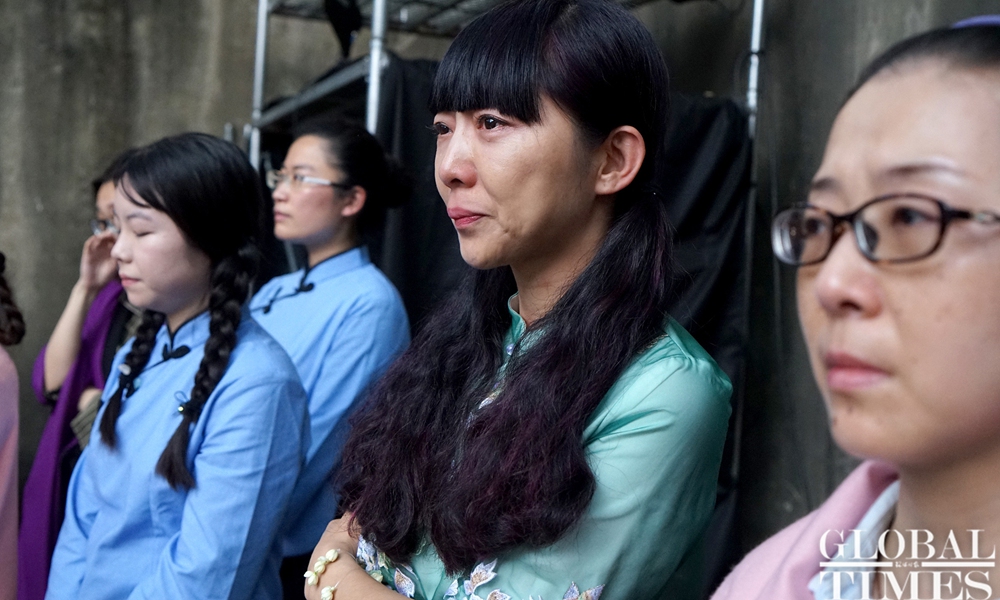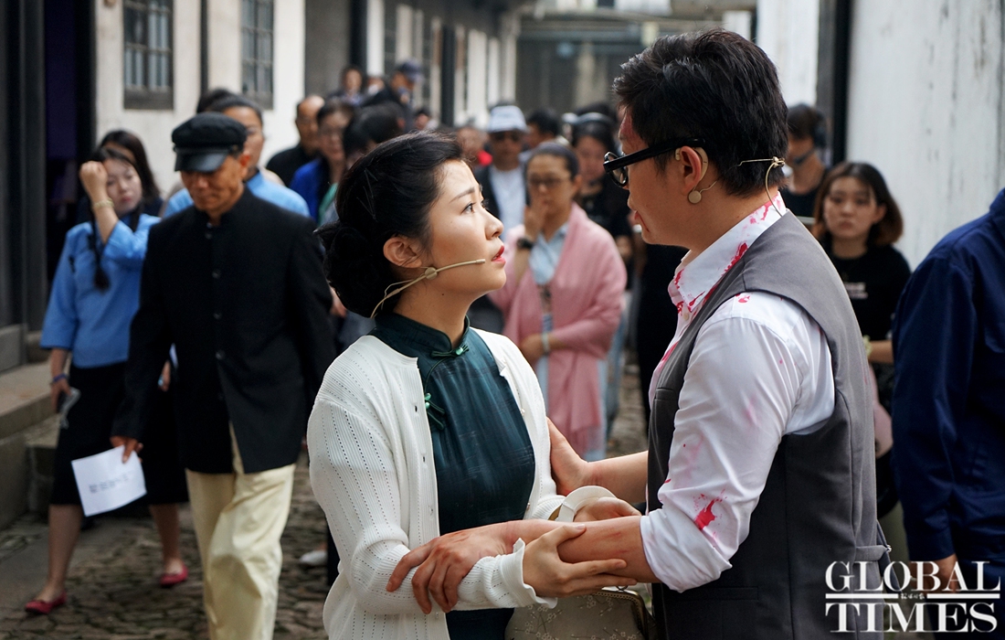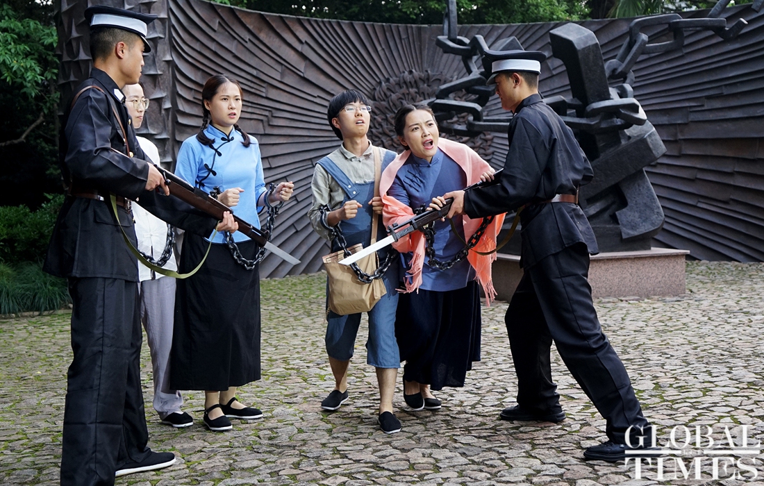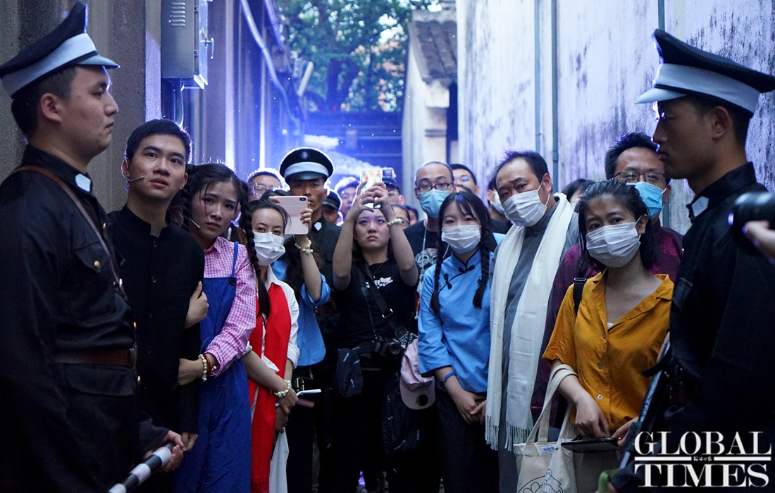 Longhua Martyrs Memorial of Shanghai delivered a novel and immersive play experience to its audience members by transforming itself into a stage on Sunday for International Museum Day. Actors and audience members dressed in costumes, and together performed in the memorial that told the story of a Chinese martyr from 1928.(Photos: Chen Xia/GT)