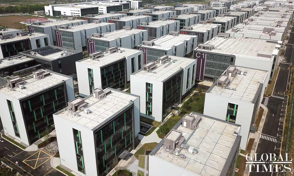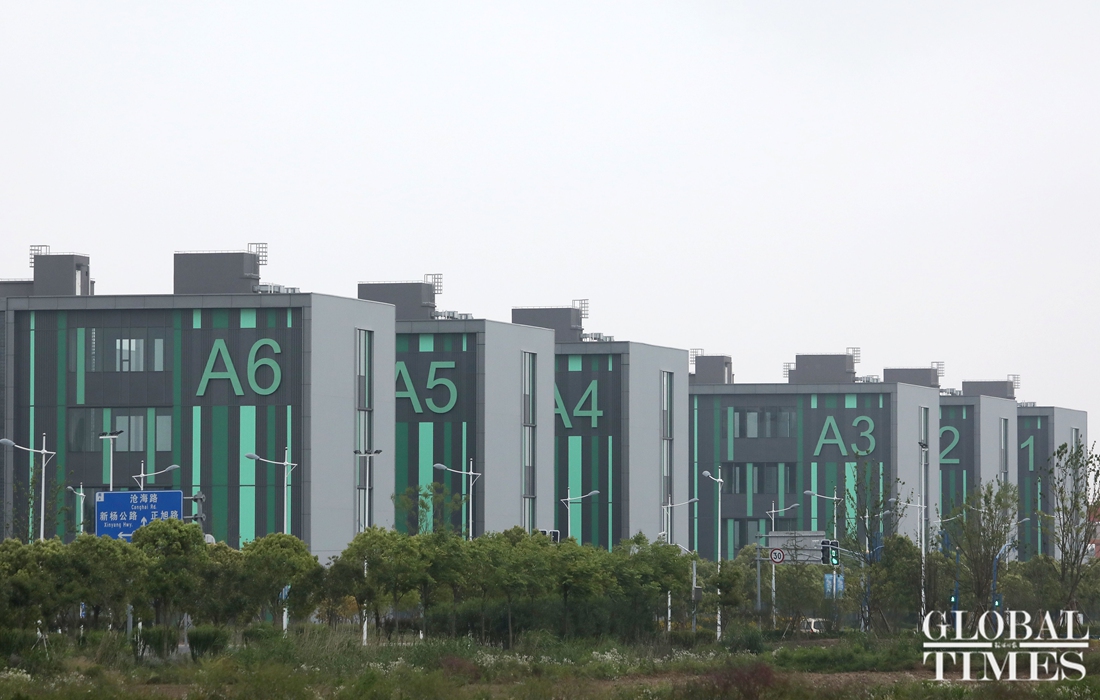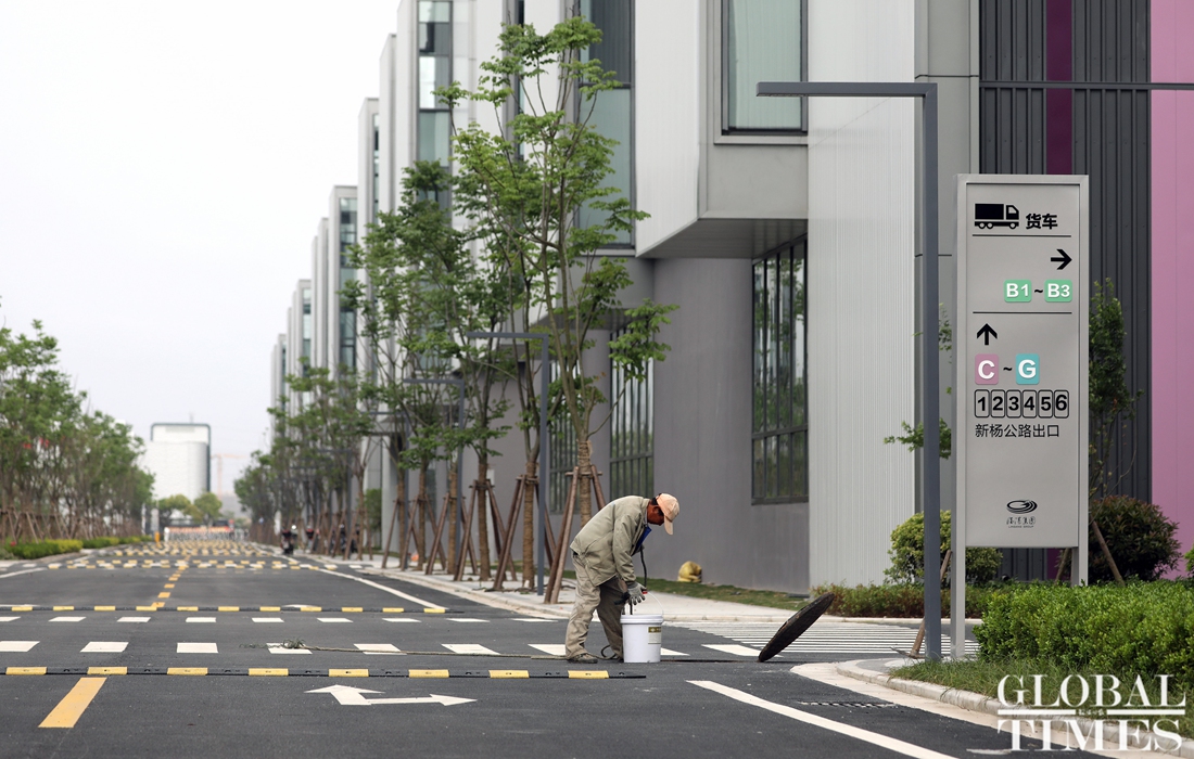 At the very center of the Shanghai Lingang Free Trade Zone, a 4.5 square kilometers Science and Technology Industrial Park, comprising of more than 40 office buildings, has reached completion and is ready for inauguration. The office buildings used the same glass brick facade as the Maison Hermes, one of Tokyo's landmark buildings, to elicit an aura of technology and modernization. As of now, some biomedical and medical device manufacturing companies have signed up for office spaces in this world-class industrial area. (Photos: Yang Hui/GT)