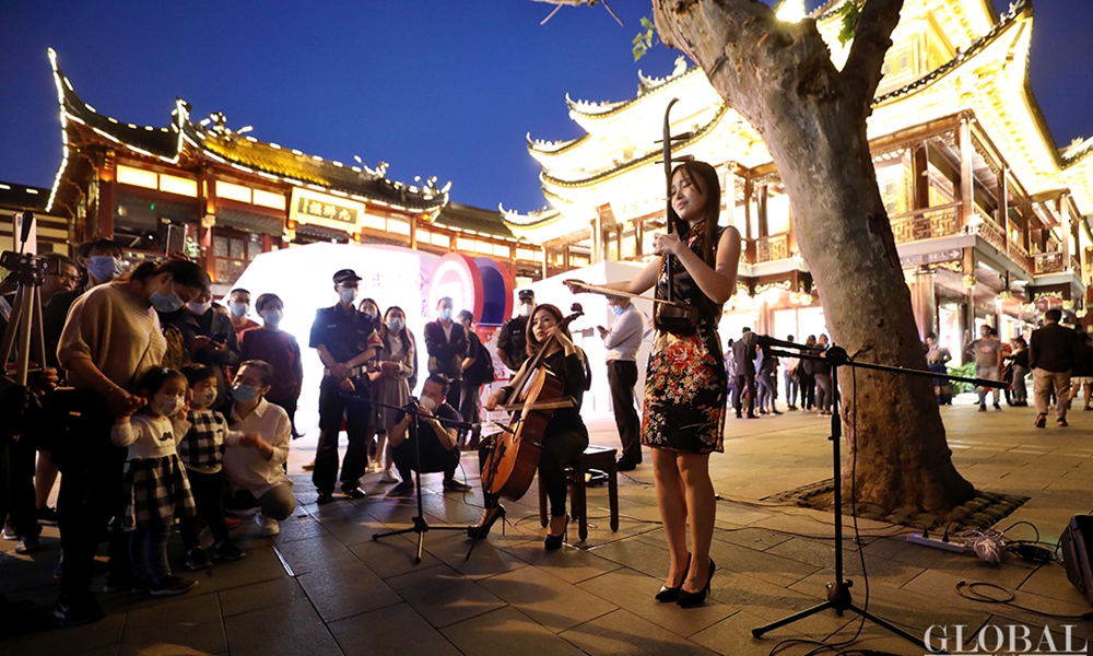 Yuyuan Garden in Shanghai, a classical Chinese garden, holds a variety of Chinese traditional performances to attract tourists and boost tourism post-COVID-19 epidemic.