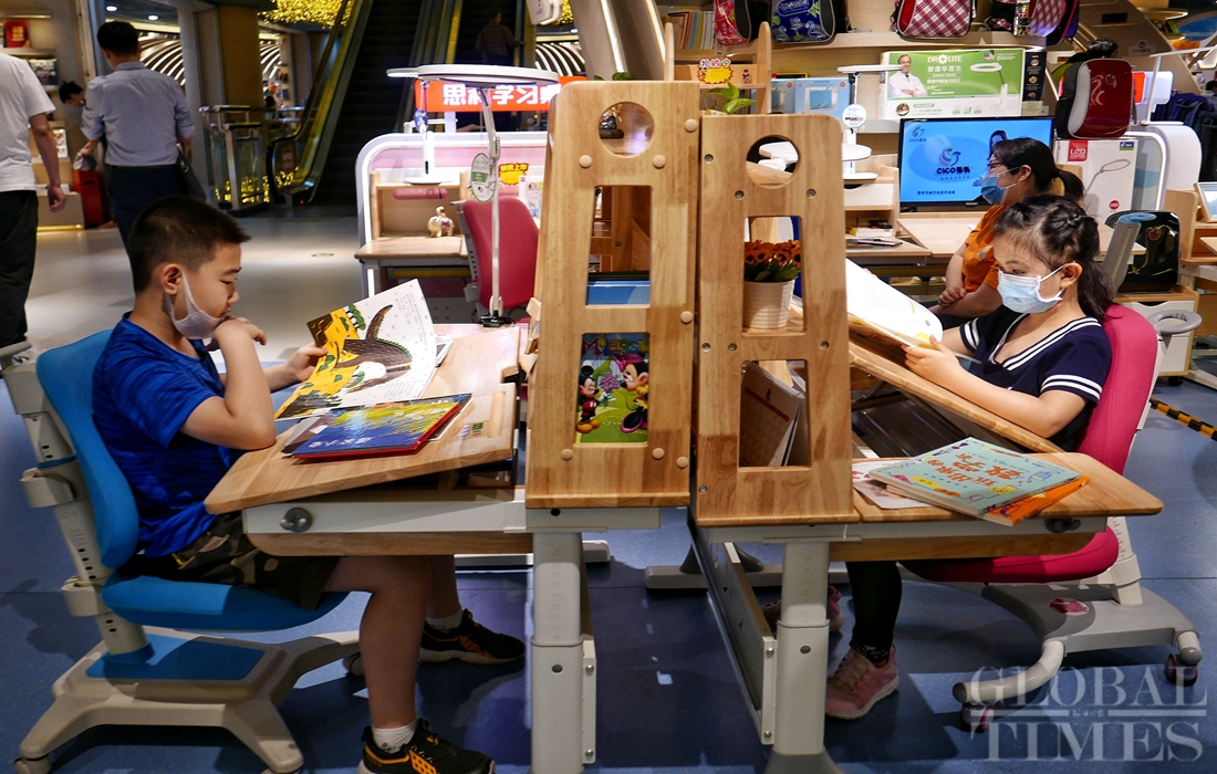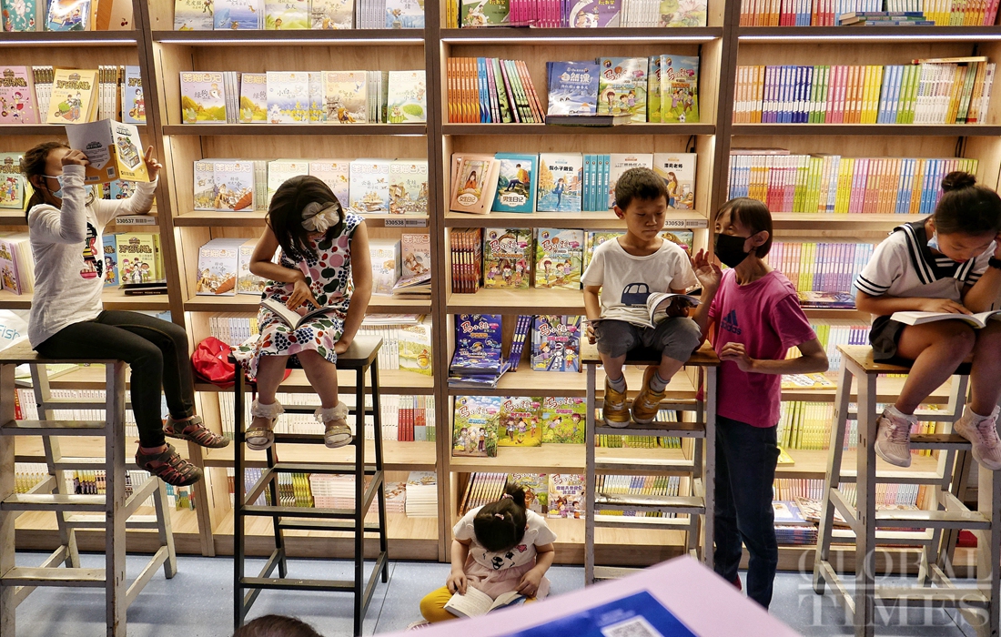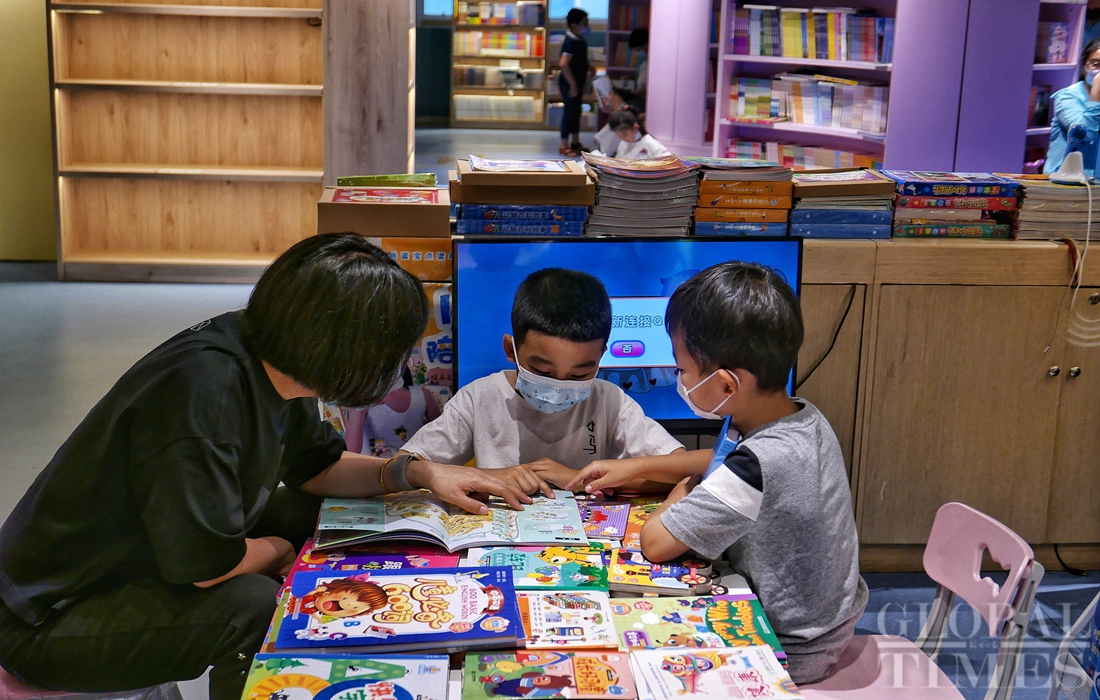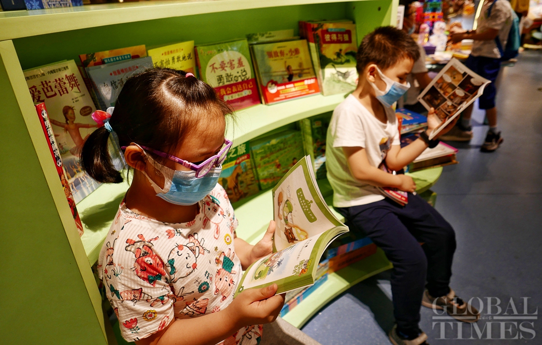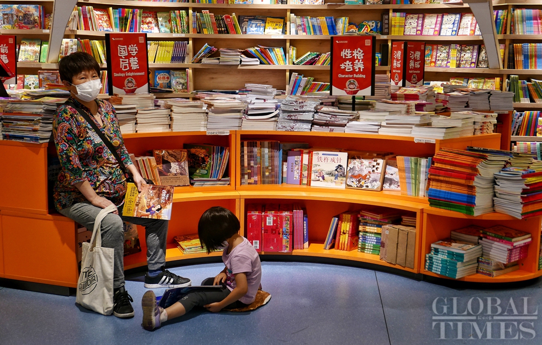 Children read books with their families in Beijing's Wangfujing Bookstore on Monday, Children’s Day. Photos: Li Hao/GT