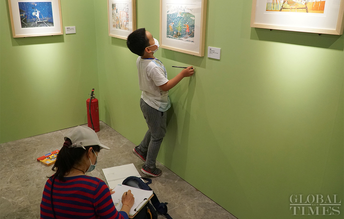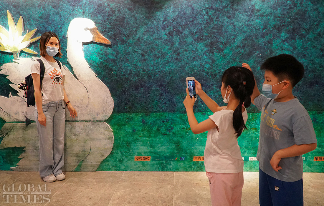 In order to let children spend an artistic children's day, the Hans Christian Andersen Awards IBBY 50th Anniversary Exhibition opened in Shanghai on June 1. The exhibition will last for three months and will be free for medical workers in June to express support for medical staff in the fight against COVID19. Photos: Lu Ting/GT