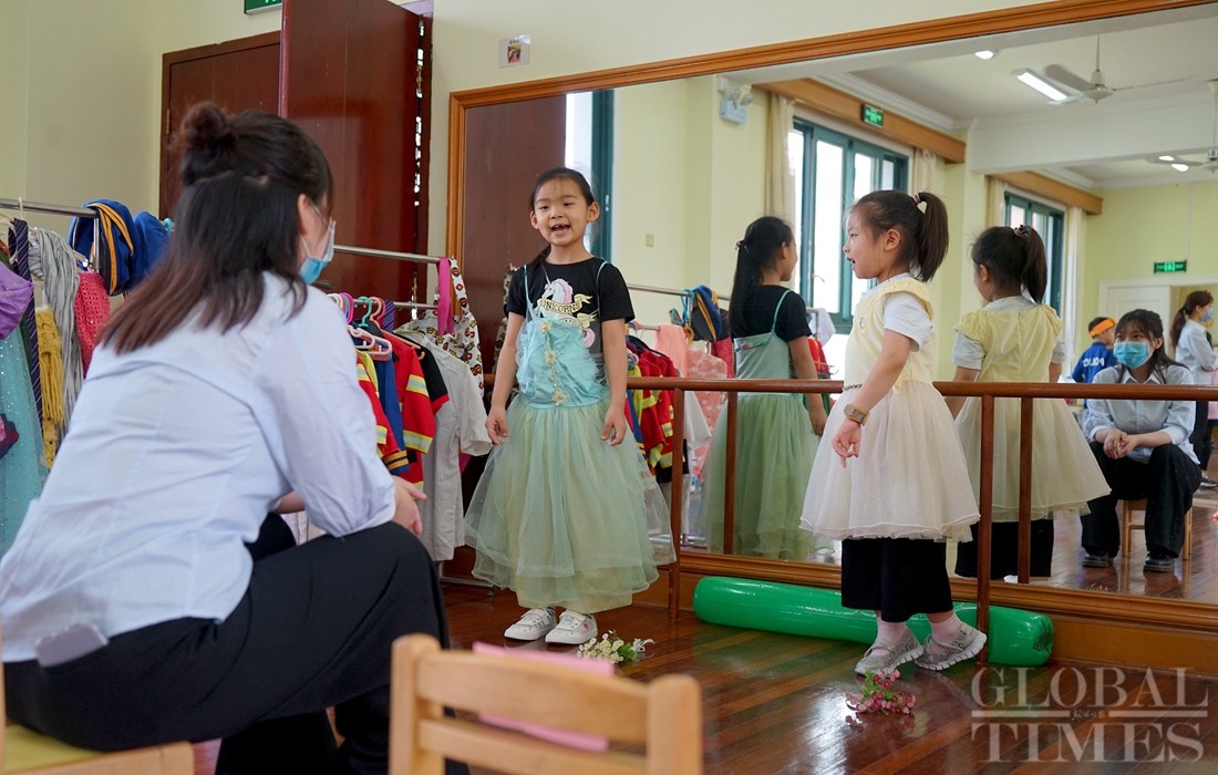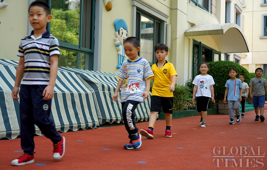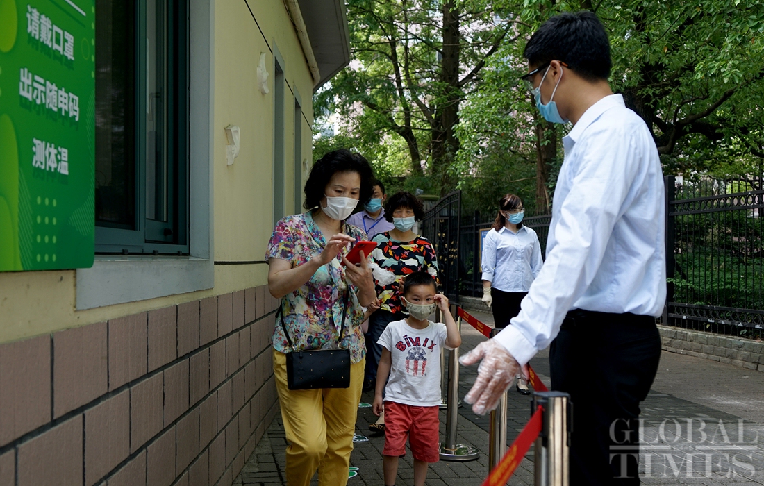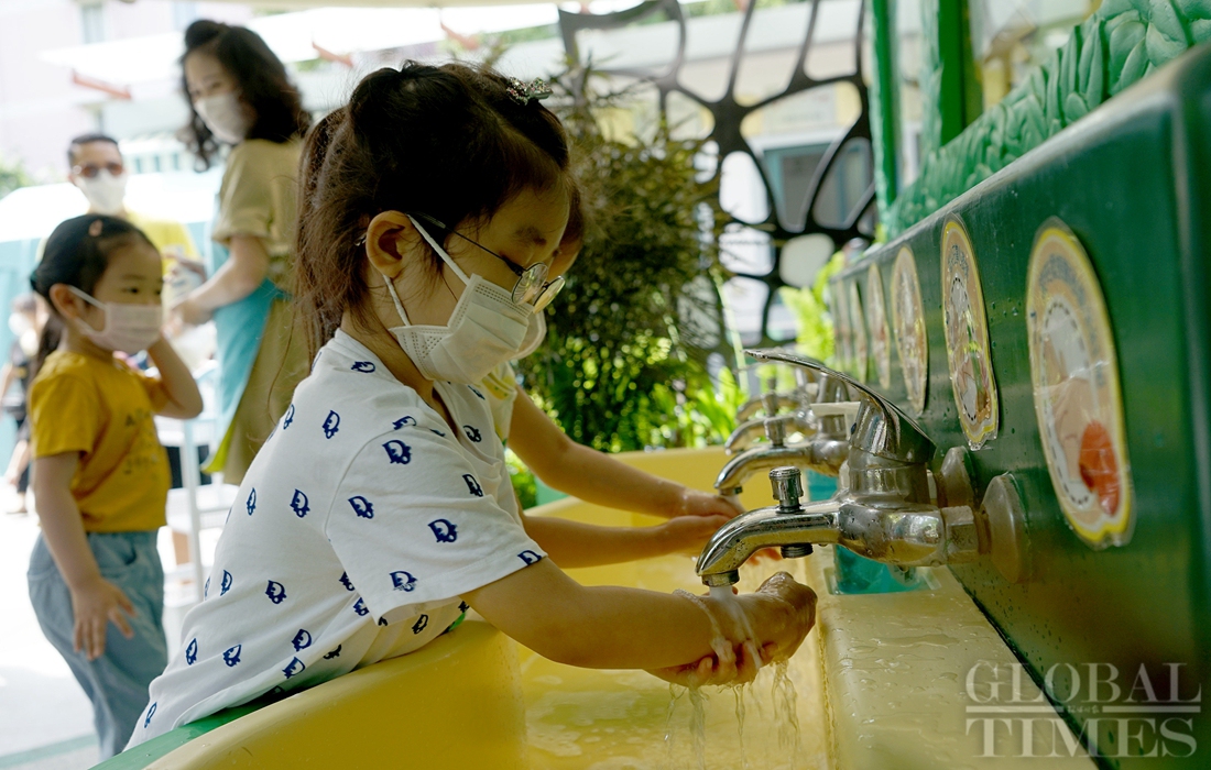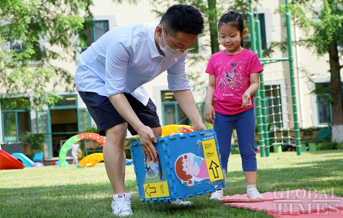 Nearly 2,000 kindergartens and nurseries in Shanghai reopened Tuesday. At the China Welfare Institute Nursery, where about 380 children aged from 2 to 6 have gone back to the campus, the children invented some interesting games in which they fight COVID-19. Students from the first to third grades in the city also returned to campus, following those who returned starting from April 27. Photos: Chen Xia