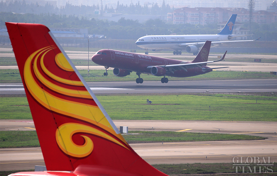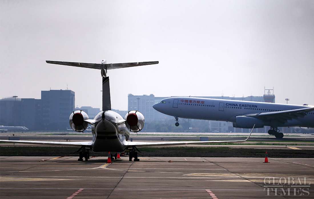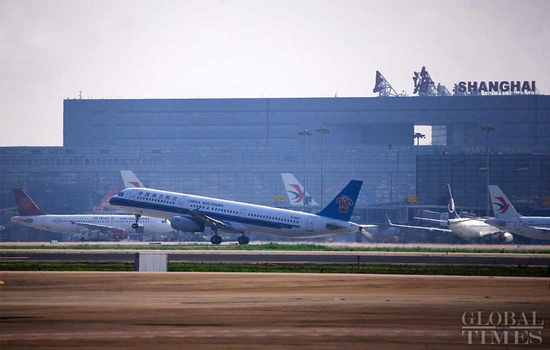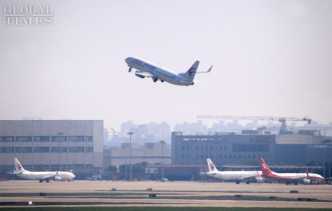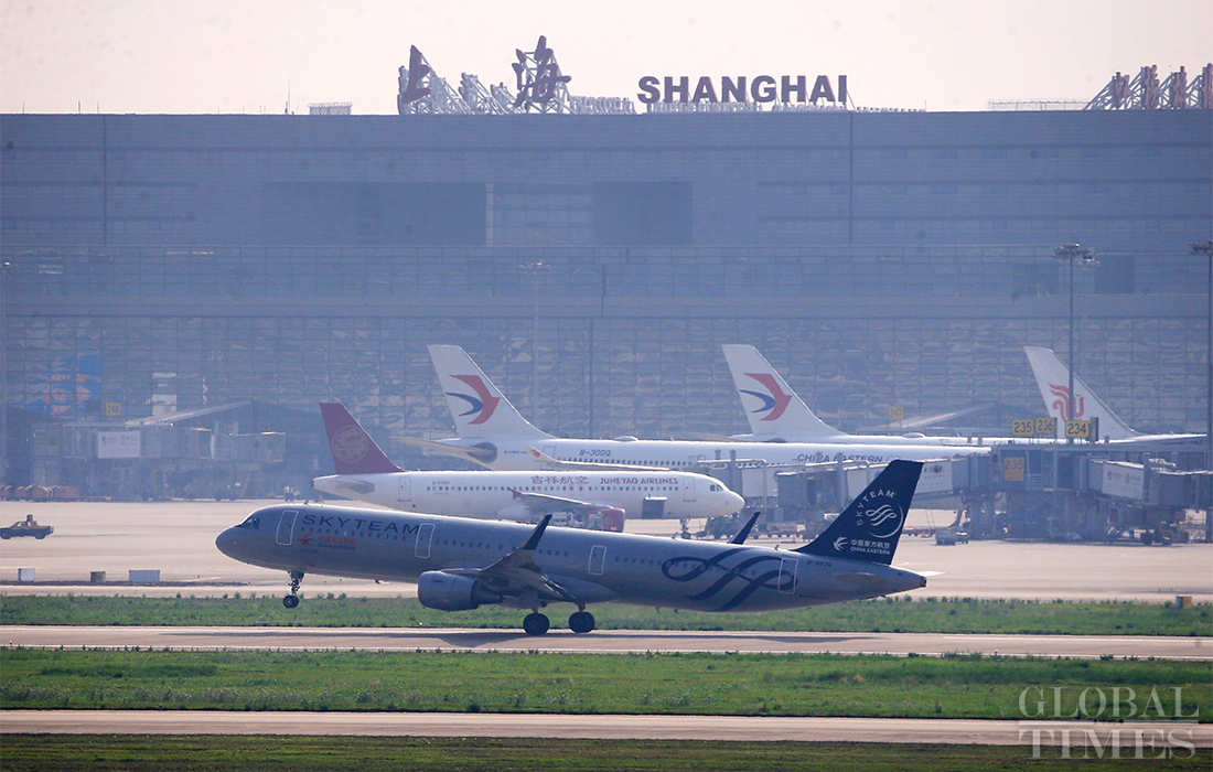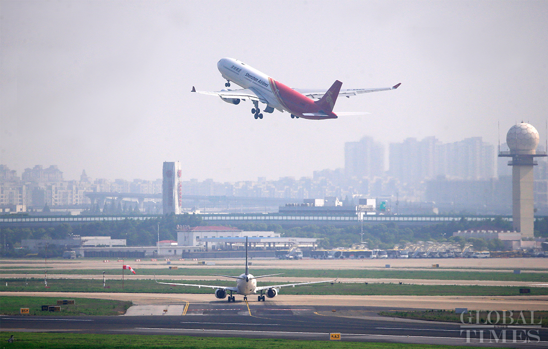 Photos show the busy Shanghai Hongqiao International Airport on Thursday. China's civil aviation regulator on Thursday moved to loosen international flight restrictions by allowing all qualified foreign airlines to resume services to China from Monday, to boost international travel and enable a faster economic recovery while continuing efforts to stem the arrival of imported coronavirus cases. Photos: Yan Hui/GT