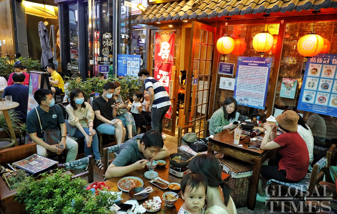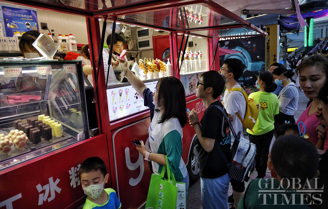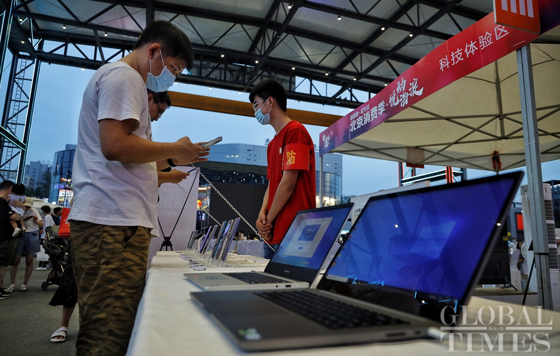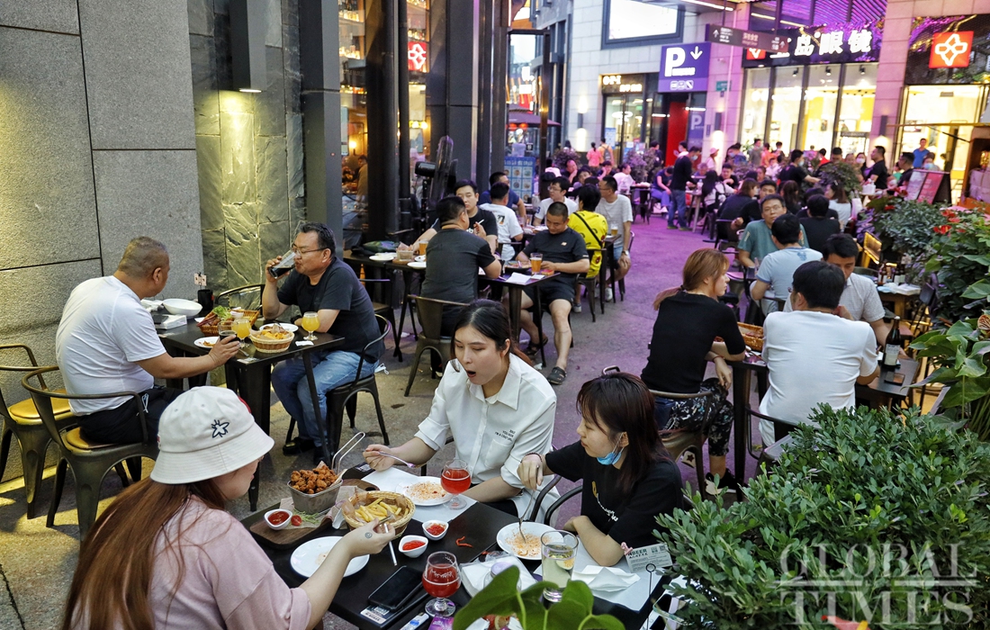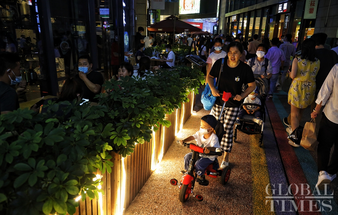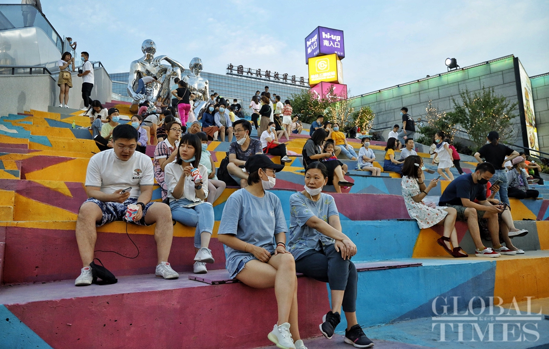 Beijing residents hang out to shop on Sat as the city starts to issue shopping vouchers worth 12.2 billion yuan ($1.72 billion) to boost consumption. China's capital lowered COVID-19 emergency response level to its second-lowest on Friday.