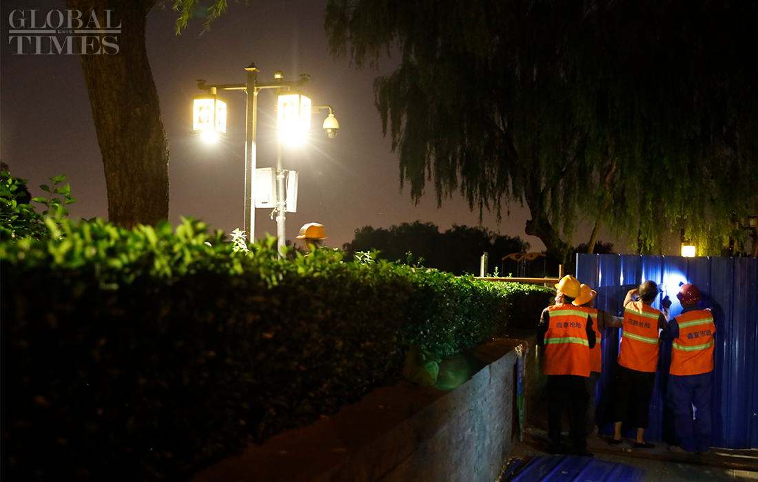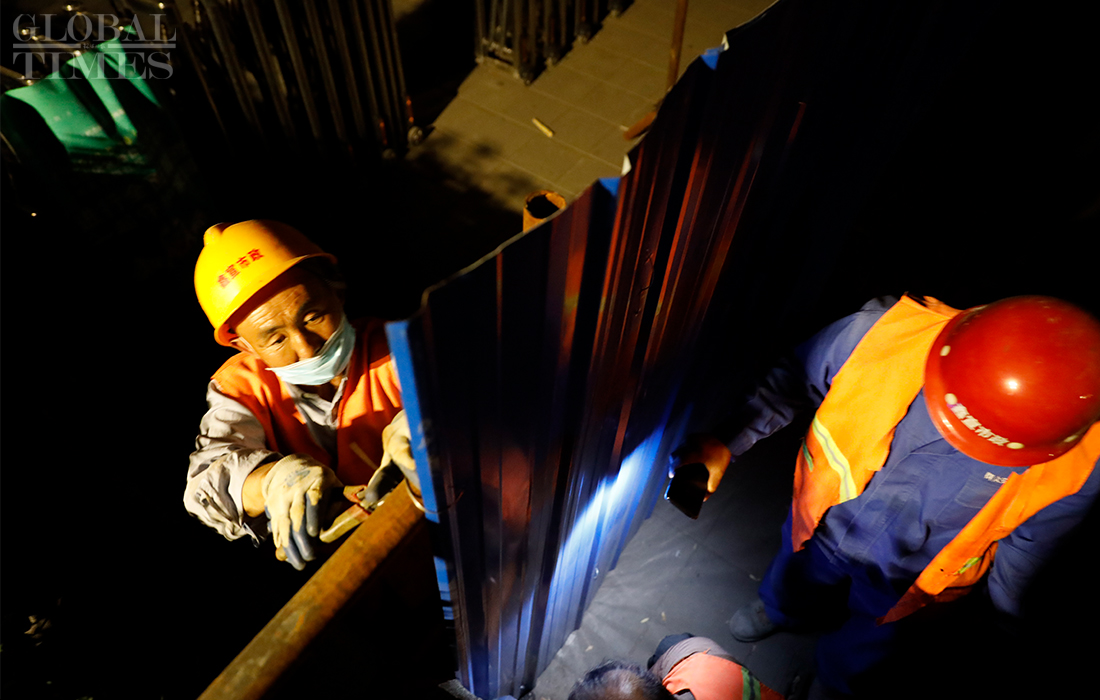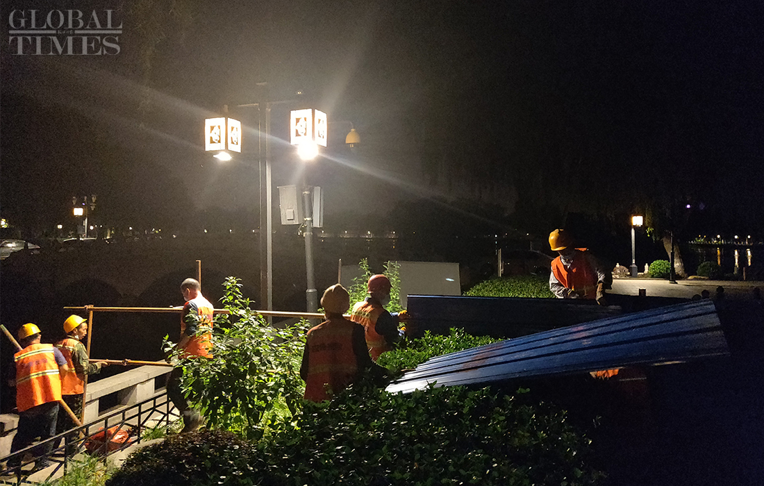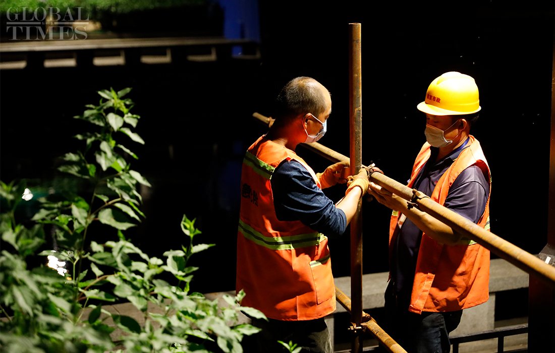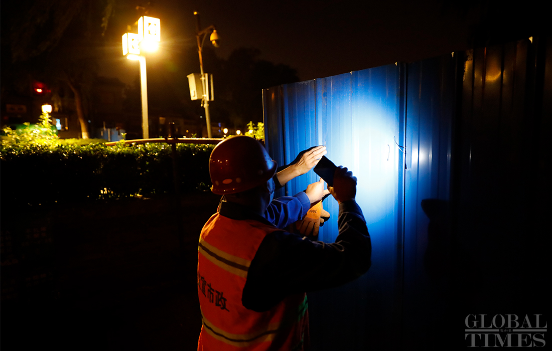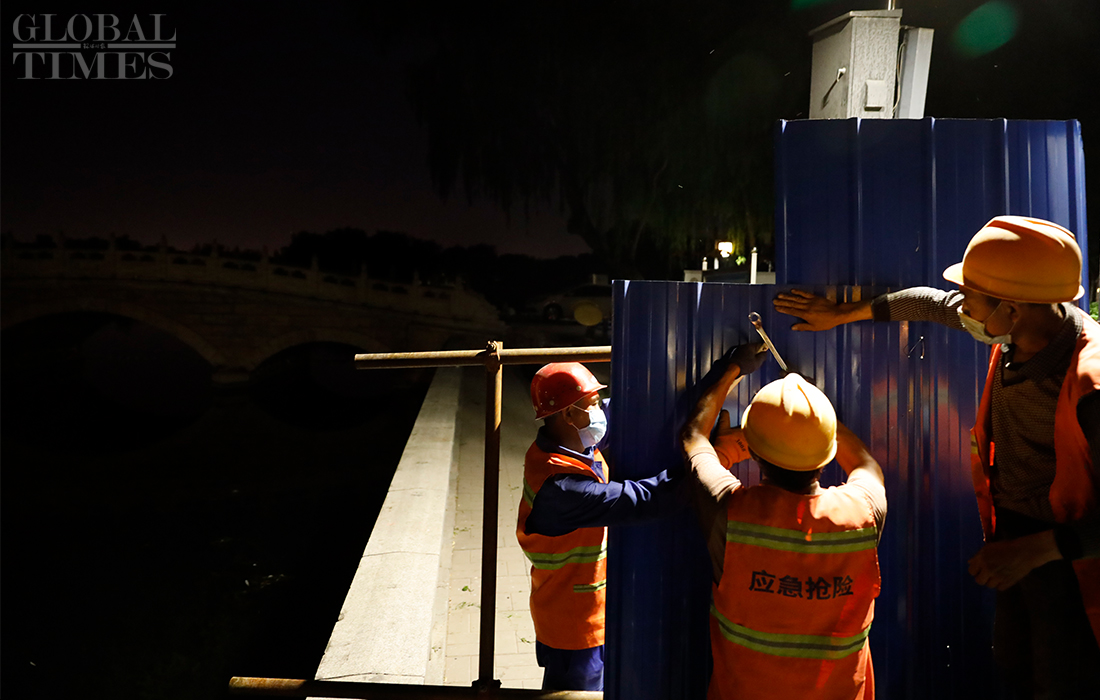 Workers install isolation fences at the Shichahai scenic area in Beijing’s Xicheng district overnight as all communities in the district raised their anti-epidemic measures to level 2 on Sunday. The Beijing Xinfadi wholesale food market became a new coronavirus hot spot as the confirmed cases in the capital were all traced to the market. Beijing has reported 79 COVID-19 active confirmed cases as of Monday. Photos: Li Hao/GT