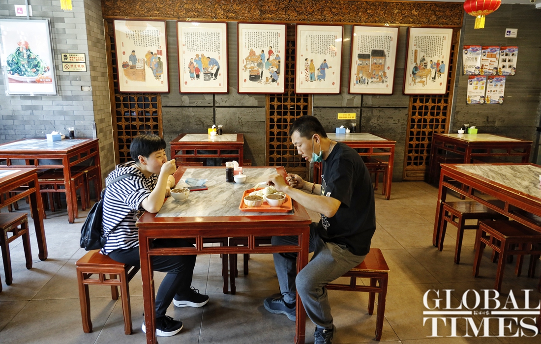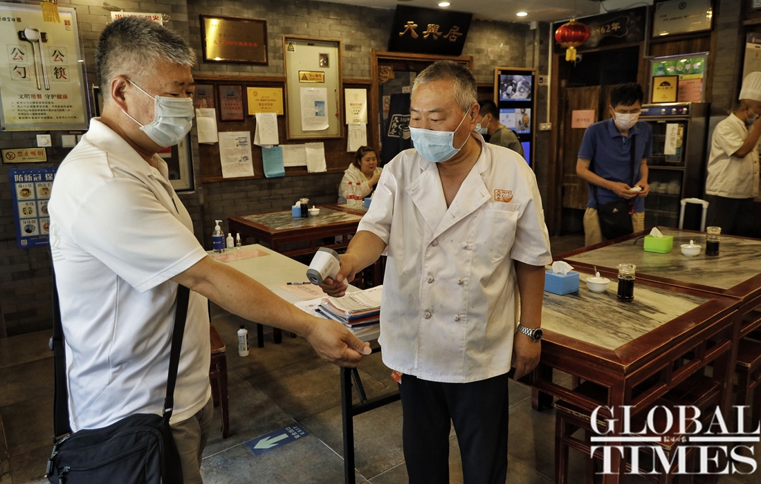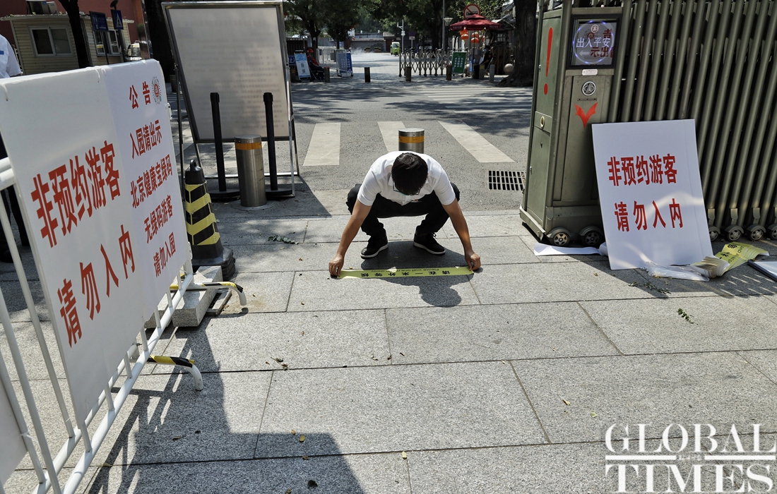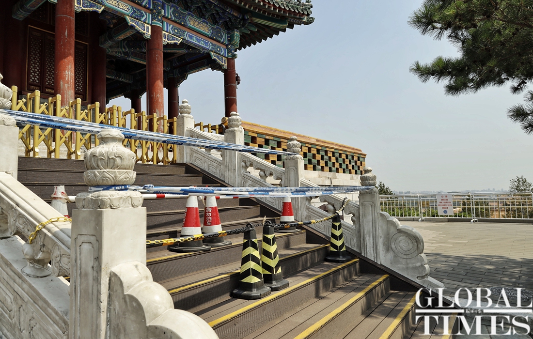 As Beijing’s COVID-19 prevention and control measures become stricter to prevent the virus from spreading, popular travel spots have seen a significant drop in tourists. GT reporter recorded moments in Beijing's Beihai park and Jingshan park, showing strict social-distancing policies being carried out within the parks. Restaurants in Qianmen district, one of the most popular places close to Tiananmen Square, have also been temperature screening all their customers. (Photos: Li Hao/GT)