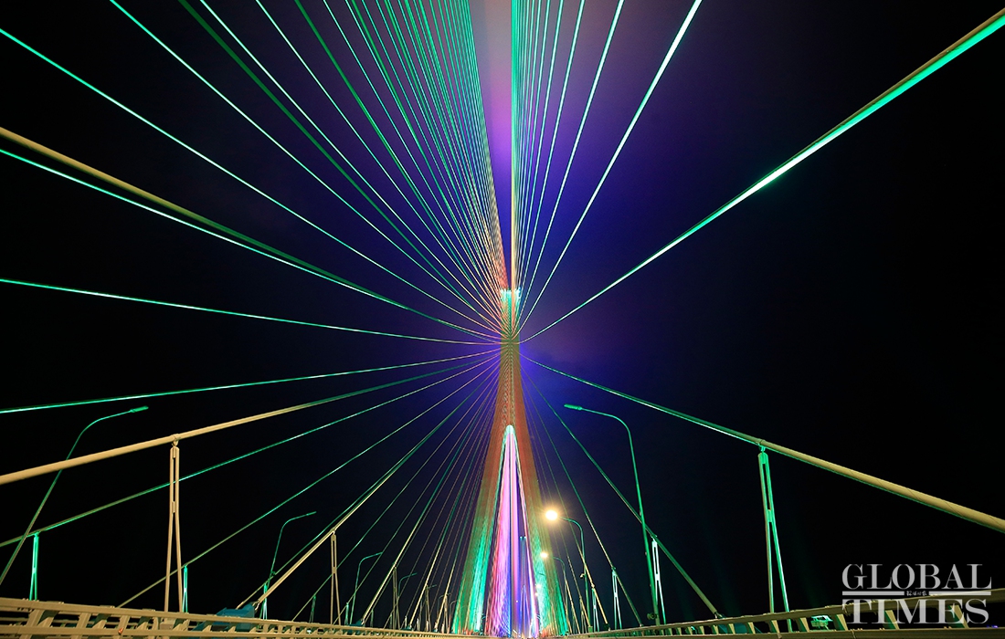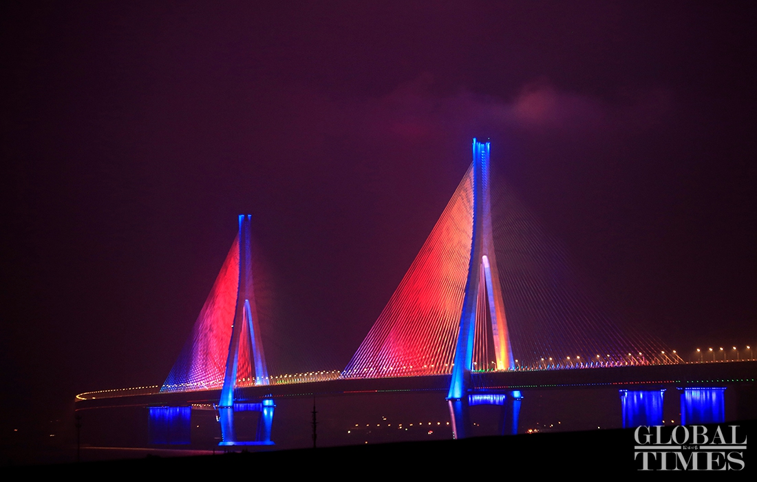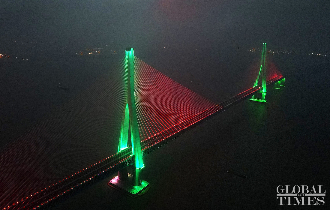 After 6 years of construction, the cable-stayed bridge in East China’s Jiangsu Province, which runs between Nantong to Zhangjiagang, was officially named the Suhutong Yangtze River Bridge on Monday.
