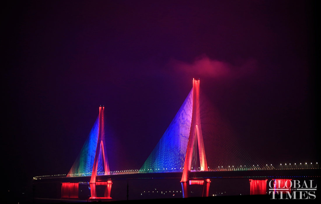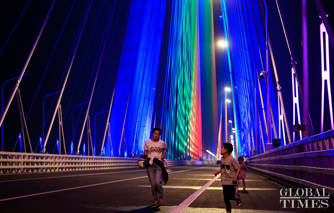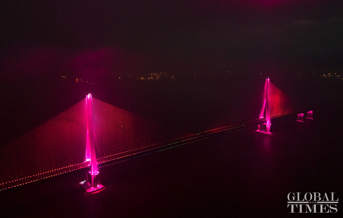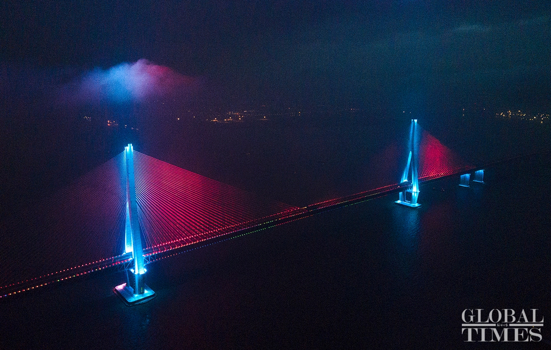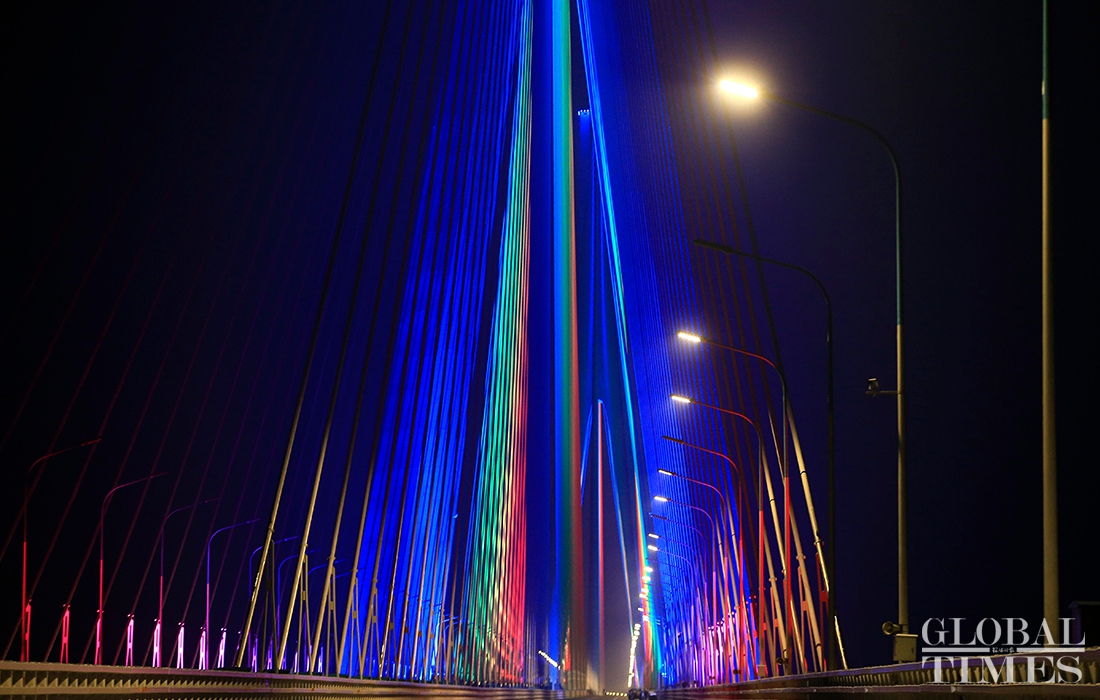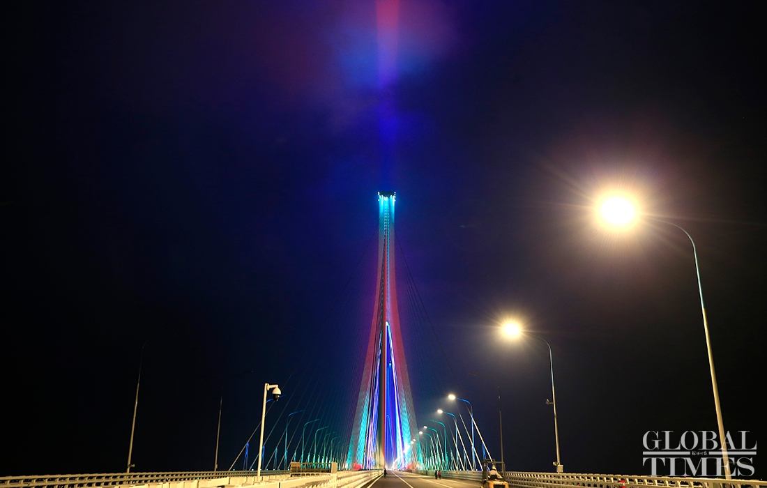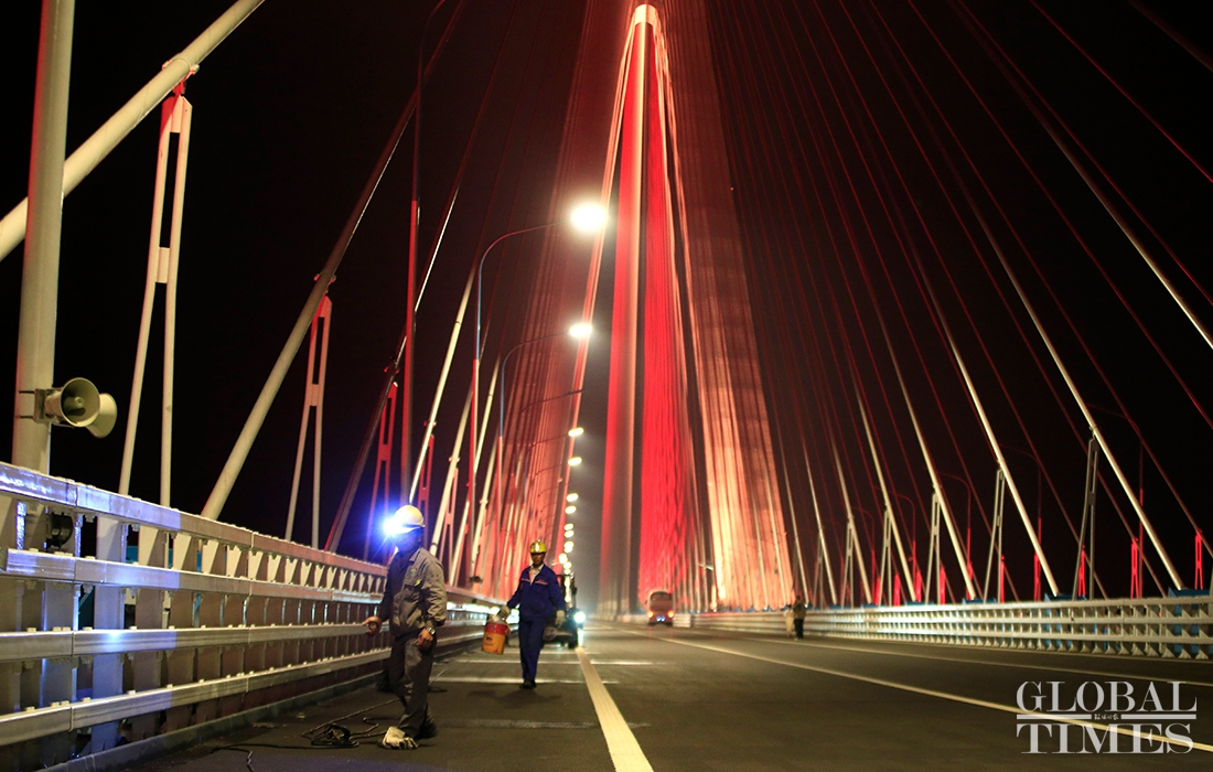 The bridge is the world's first road-rail cable-stayed bridge with a span over 1,000 meters and is expected to be operational on June 30.