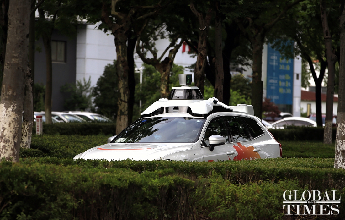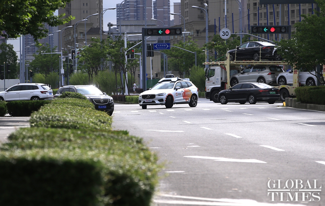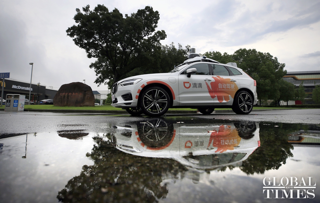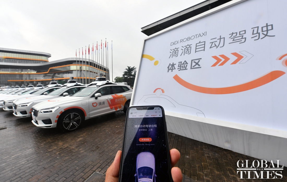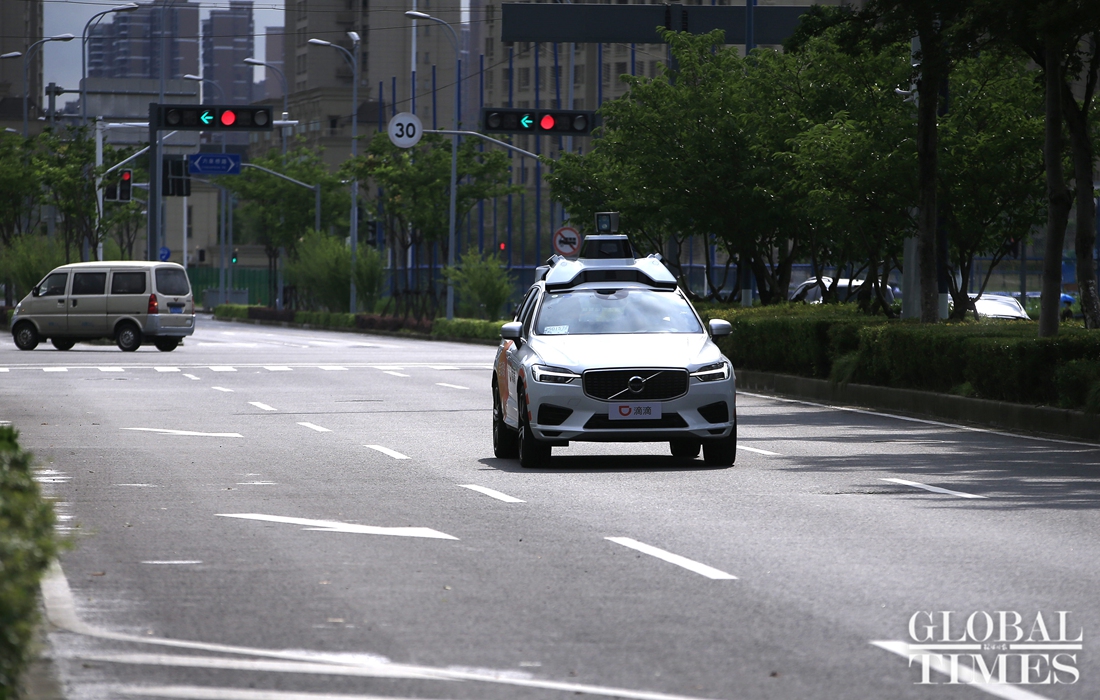 China's ride-hailing giant Didi Chuxing (DiDi) launched its self-driving taxi service to the public in Shanghai on Saturday. A Global Times reporter took a test trip on Sunday, and found the vehicle automatically avoids pedestrians, obeys traffic lights, and take turns smoothly. (Photos: Yang Hui/GT)