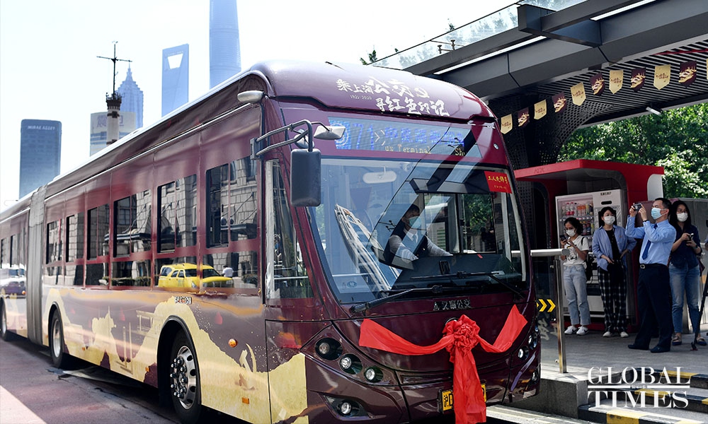 Shanghai unveils new bus celebrating CPC’s 99th birthday