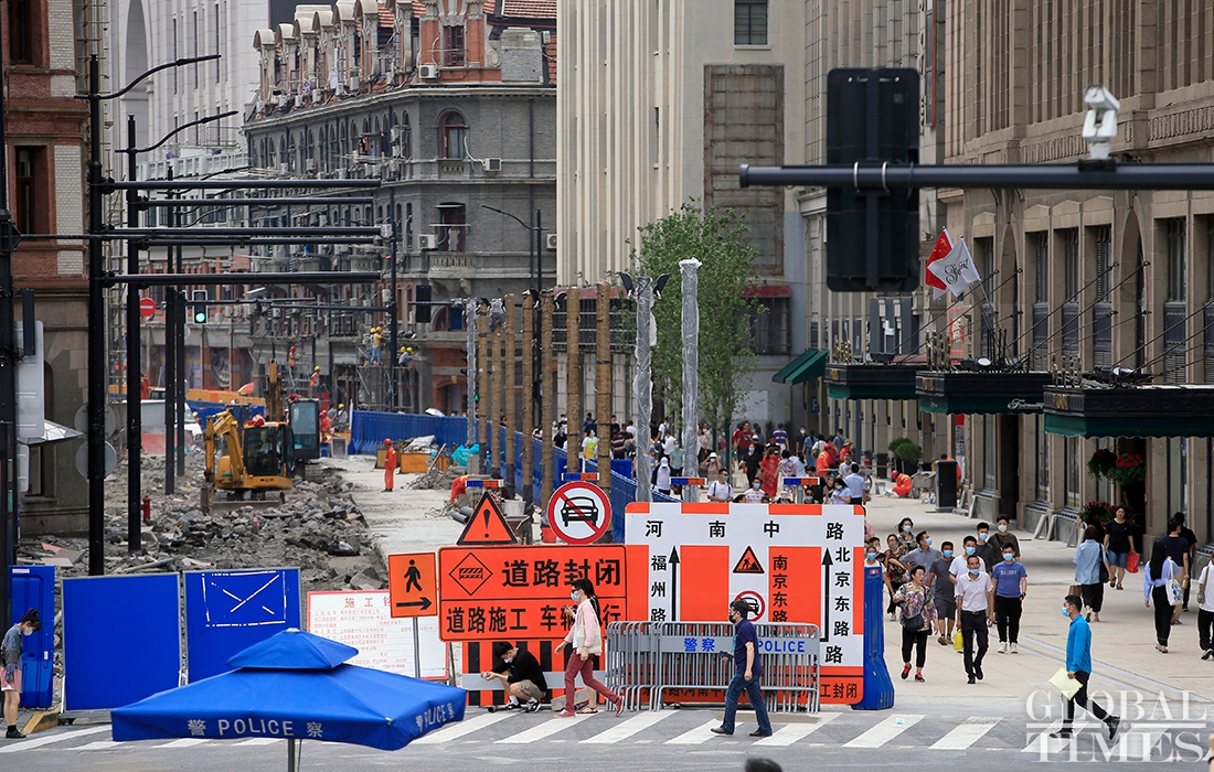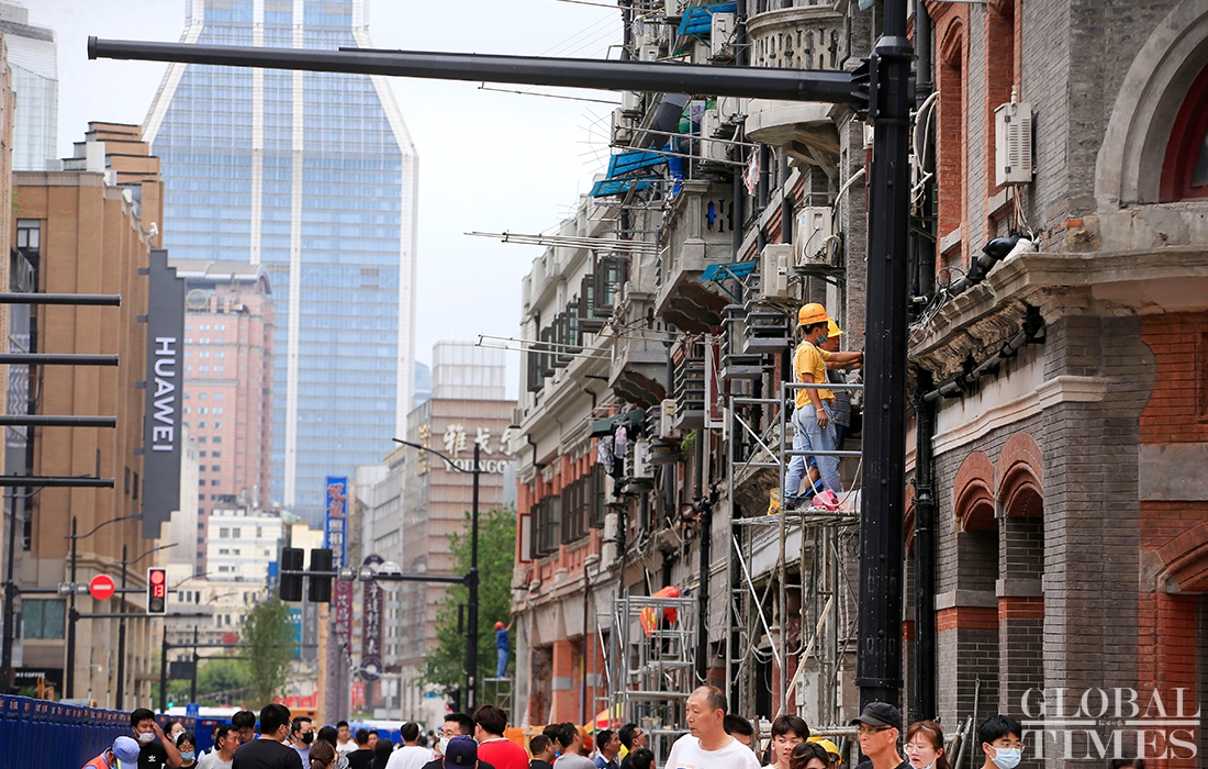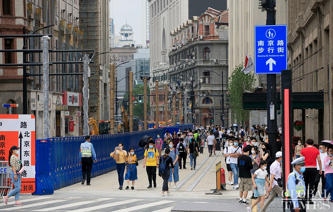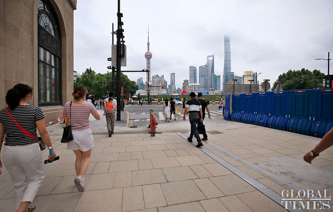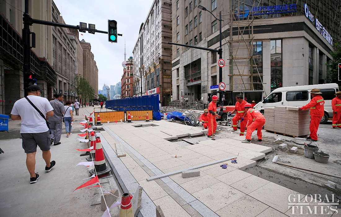 Residents and tourists in Shanghai are now able to walk to the iconic Bund all the way along the Nanjing Road Pedestrian Street as an extension project on the east part of the street is now partially completed. The project is expected to be finished by October 1.