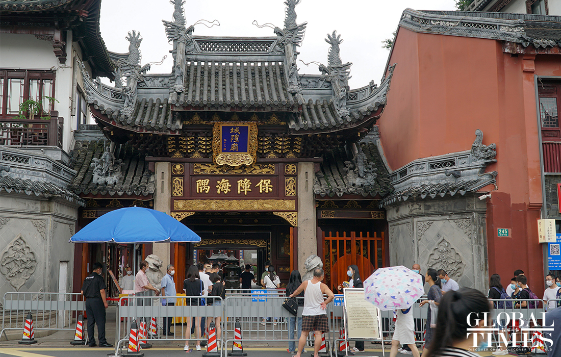 People visit the Chenghuang Temple in Shanghai on July 10. Photo: Lu Ting/GT figcaption >