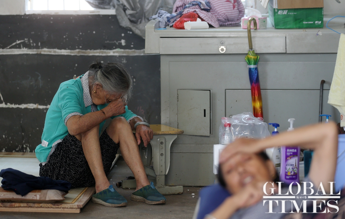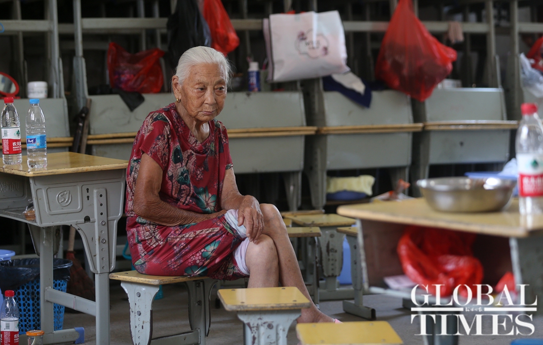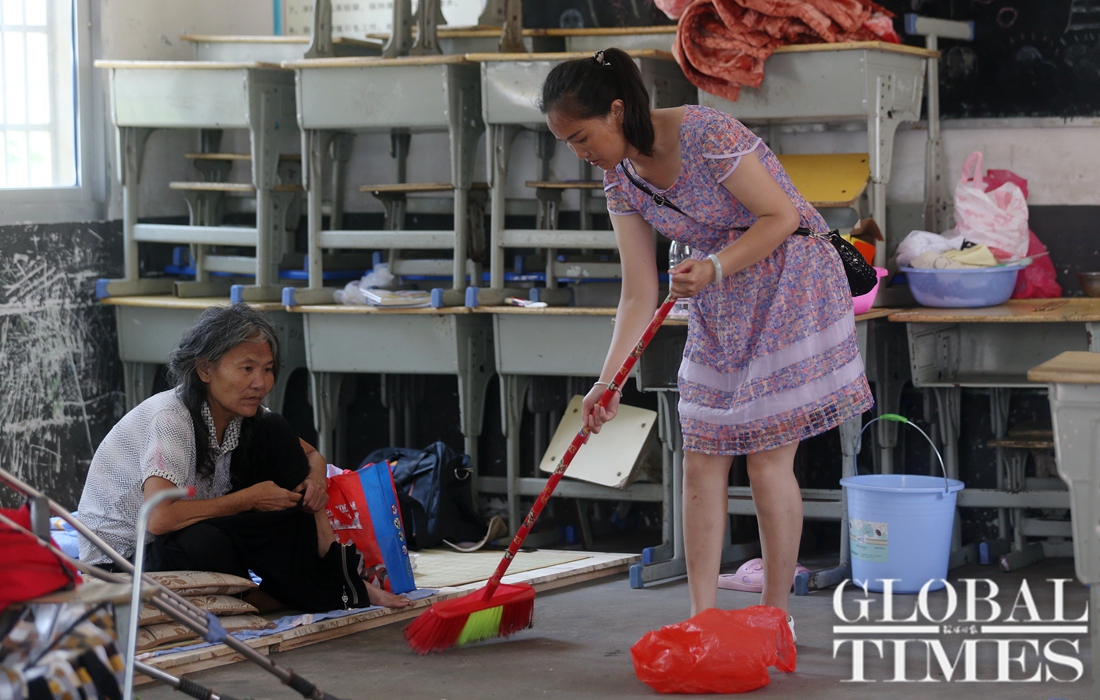 The school-based shelter was set up on Sunday and can accommodate 160 people. 132 people from Dengjia and Guizhong village of Poyang county are being cared for at the school. Poyang Lake, China's largest freshwater lake, exceeded the highest-ever recorded water level on Sunday. (Photos: Cui Meng/GT )