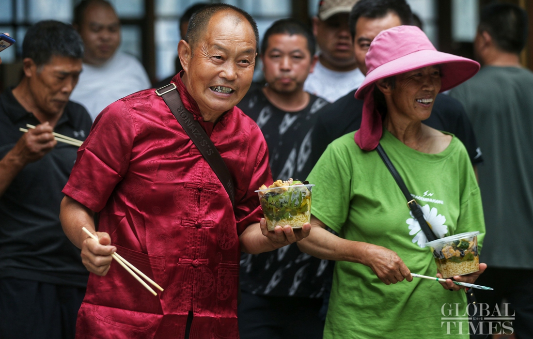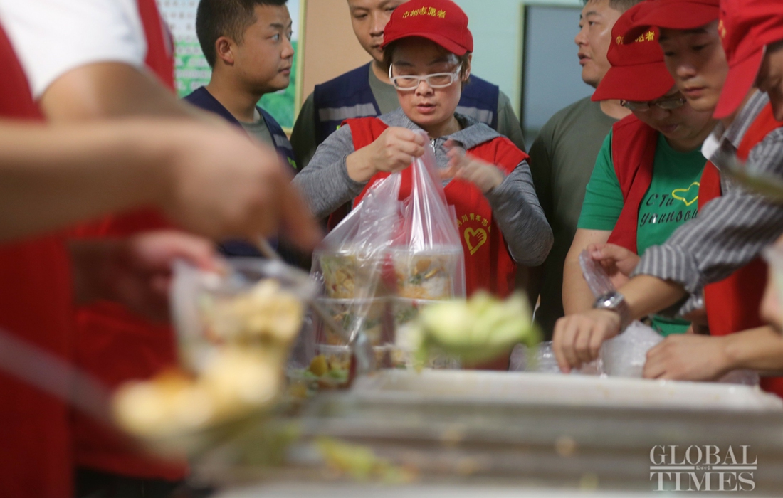 The government offers free meals to evacuated residents. Photo: Cui Meng/GT figcaption >