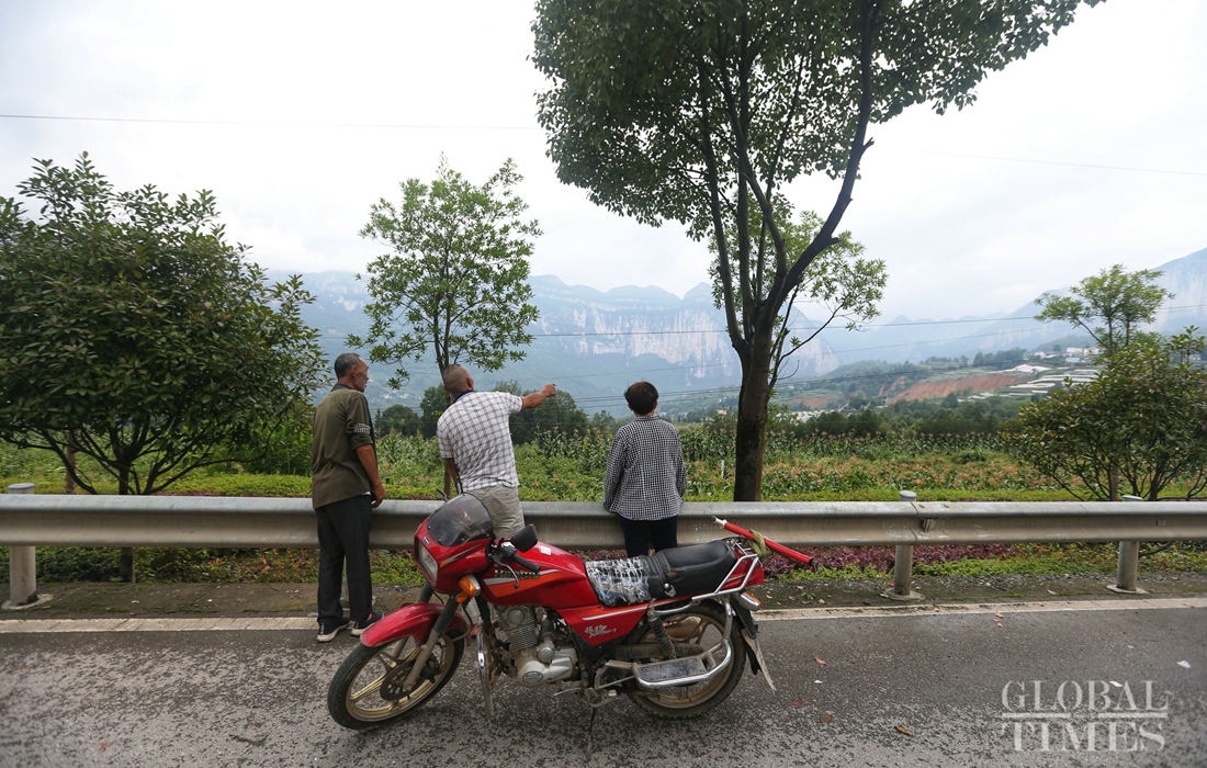 Residents from Tunbao township look at the scale of a landslide on Friday. Photo: Cui Meng/GT figcaption >