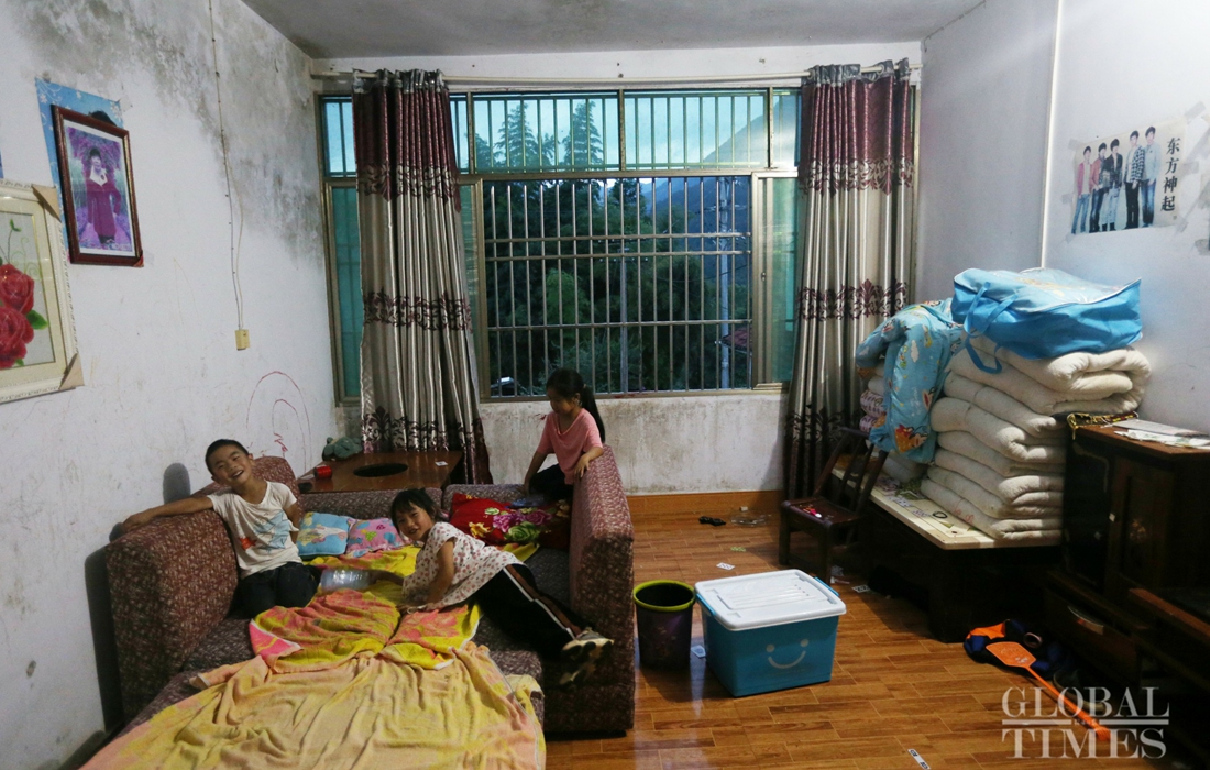 A girl stays with her sister and cousin at their grandfather’s house on Thursday. Photo: Cui Meng/GT figcaption >