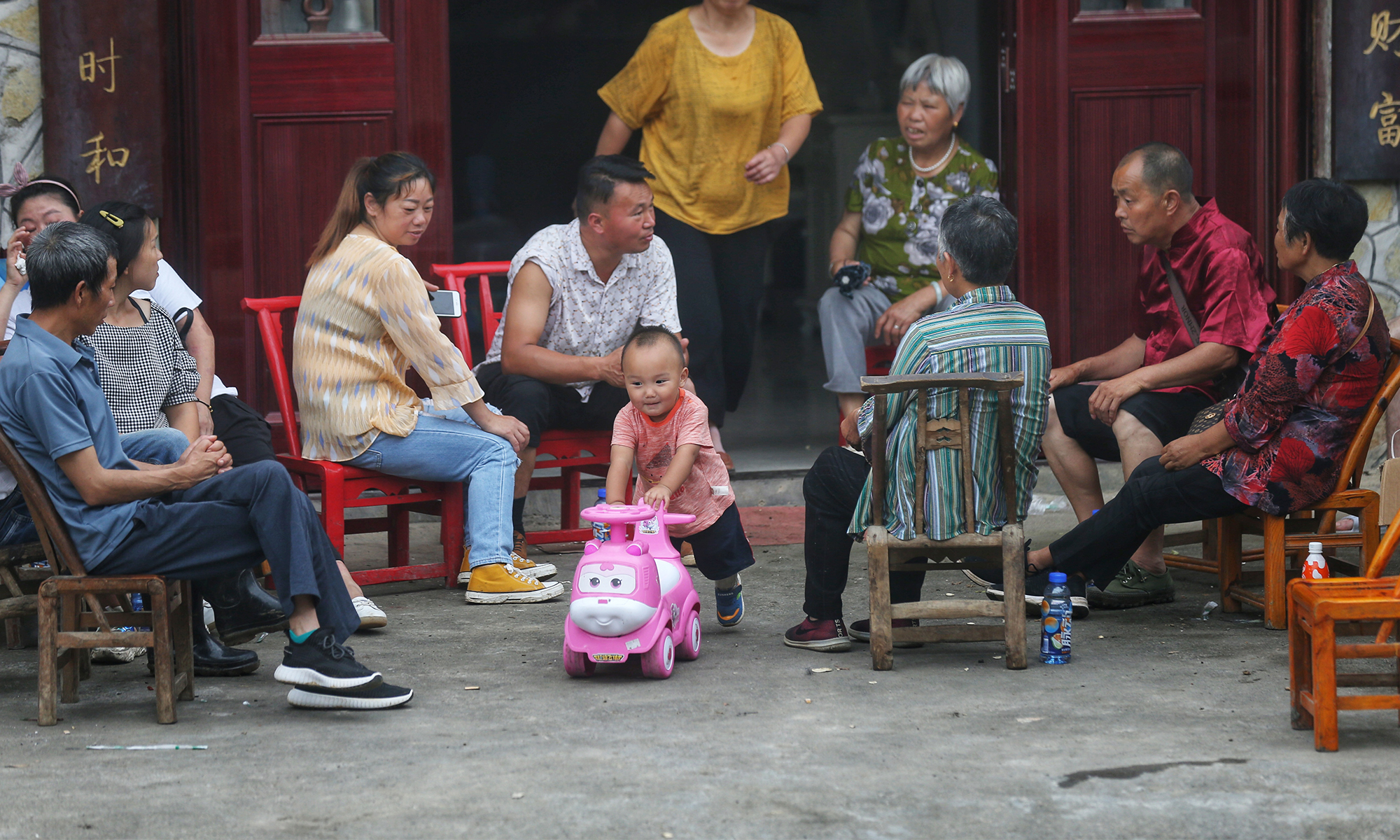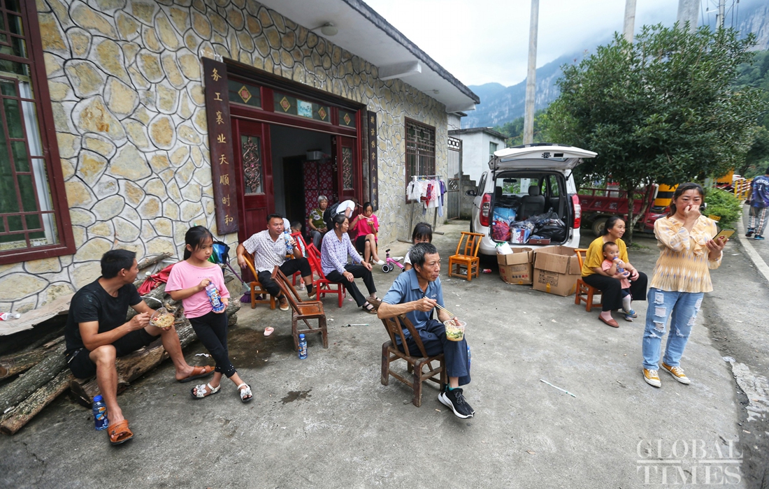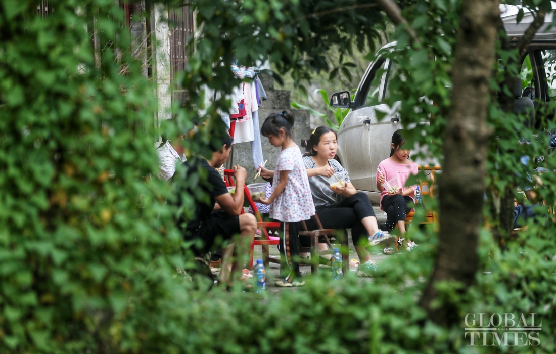 Victims of landslides usually choose to stay with their relatives. Gatherings like this are frequently seen. Photo: Cui Meng/GT figcaption >
