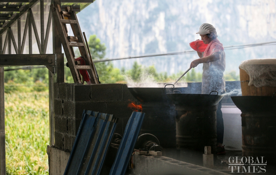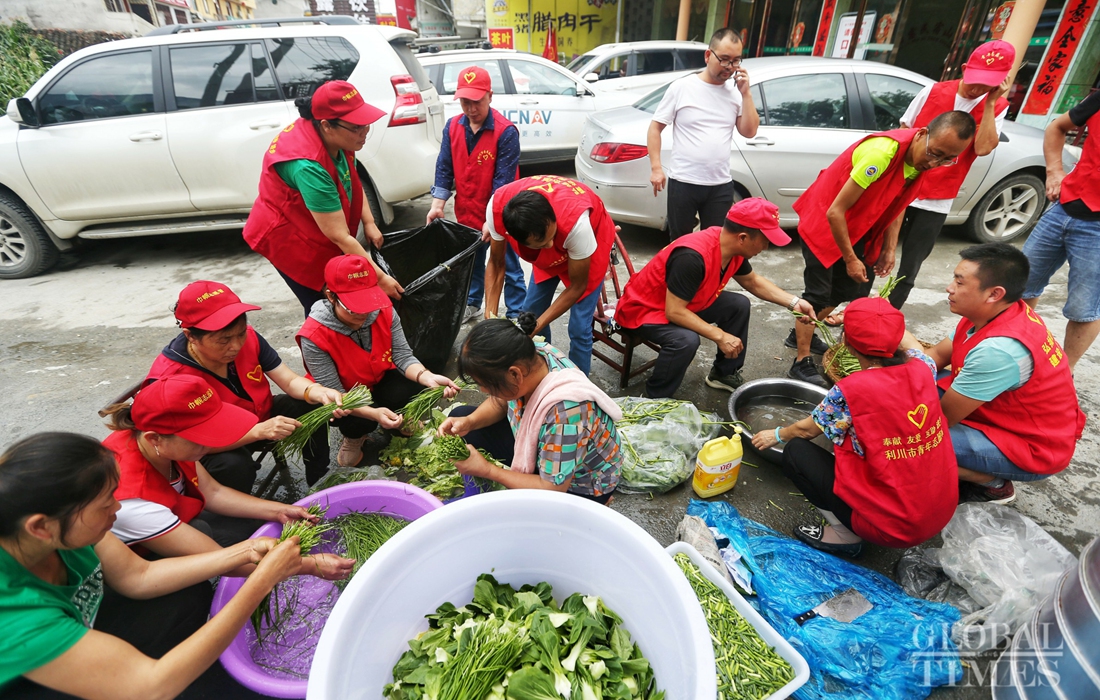 A woman prepares dinner for rescue teams and evacuated residents. Photo:Cui Meng/GT figcaption >