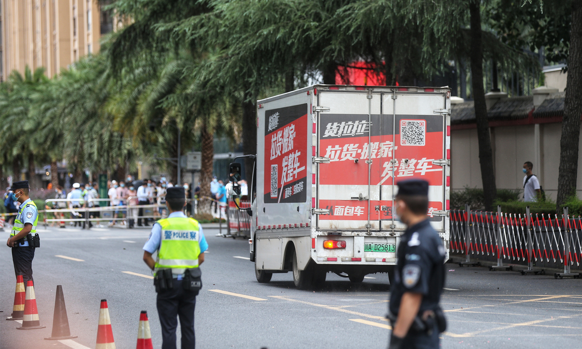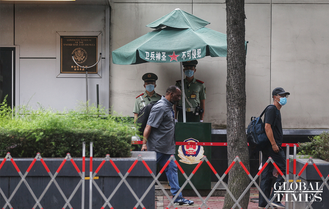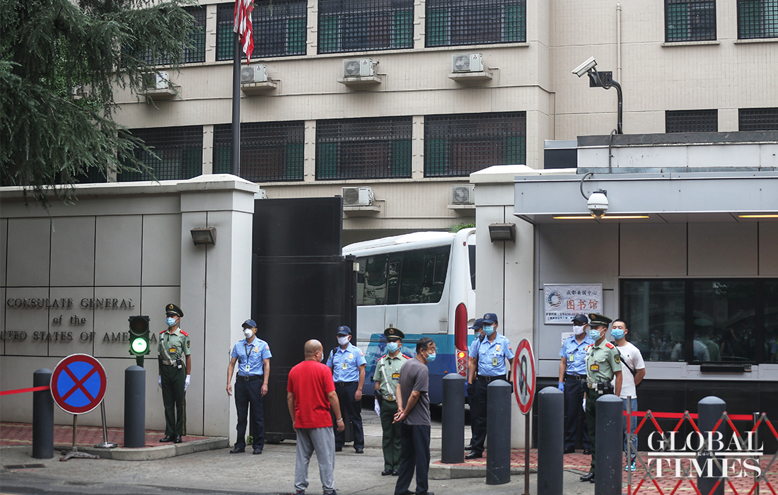 A removal company's vehicle left the US Consulate in Chengdu on Saturday. Photo: Cui Meng/GT figcaption >