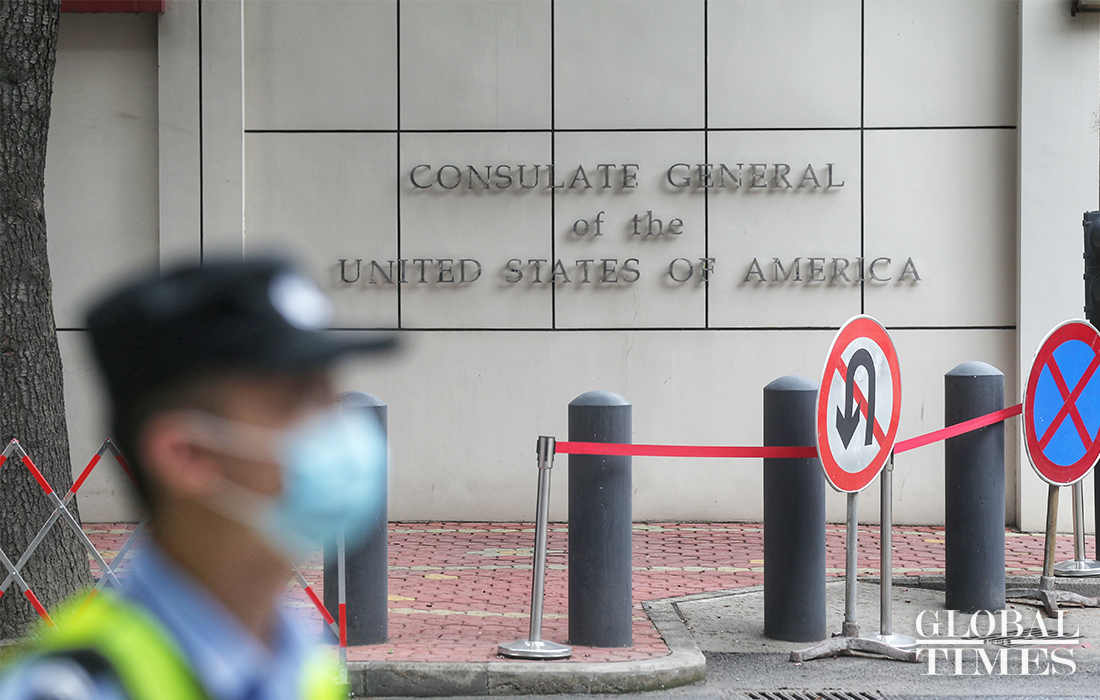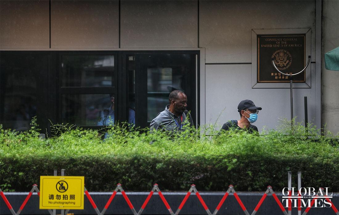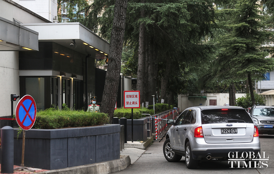 A removal company's vehicle left the US Consulate in Chengdu, SW China's Sichuan Province on Saturday. Photo: Cui Meng/GT