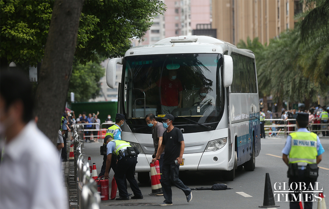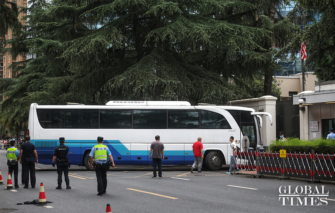 A bus drove into the US Consulate in Chengdu on Saturday. Photo: Cui Meng/GT figcaption >