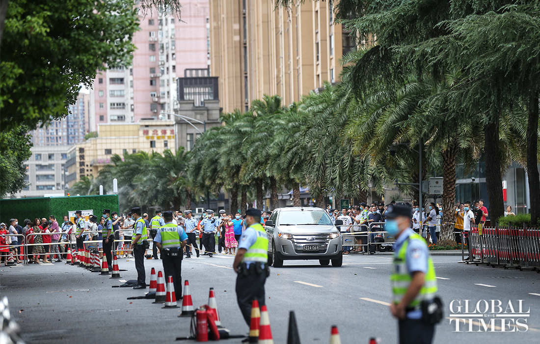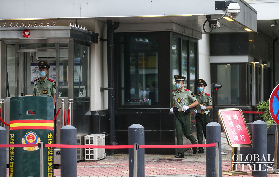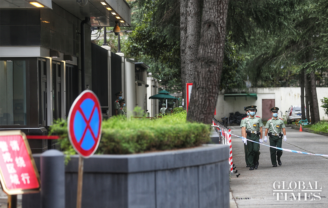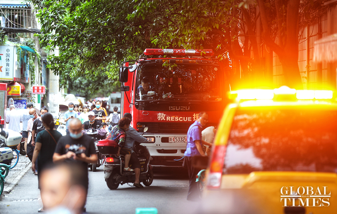 The removal company's vehicles are seen constantly entering and leaving the US consulate in Chengdu, Southwest China’s Sichuan Province, with some foreign workers also seen leaving with their luggage from the consulate on Saturday. Fire trucks are also on standby in nearby streets. On Friday, China ordered the US to shut down its consulate in Chengdu in retaliation for the US' closure of the Chinese Consulate General in Houston. Photos: Cui Meng/GT