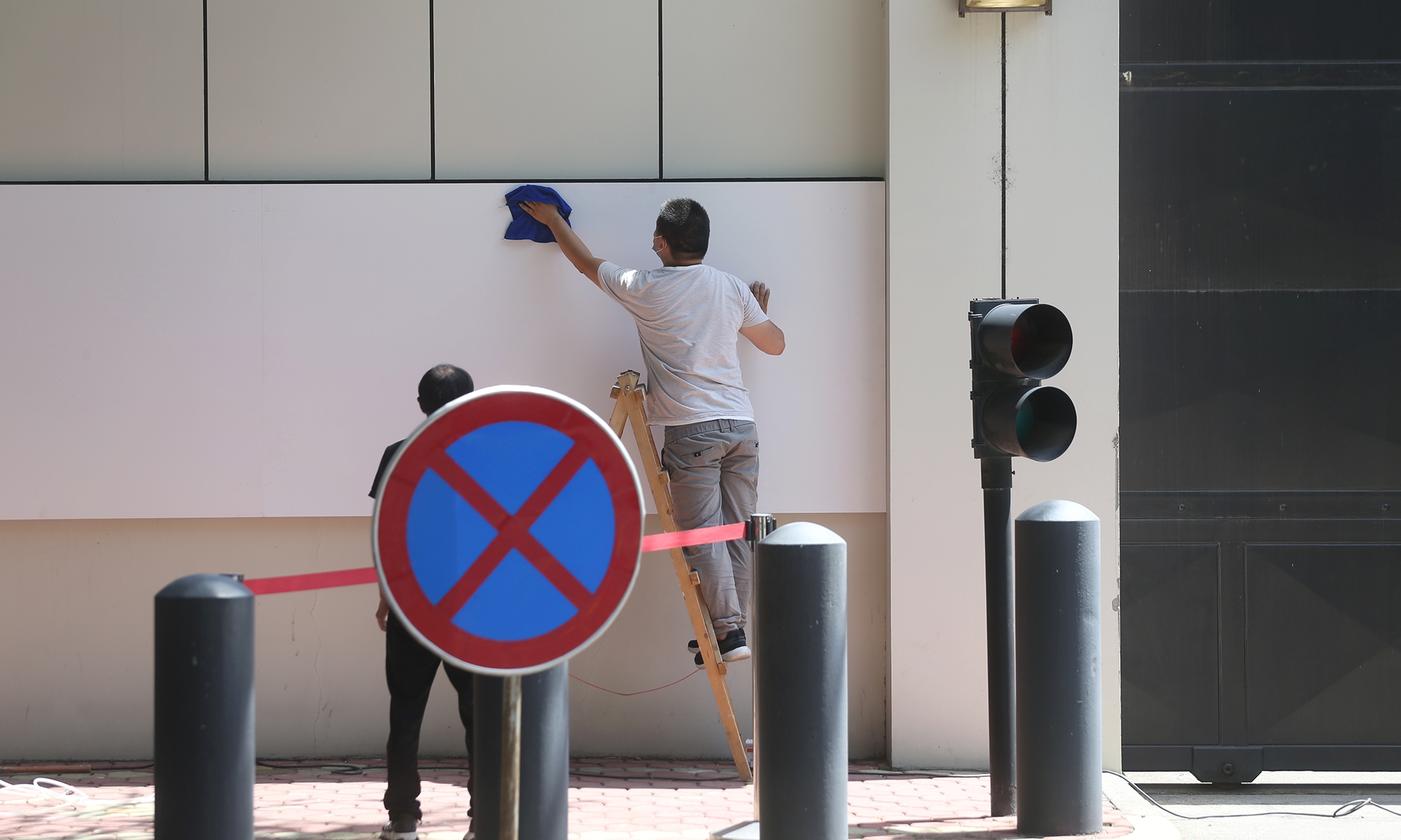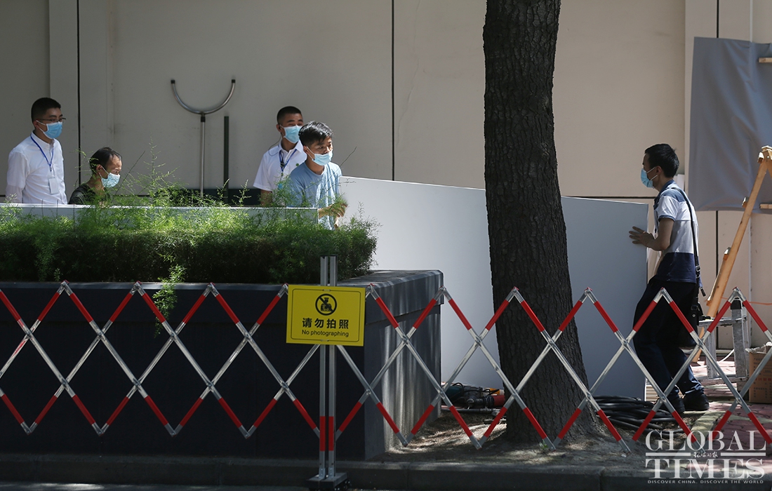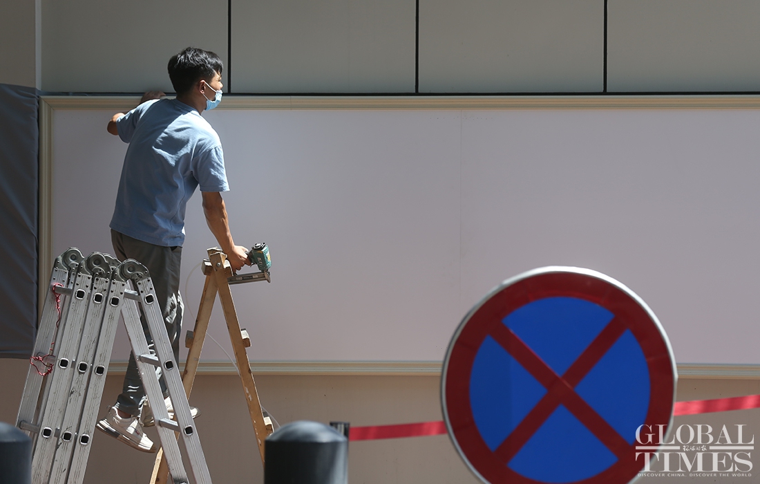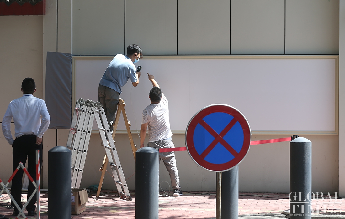 After the US Consulate General in Chengdu was taken over by Chinese authorities, workers covered the nameplate on the premise’s exterior wall with a white board on Monday afternoon.