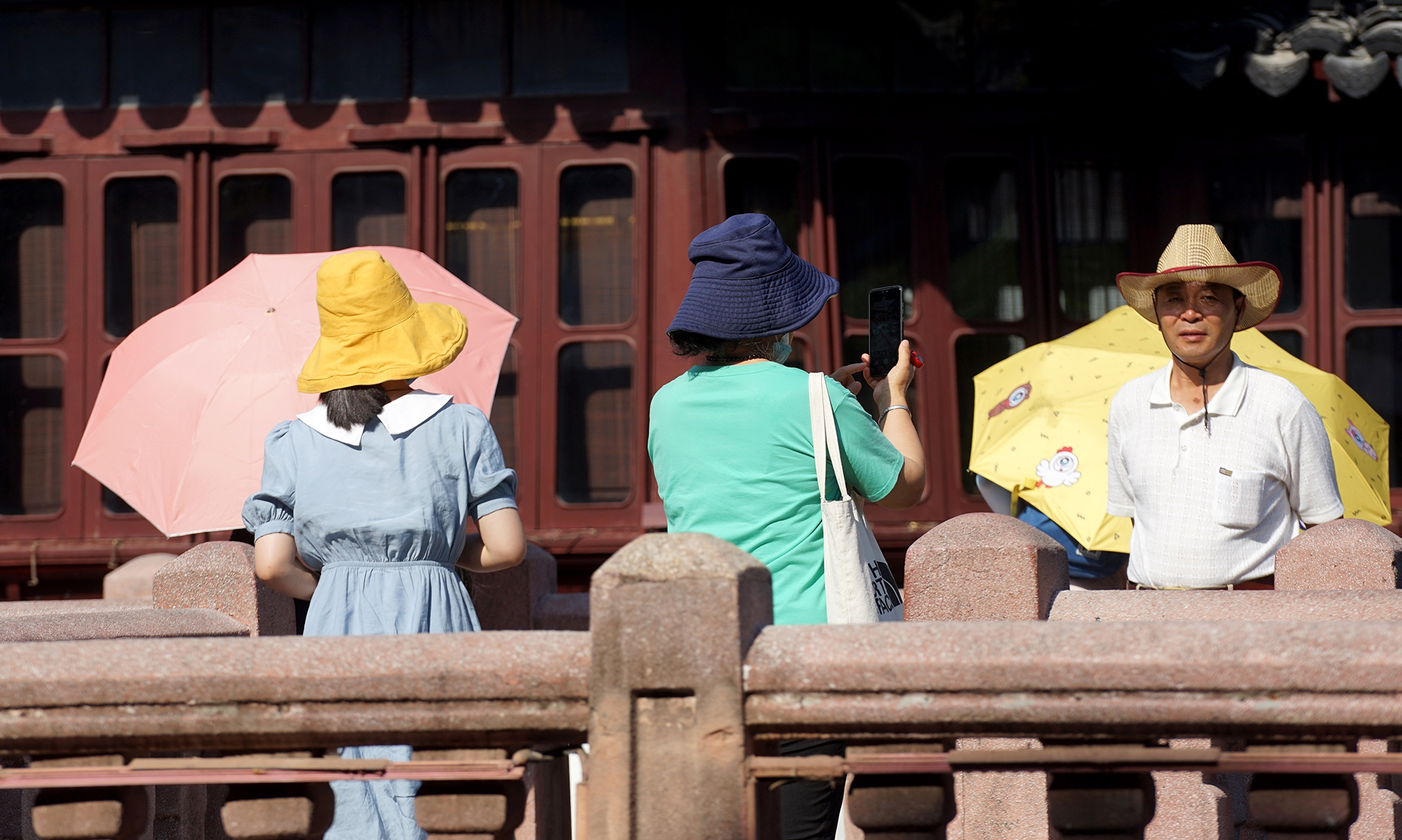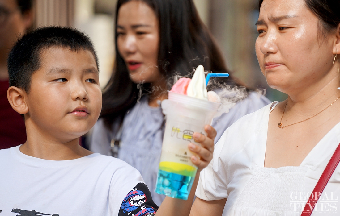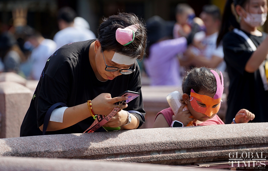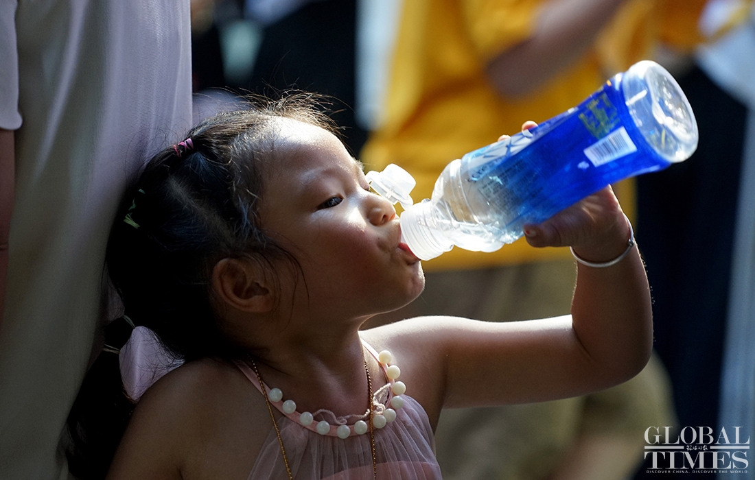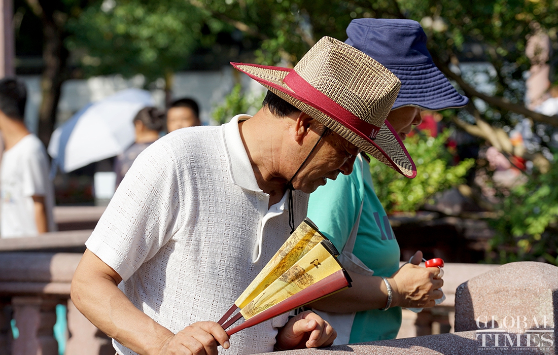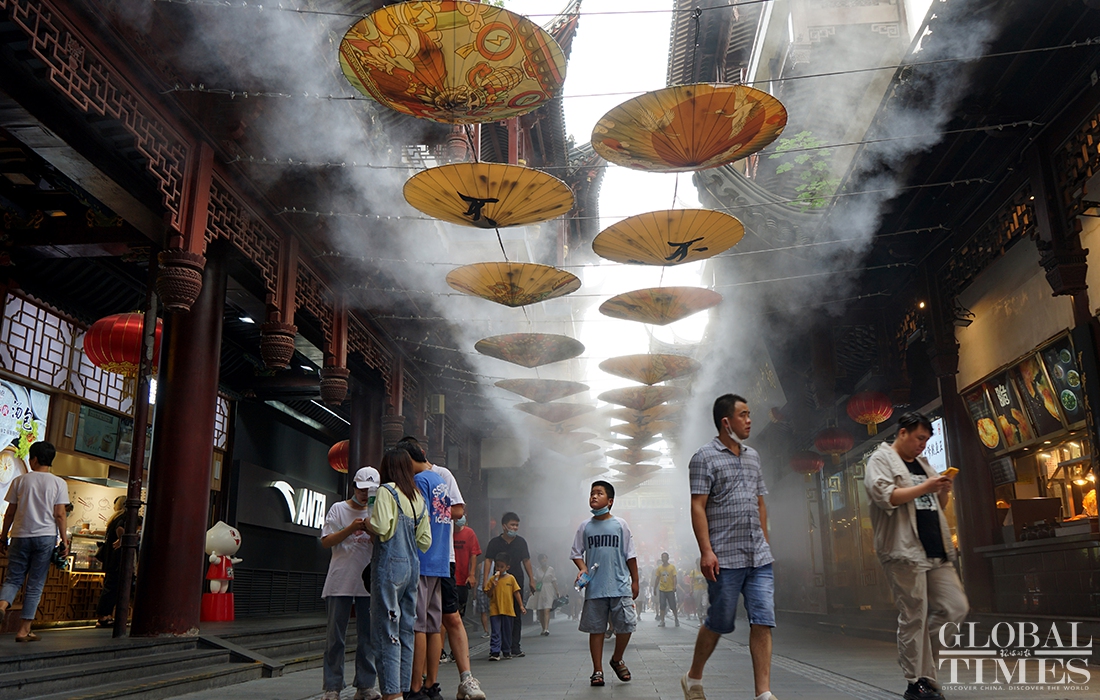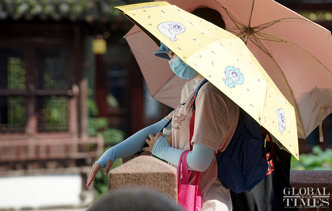 The summer heat does not stop residents in Shanghai from leaving their homes to roam the city. Many people use hats, parasols and cooling gels to keep them cool and prevent sun burn. Shanghai’s Yuyuan Garden also opens its spray devices to cool down visitors.