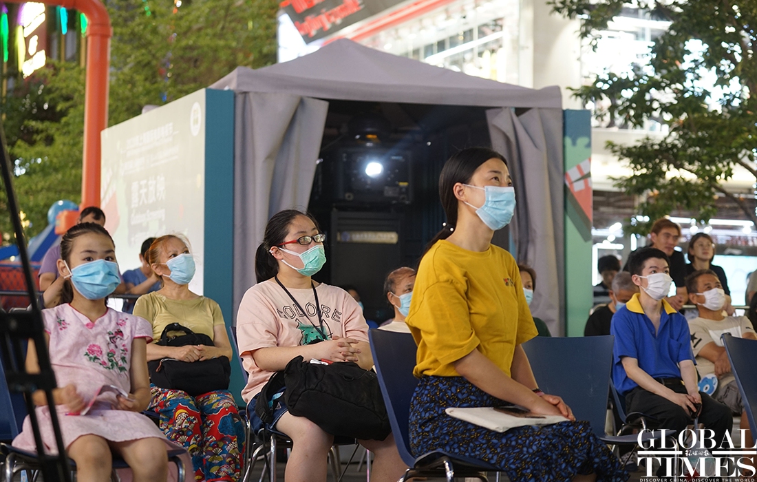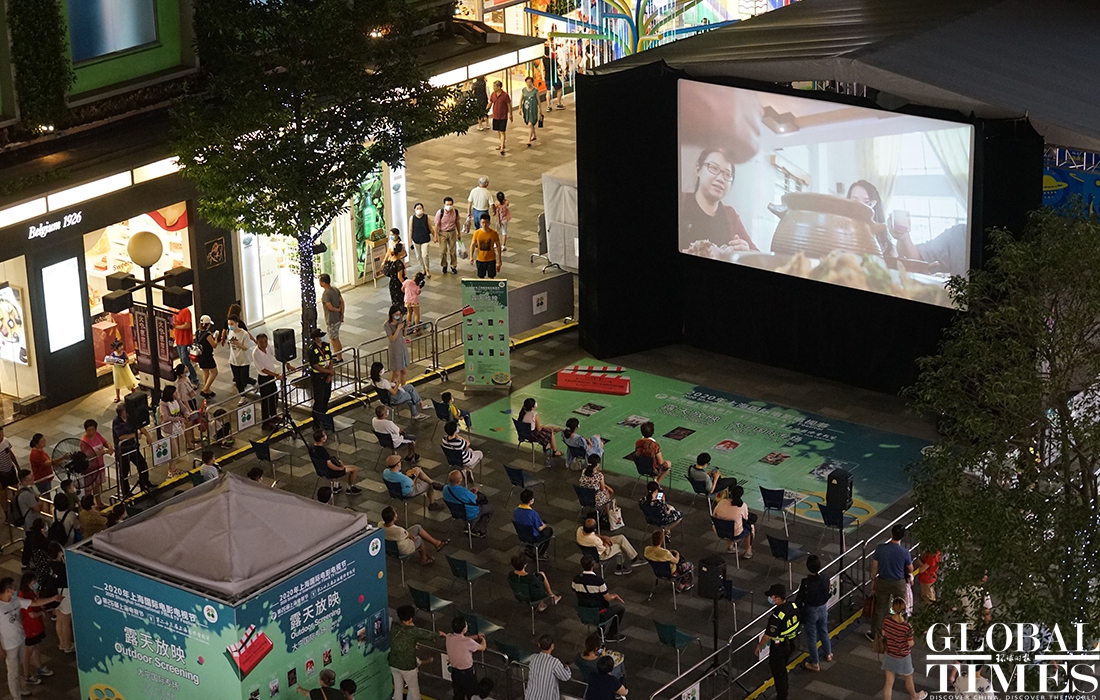 The 26th Shanghai TV Festival kicked off on Monday, and will last 4 days until August 7. The festival is mainly being held outdoors and online to minimize the spread of #COVID19. People can enjoy free movies in the open air while keeping a distance of one meter. Photos: Lu Ting/GT
