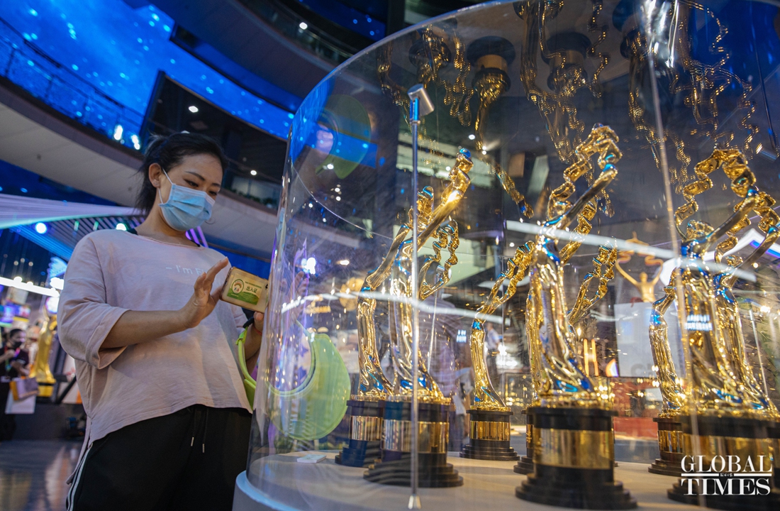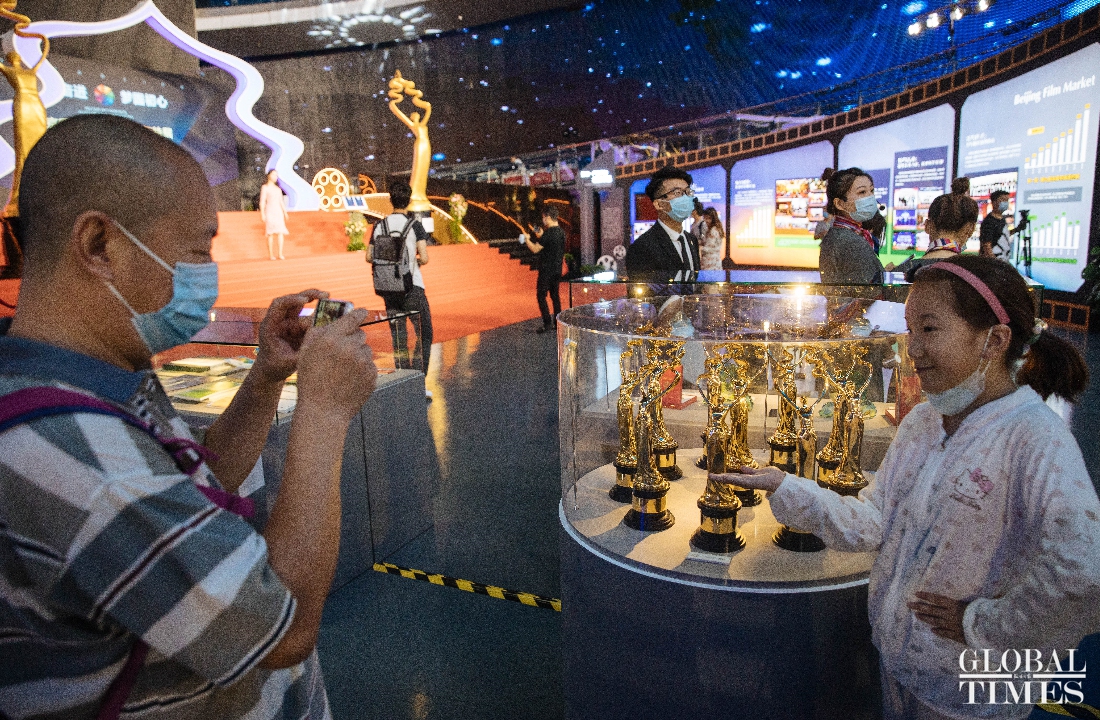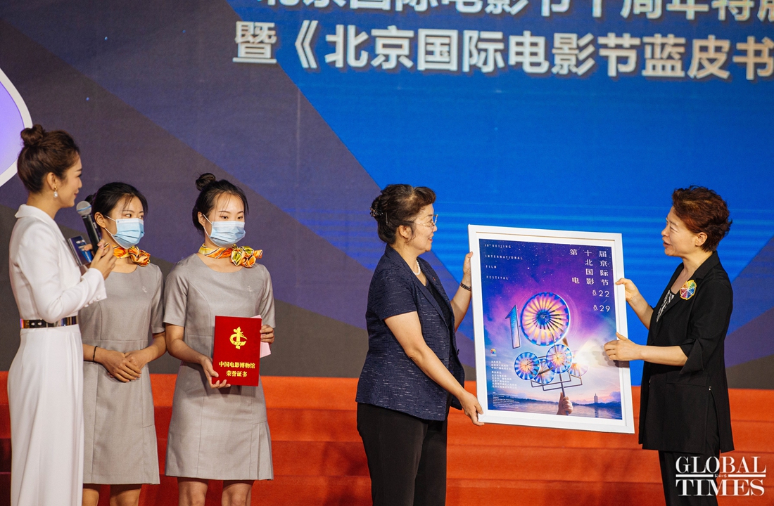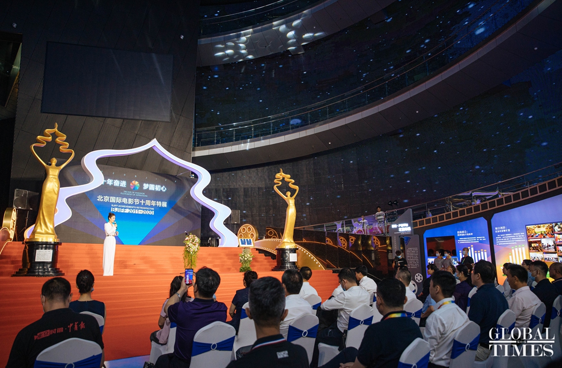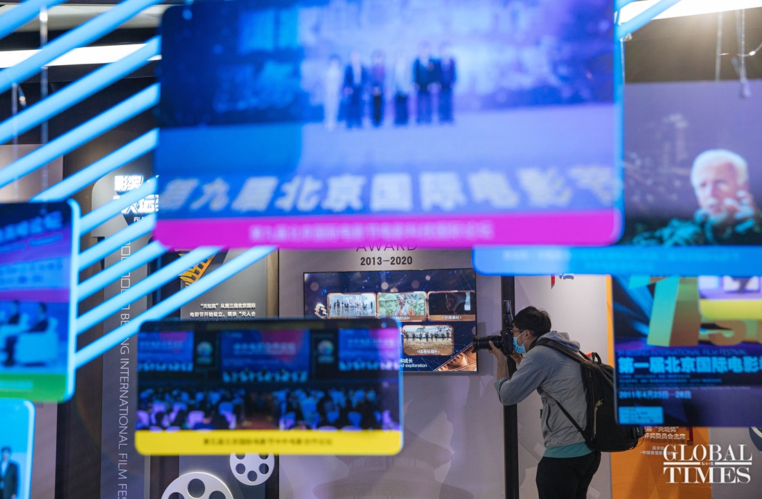 2020 marks the 10th anniversary of the Beijing International Film Festival (BIFF). The special exhibition uses multiple features to bring visitors a timeline of the Beijing International Film Festival’s decade-long journey. During the opening ceremony on Sunday, a Blue Book on the Beijing International Film Festival was also released to the public. Visitors can enjoy the exhibition in both offline and online form. (Photos: Li Hao/GT)