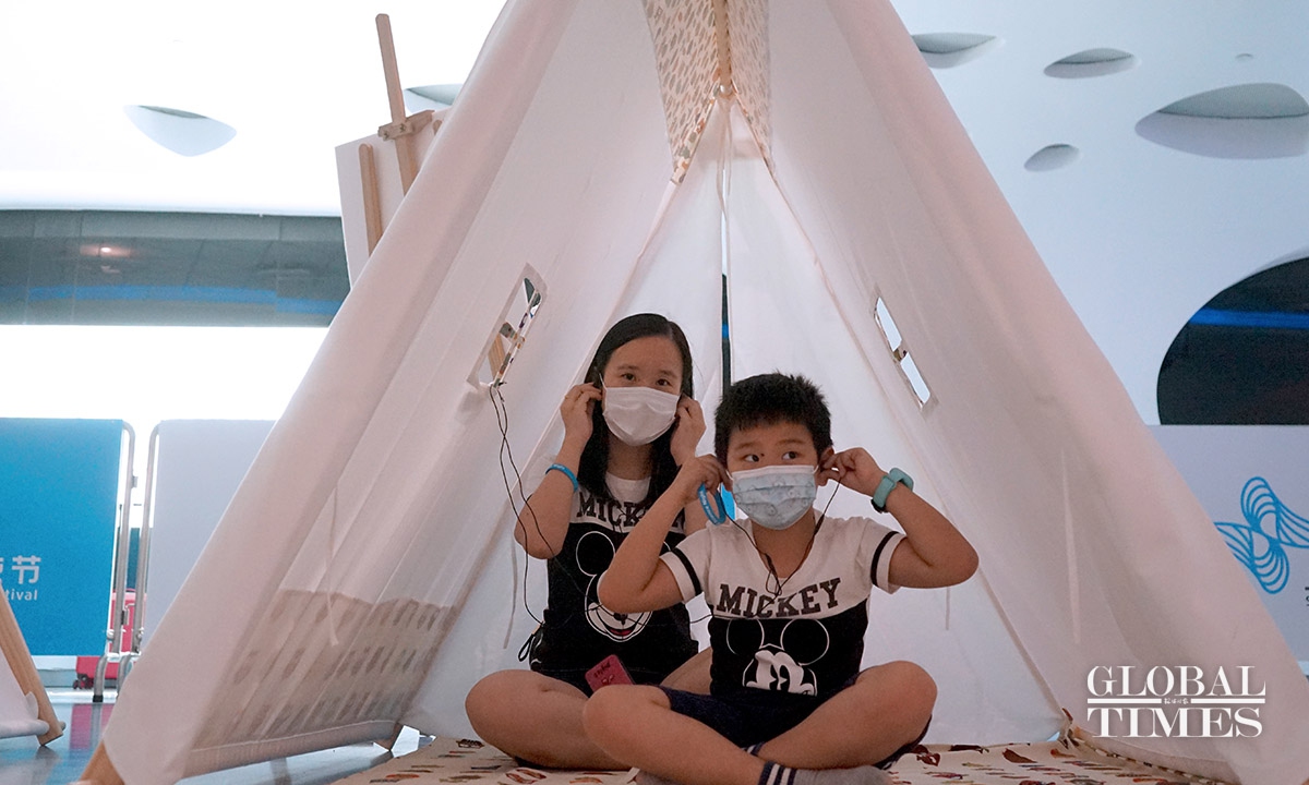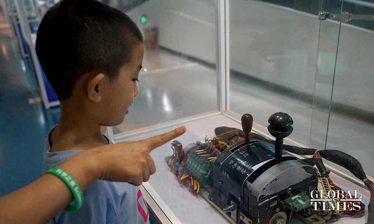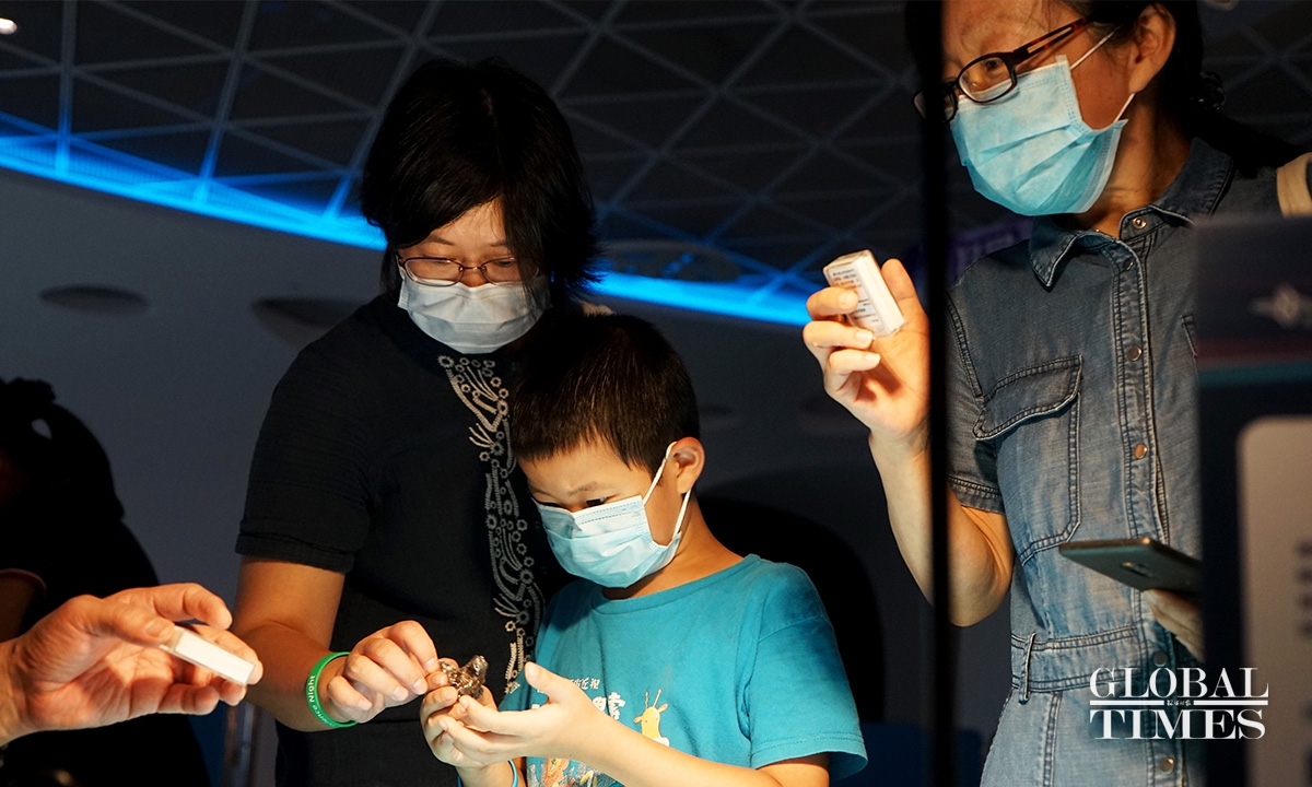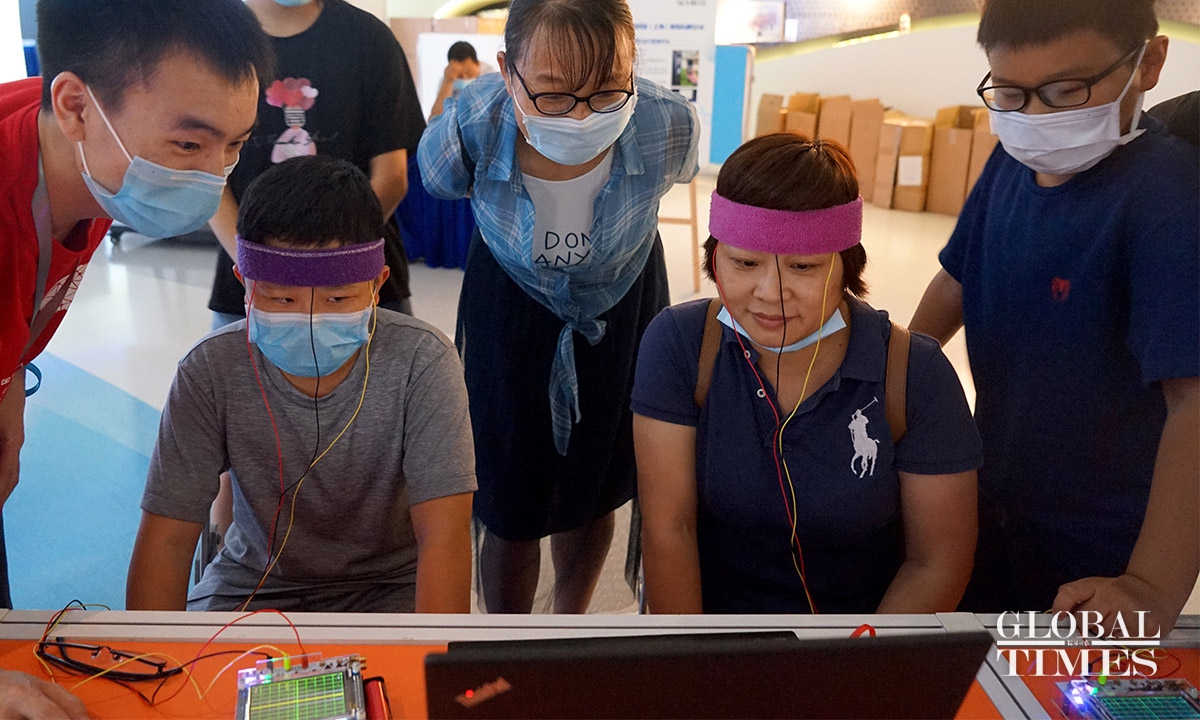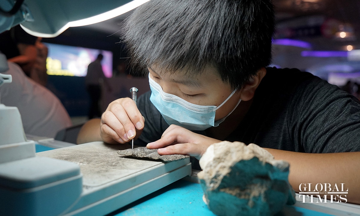 Locals in Shanghai were able to experience innovative technological equipment on Wednesday at the landmark Shanghai Tower during the Shanghai Science Festival. Unlike previous years, this year’s event features a variety of interactive science activities such as fossil restoration and VR skiing across the city. The event started on Sunday and will run until August 29.(Photos: Chen Xia/GT)