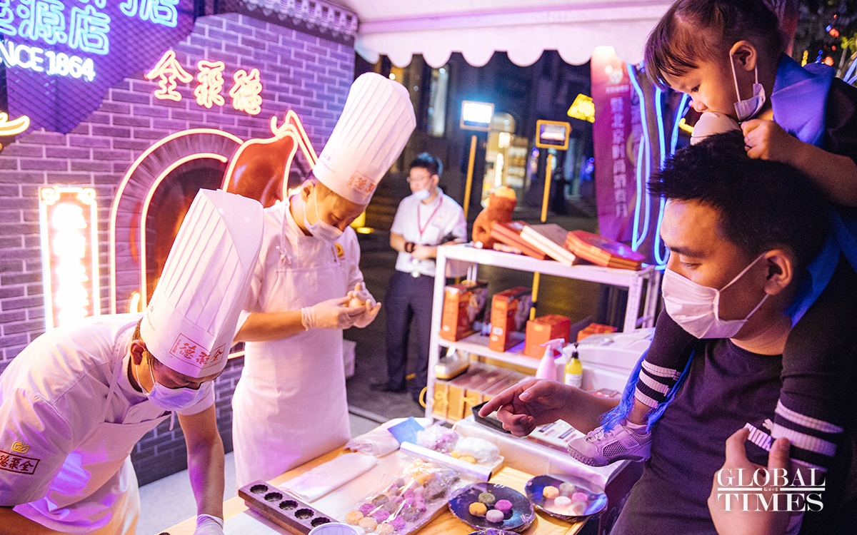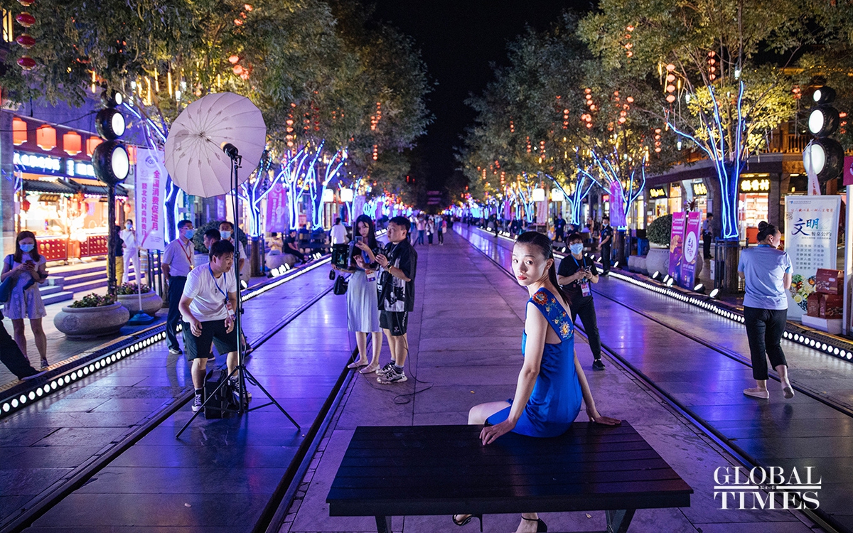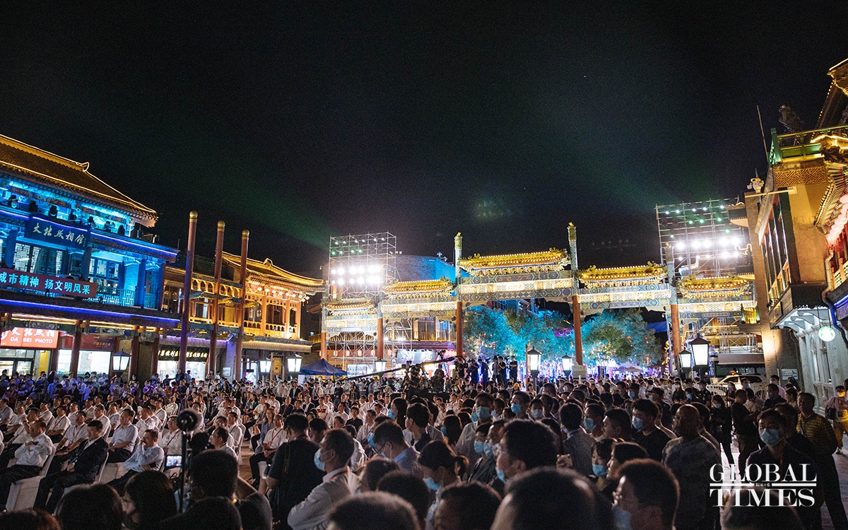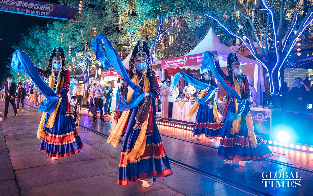 September is this year’s month for promoting consumption nation-wide and the month of fashion consumption in Beijing. During the opening ceremony, Beijing connected with the cities of Tianjin, Shanghai, Wuhan, Chengdu and Chongqing to complete product promotion with ceremonies seen live from each city. Beijing started the first show with Beijing Fashion Week and organized many activities that covered Beijing's food and culture. More than 30 national-level poverty-stricken counties' products and traditional brands in Beijing and Wuhan will have their promotion activity at Qianmen pedestrian business street for a week. (Photos: Li Hao/GT)